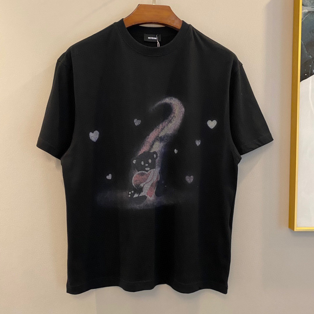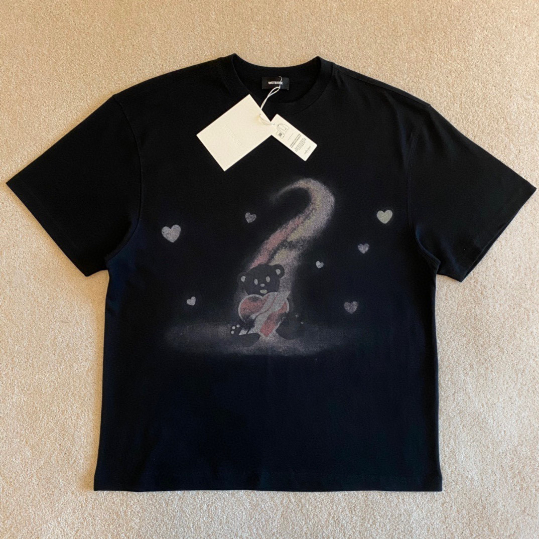 We11done23春夏超大版型有机棉彩虹熊数码印花T恤/黑色