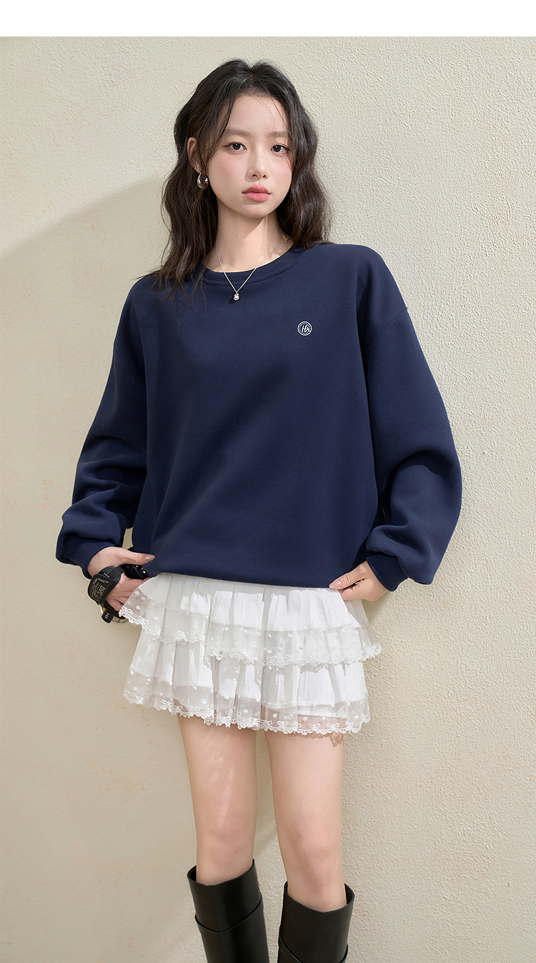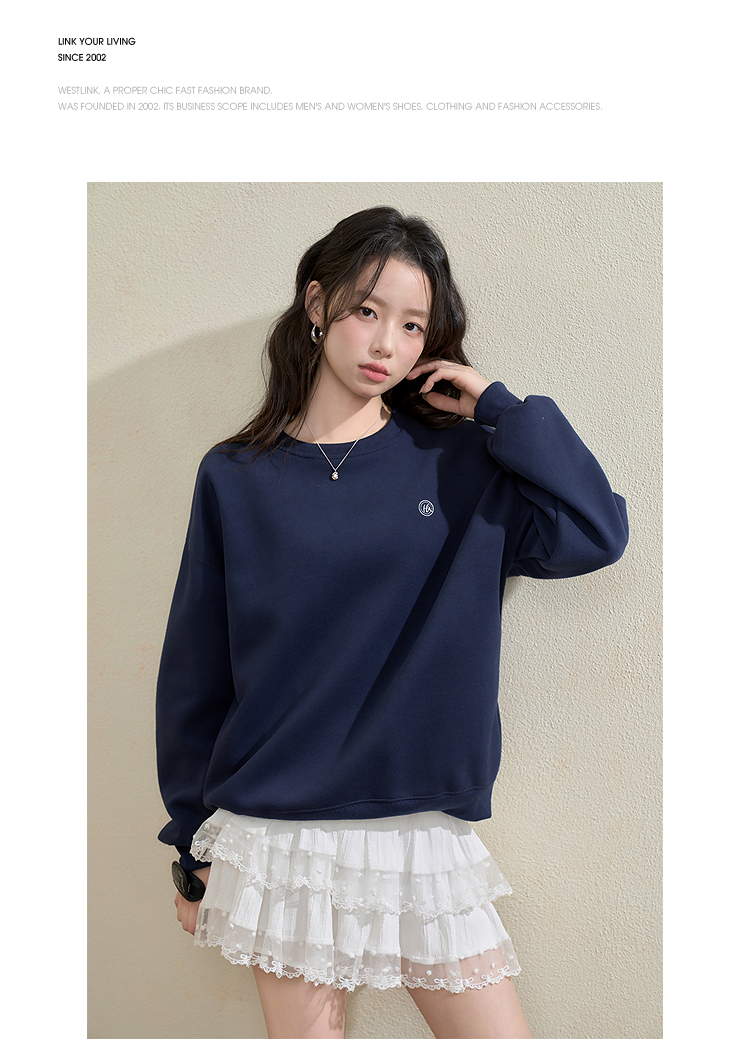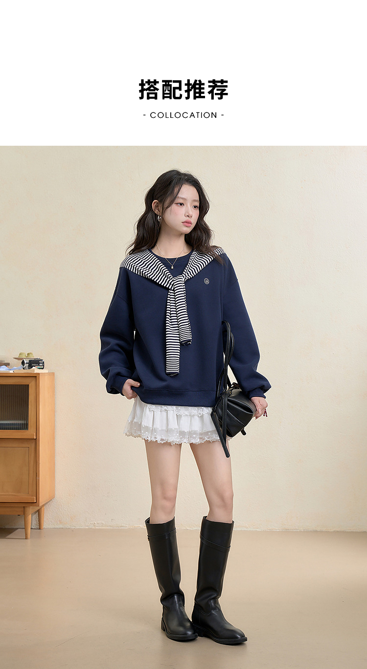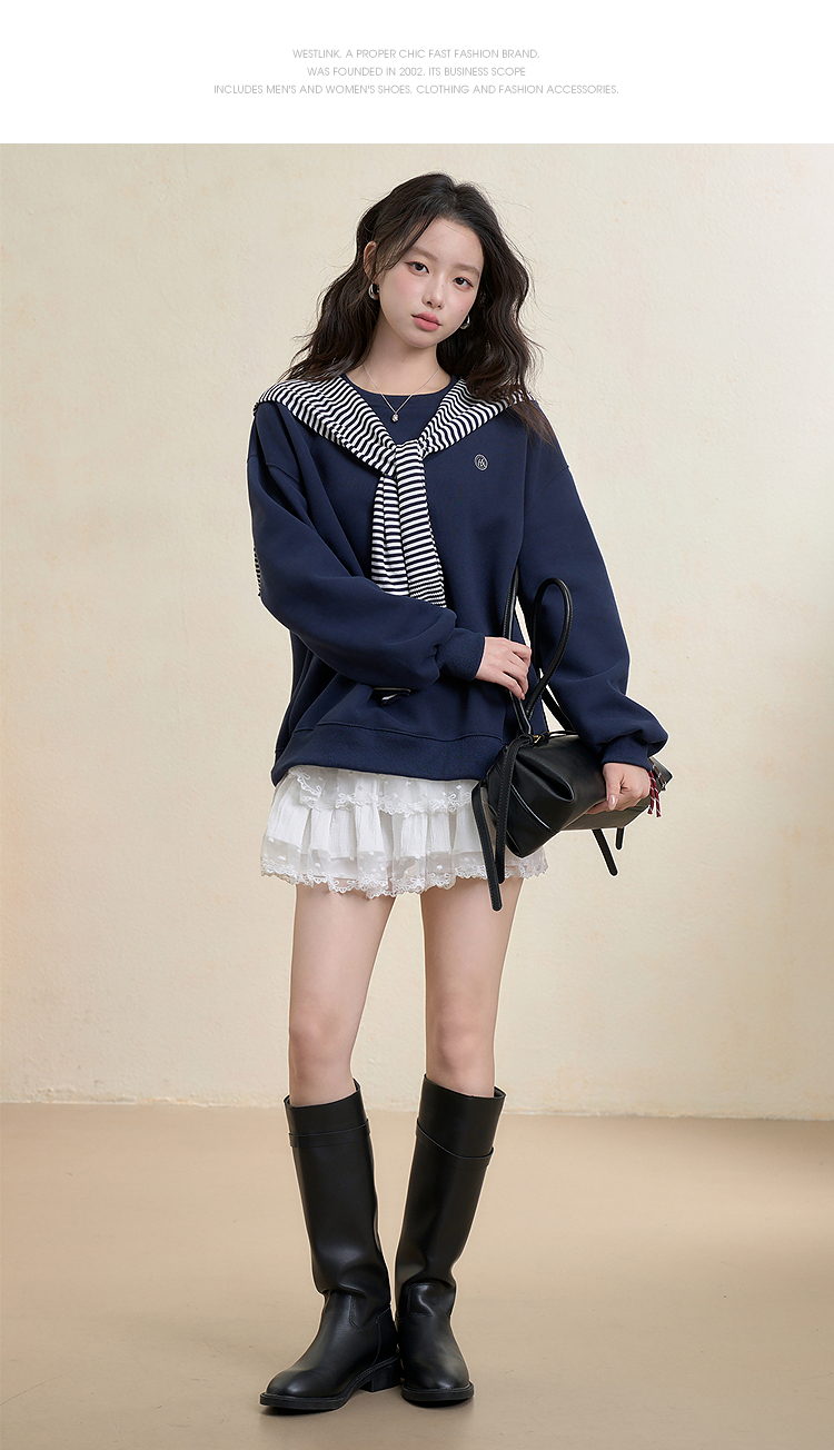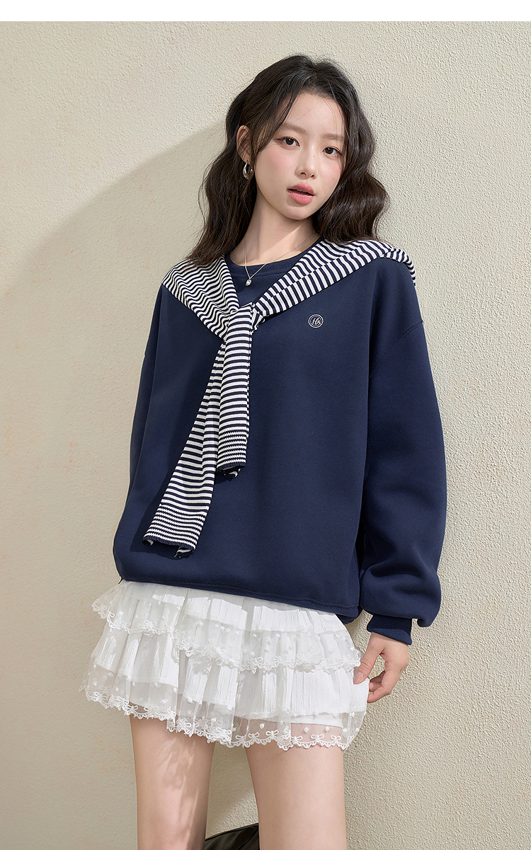 西遇宽松圆领卫衣女秋季新款学院风条纹披肩叠穿长袖上衣H0055271