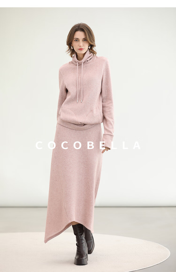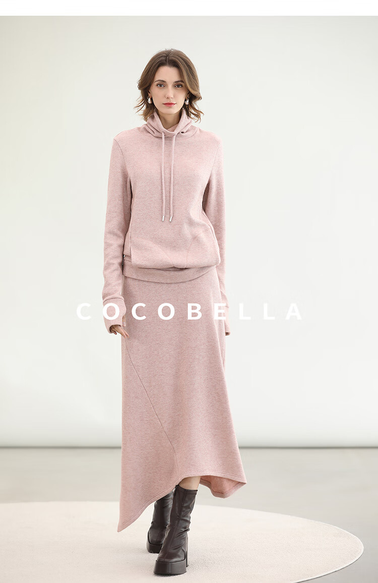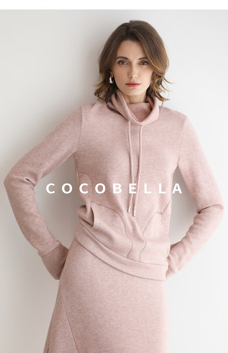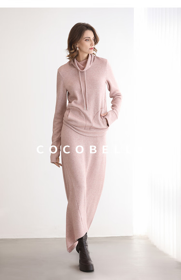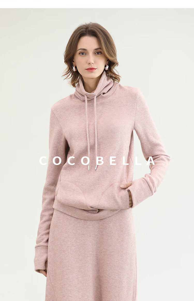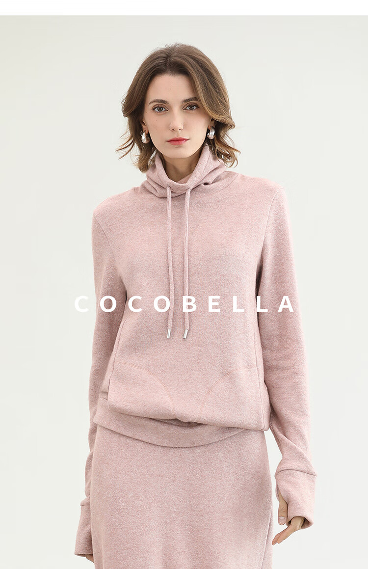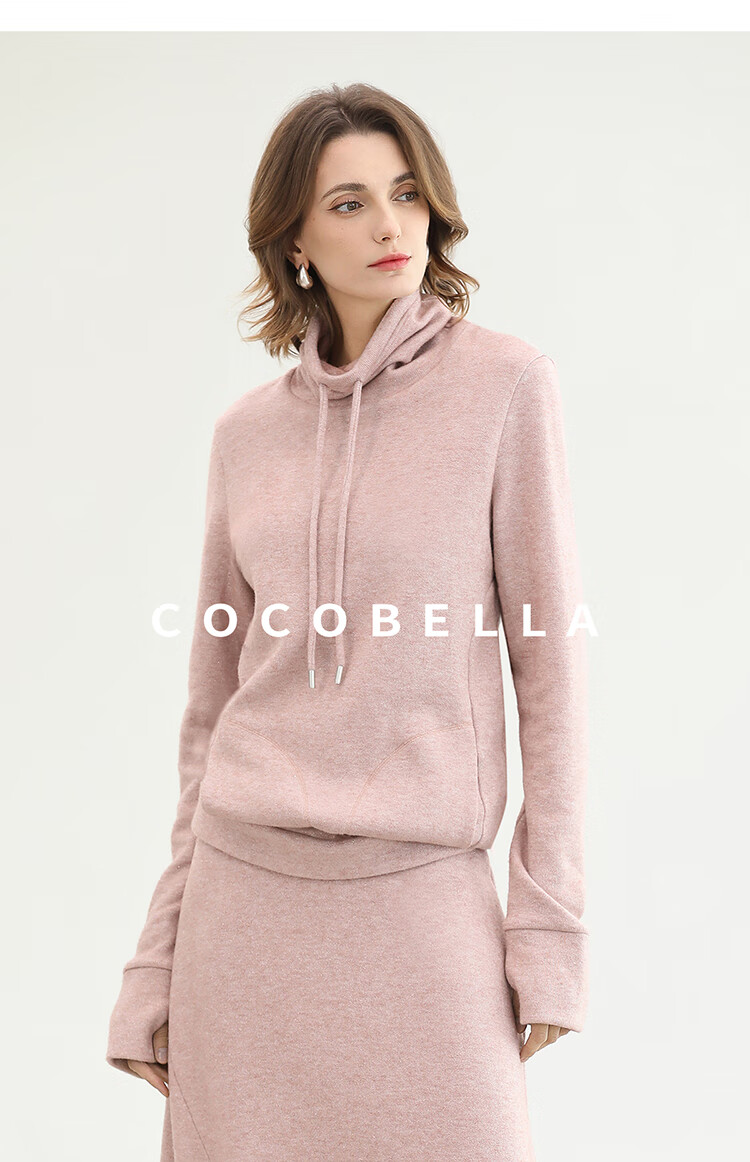 COCOBELLA设计感粉色套头毛针织衫女秋冬卫衣高领毛衣MZ7102