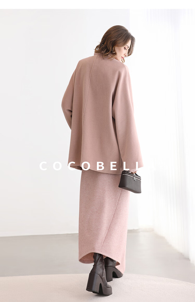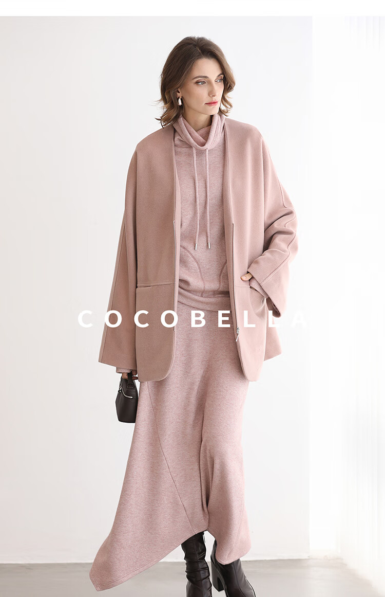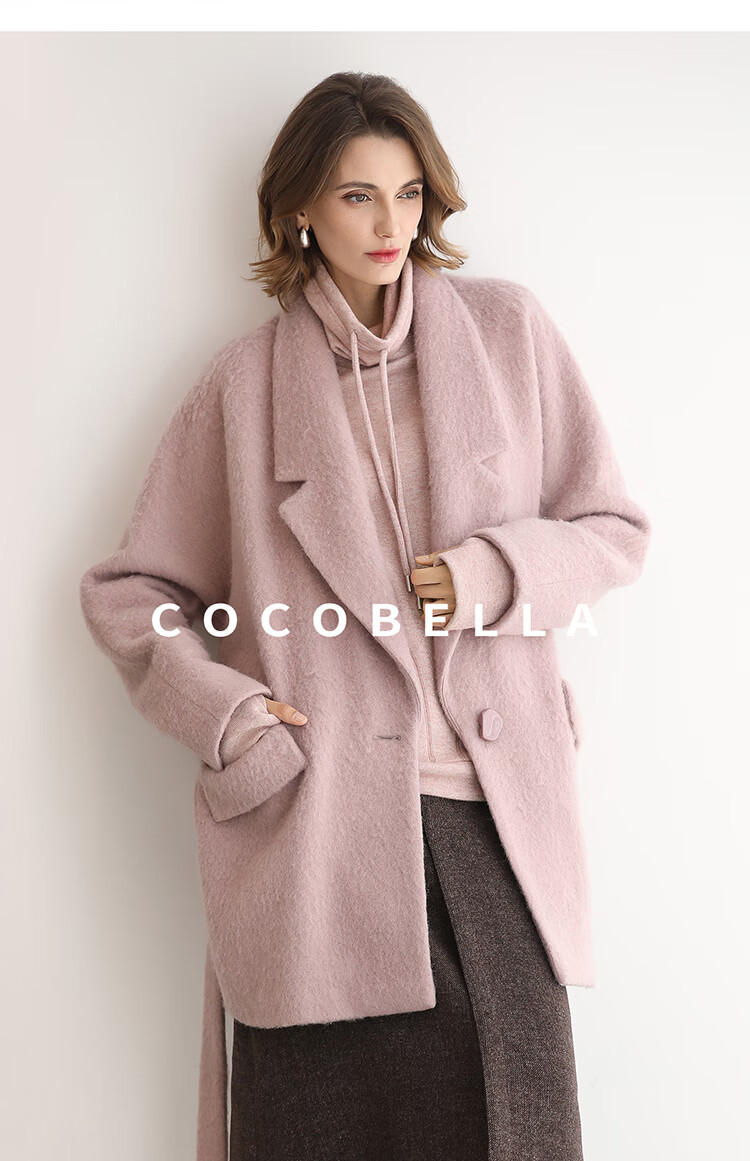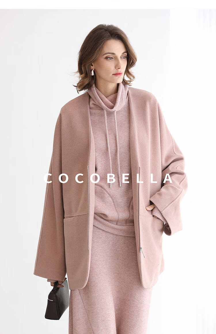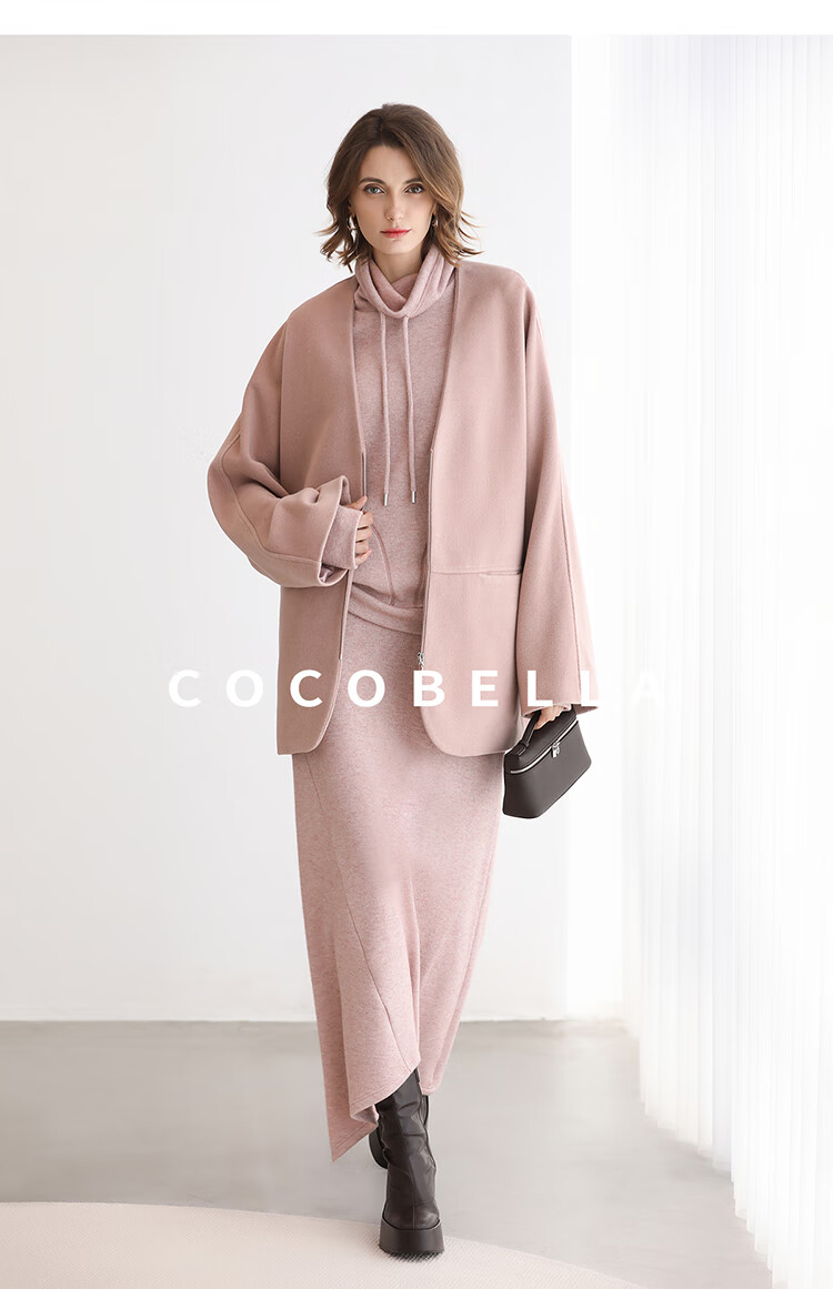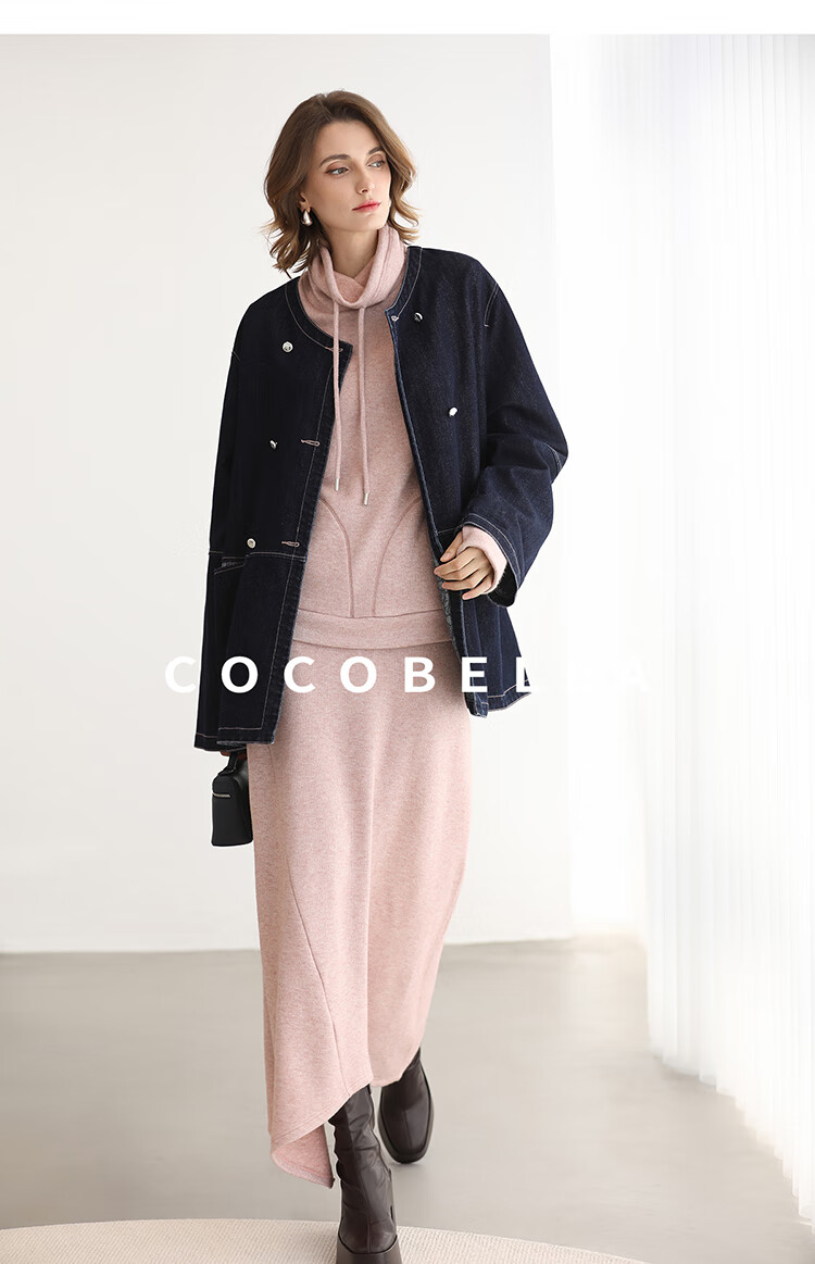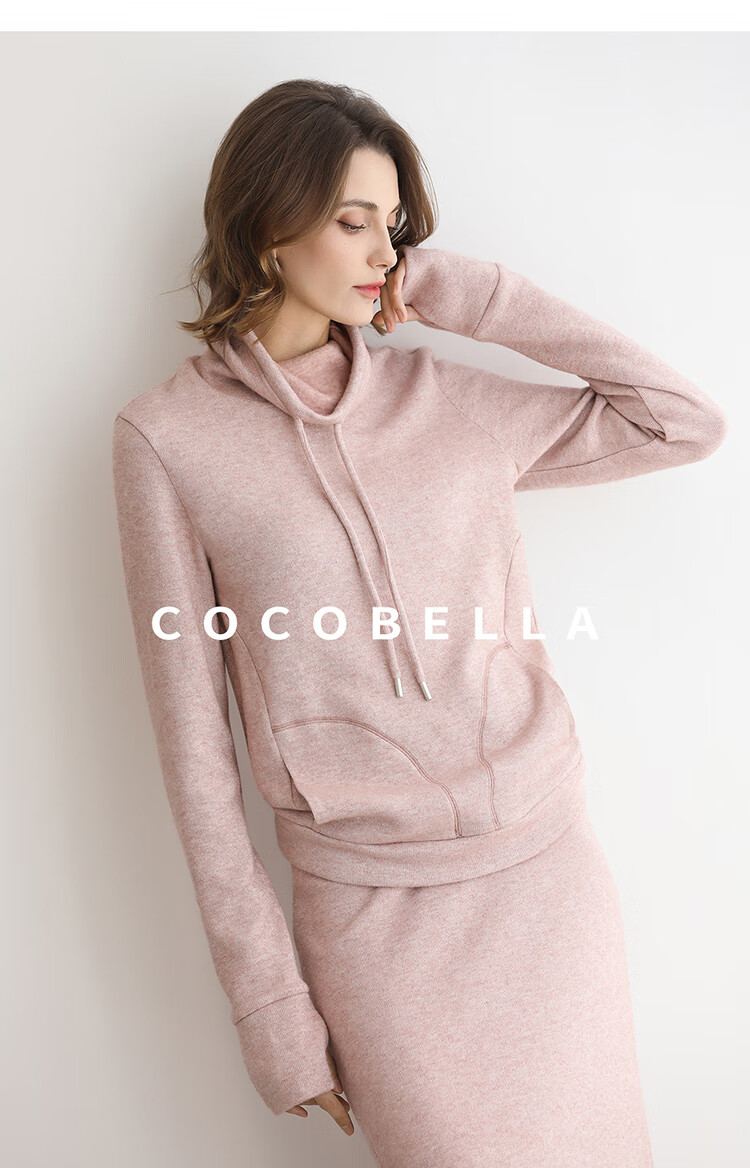 COCOBELLA设计感粉色套头毛针织衫女秋冬卫衣高领毛衣MZ7102