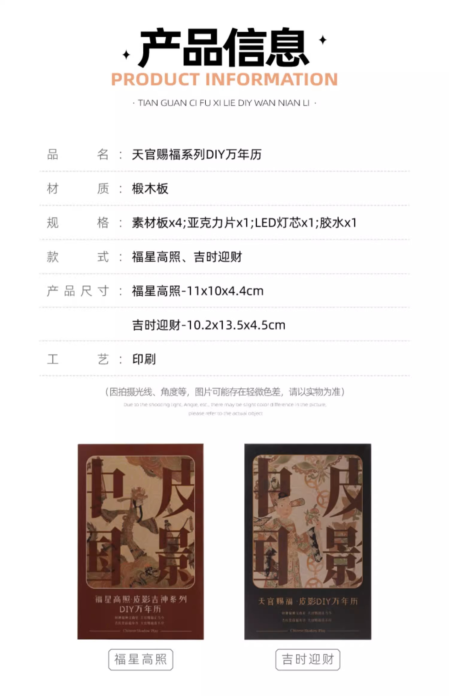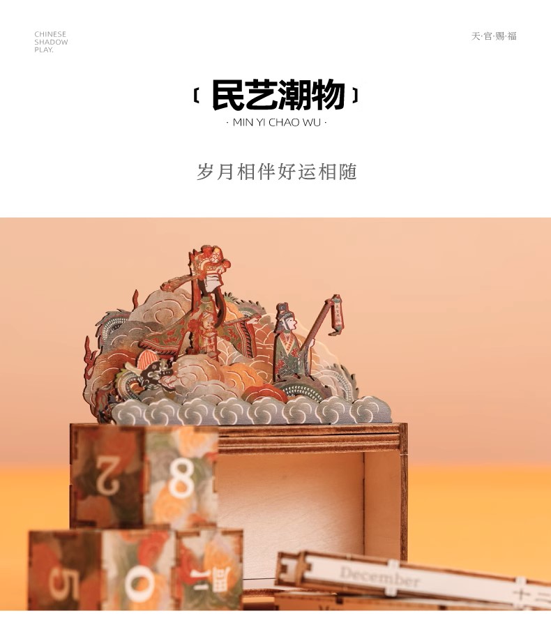 成都博物馆 皮影天官赐福DIY万年历 博物馆文创礼品台历桌面摆件