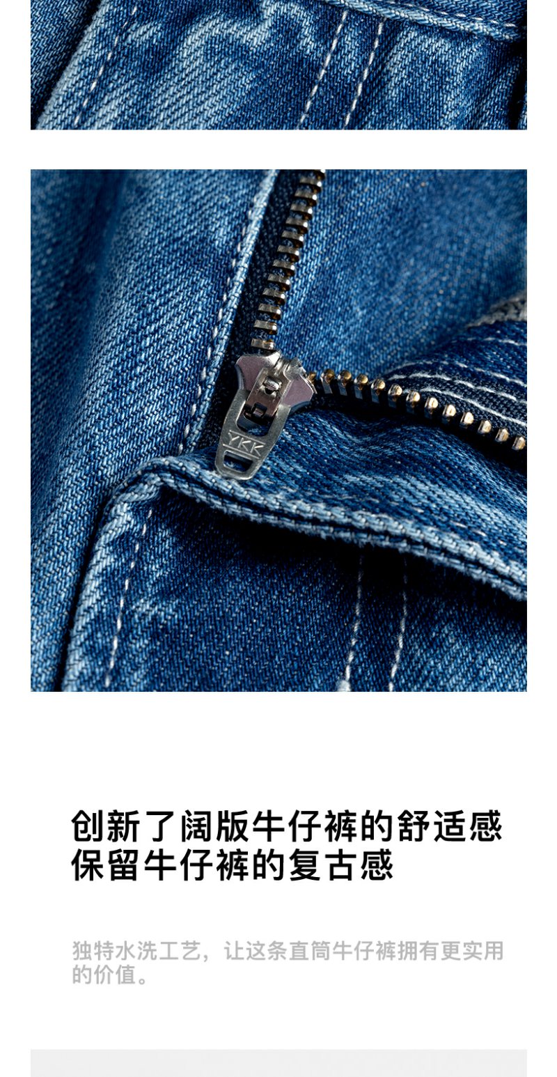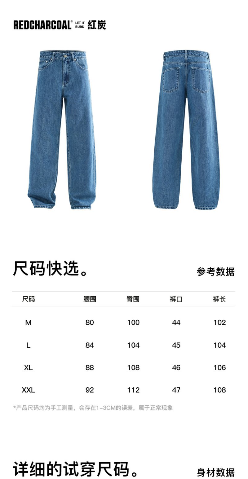 REDCHARCOAL 红炭蓝色阔腿牛仔裤男新款潮流休闲宽松直筒男士裤子