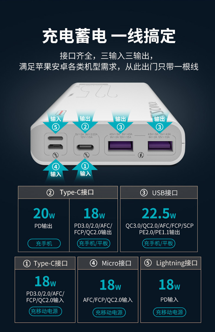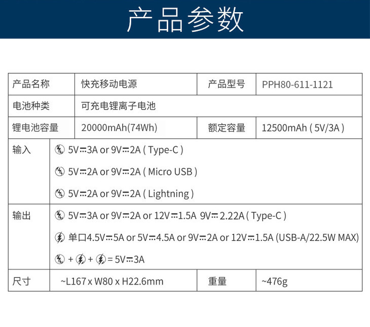 罗马仕22.5W快充充电宝20000毫安