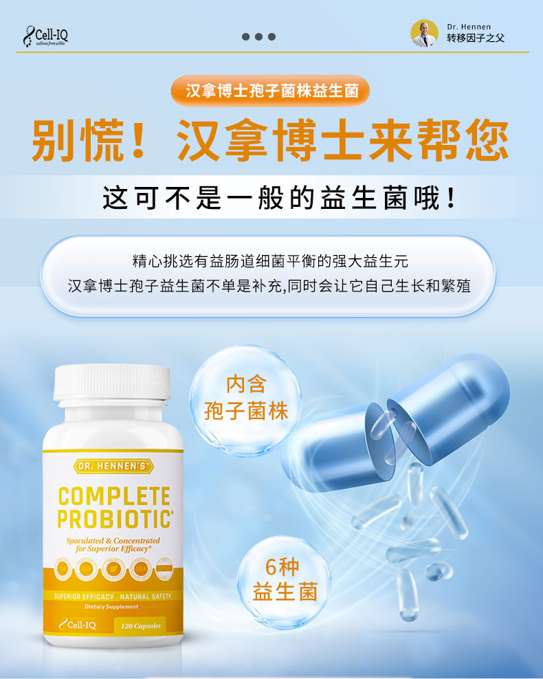【调理肠胃 控体重 膳食】益生菌胶囊 120粒 Cell-IQ汉拿博士 美国