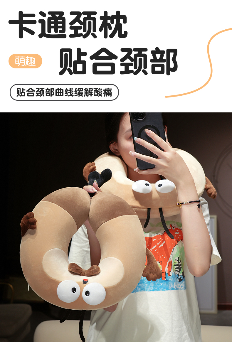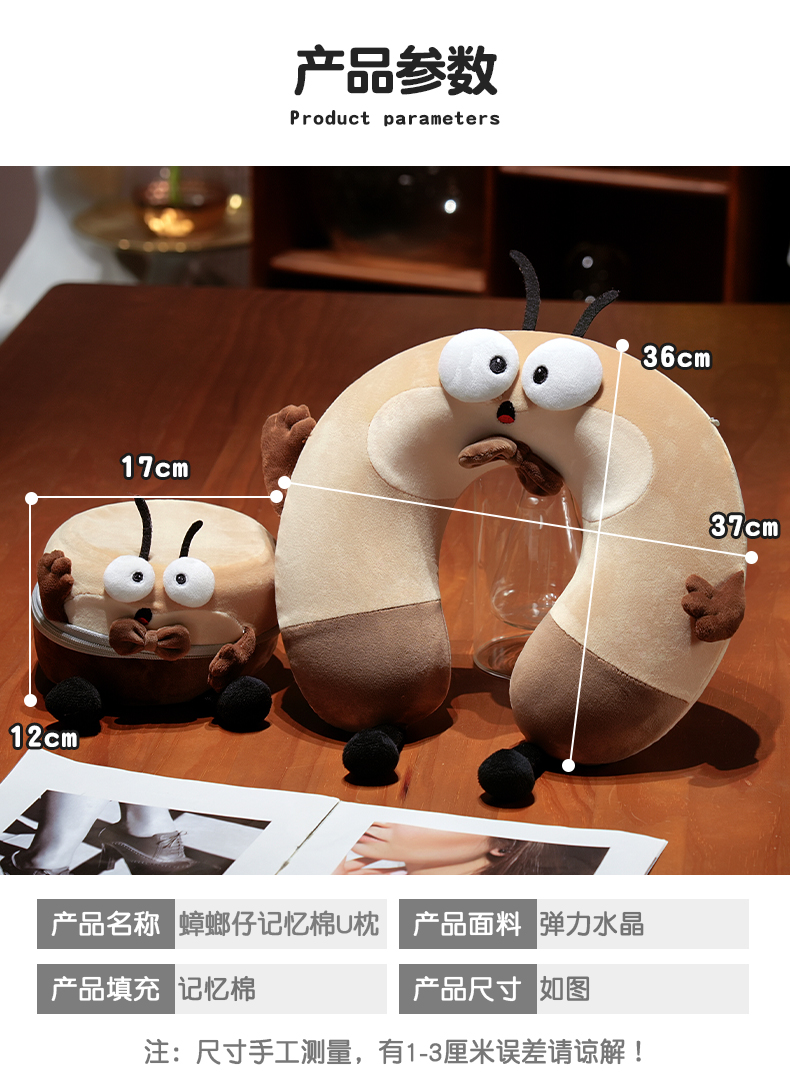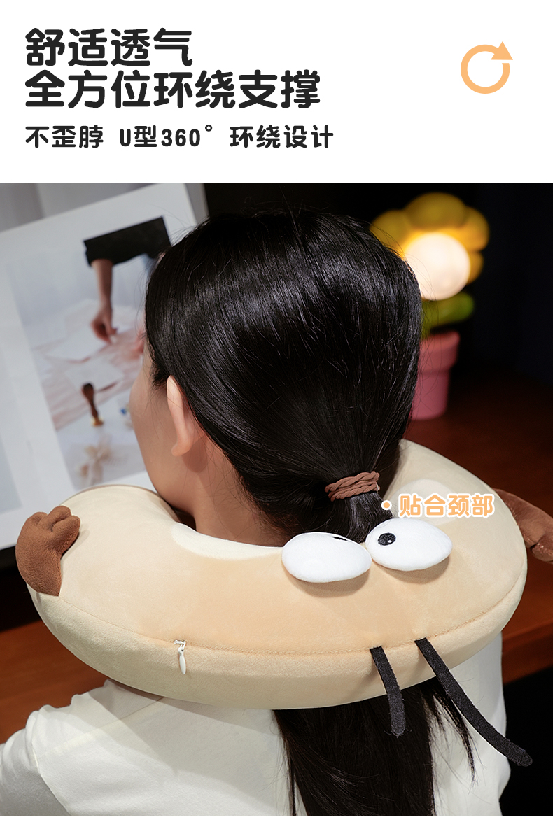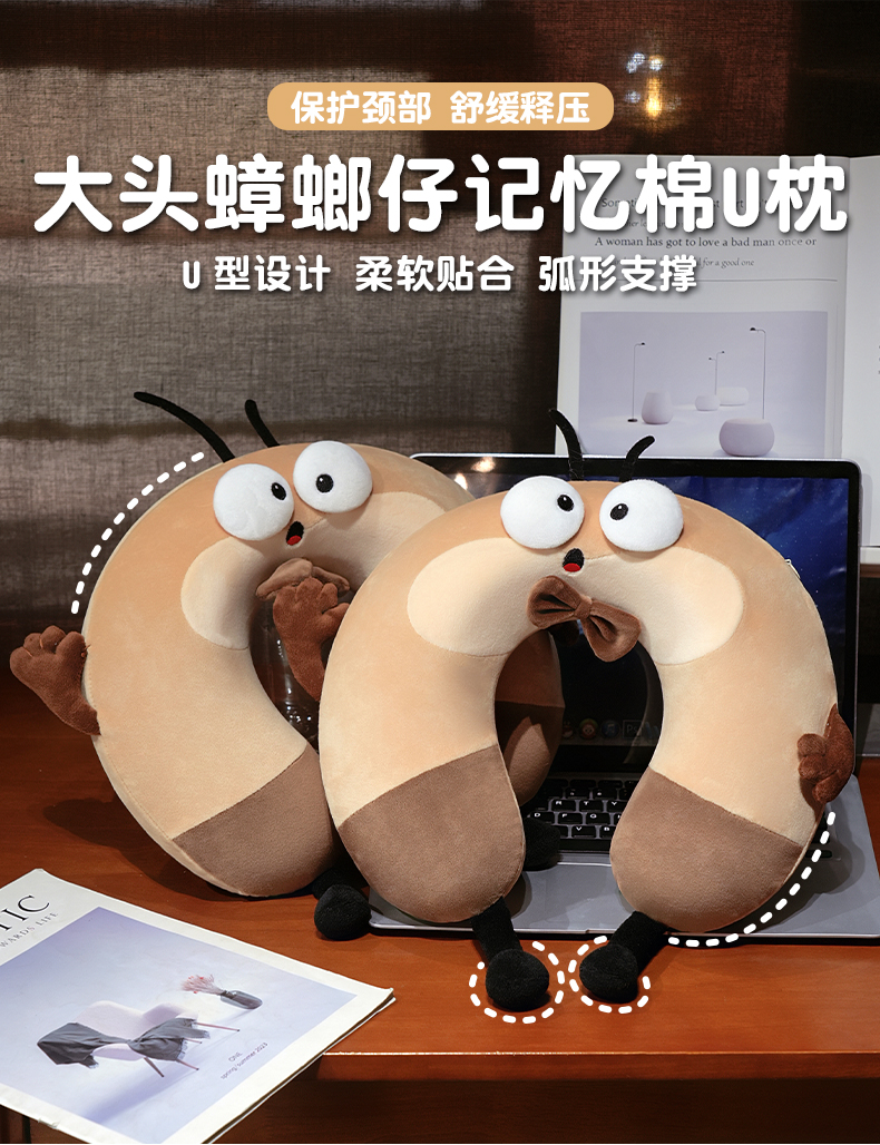 自然醒大头蟑螂仔记忆棉u型枕套盒学生旅行便携飞机护脖靠枕办公室午睡QYL