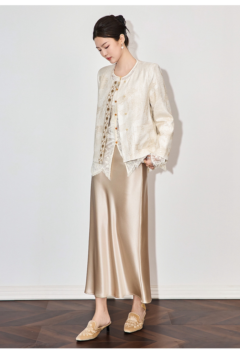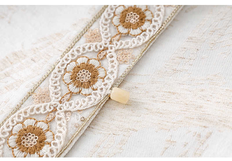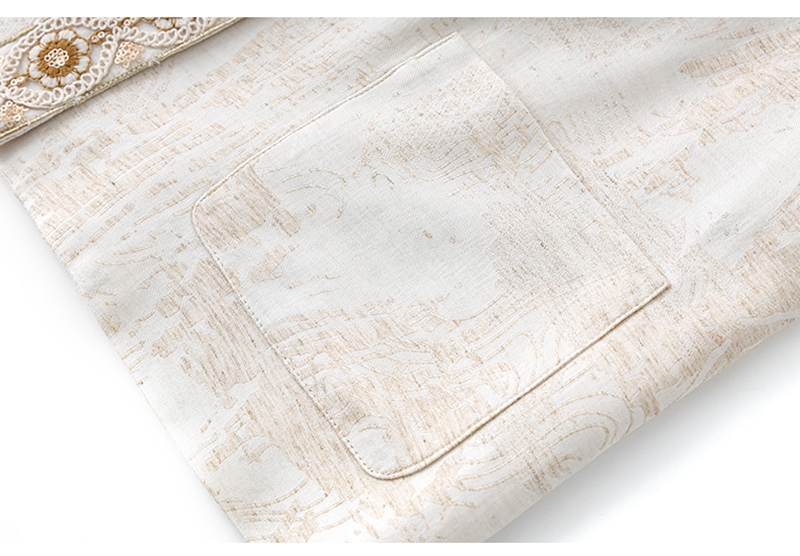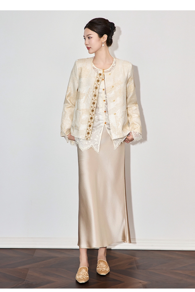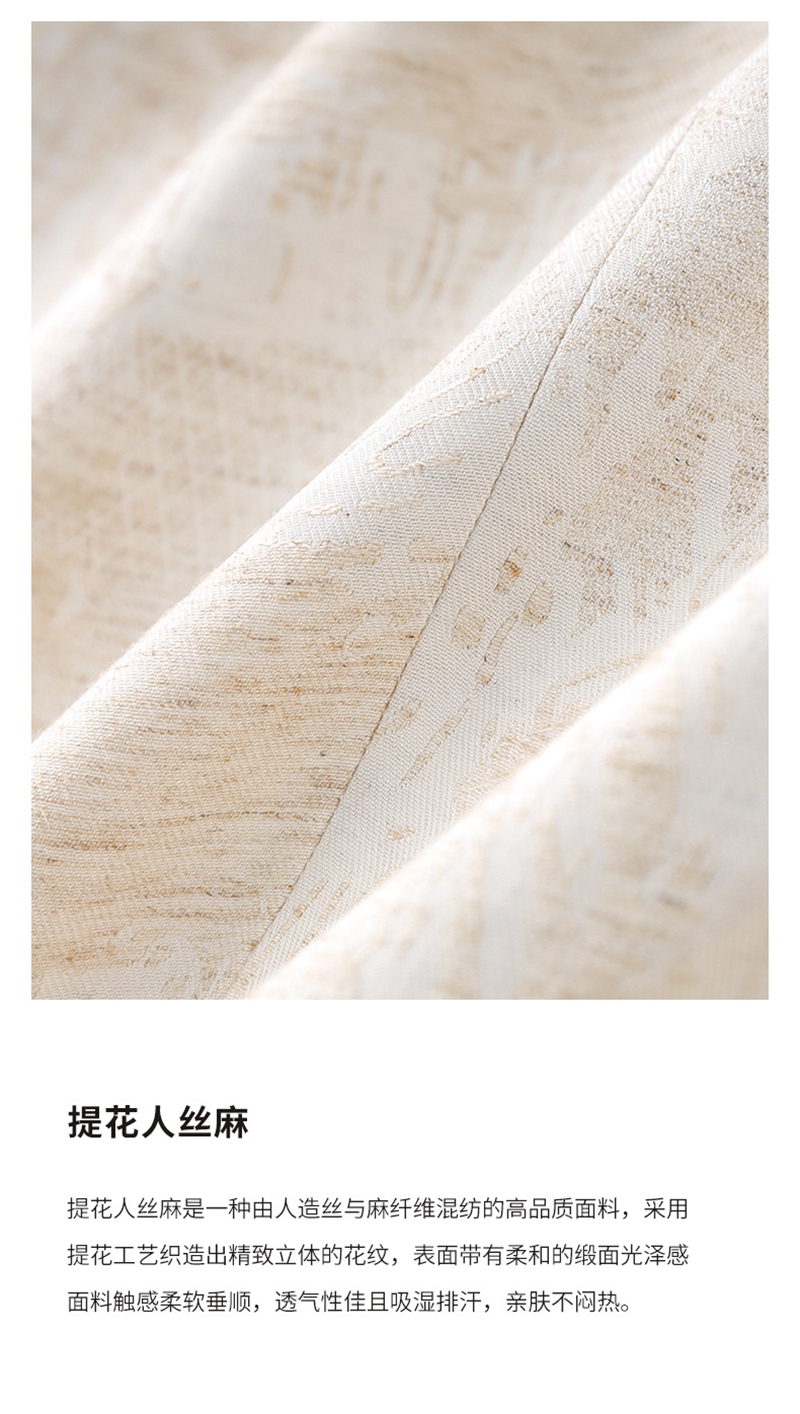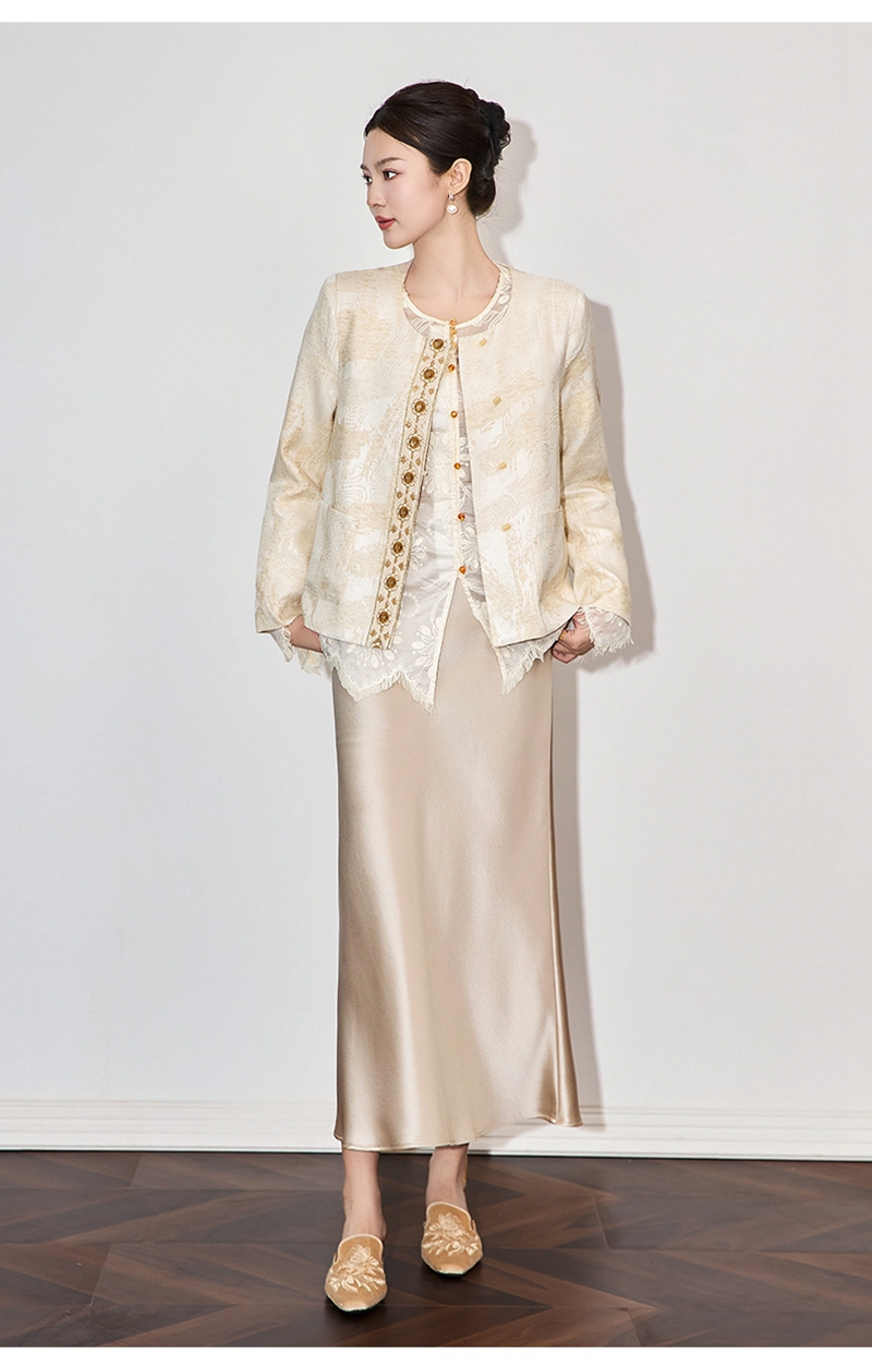 时尚新中式民族风图案提花圆领长袖单排扣丝麻外套