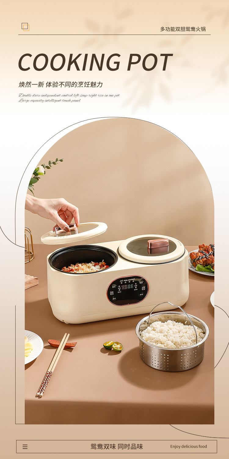 【鸳鸯锅电热火锅】双胆电饭锅 全自动多功能电饭锅 智能预约110v/220v双胆双控
