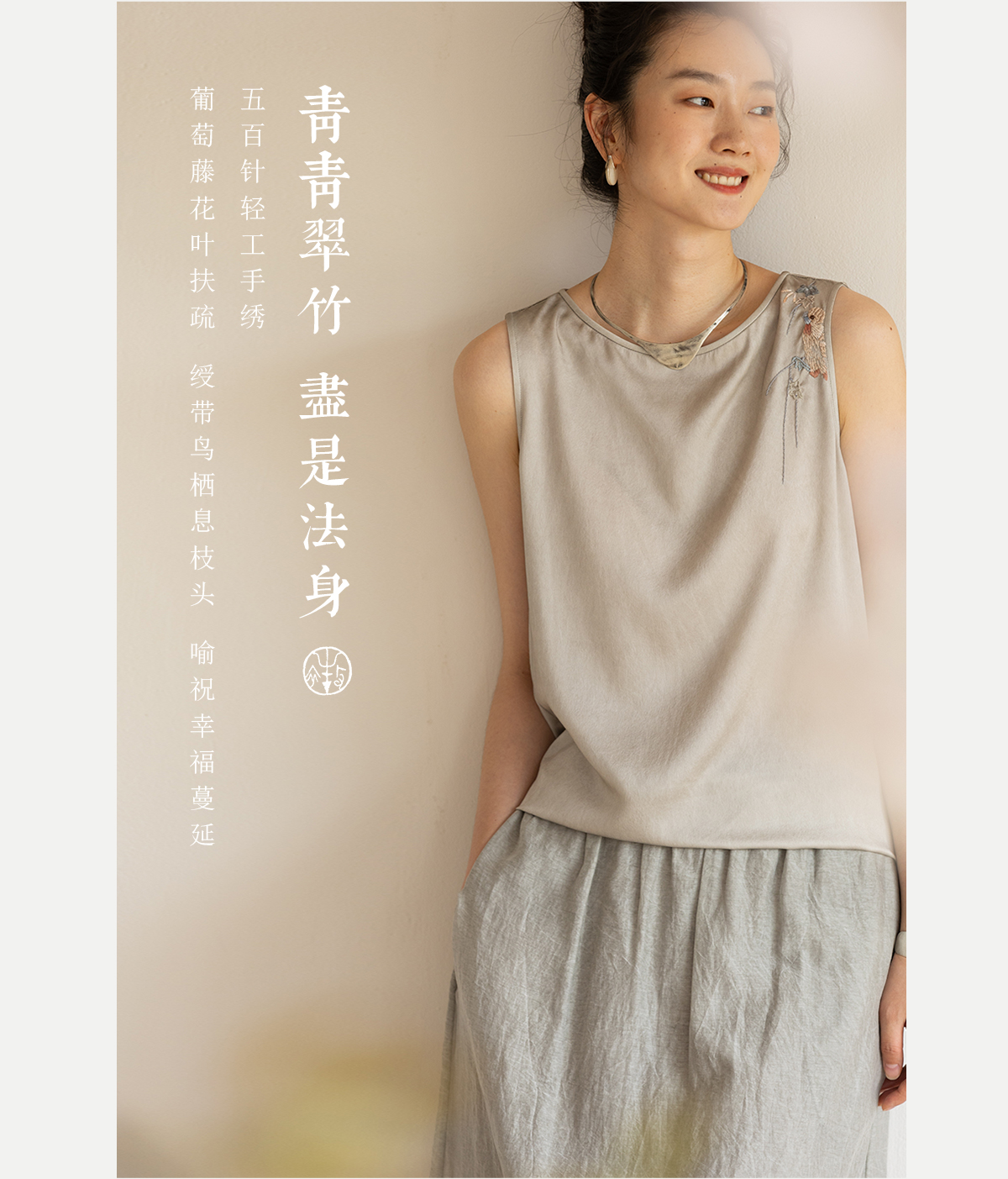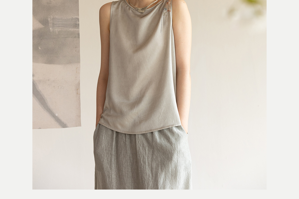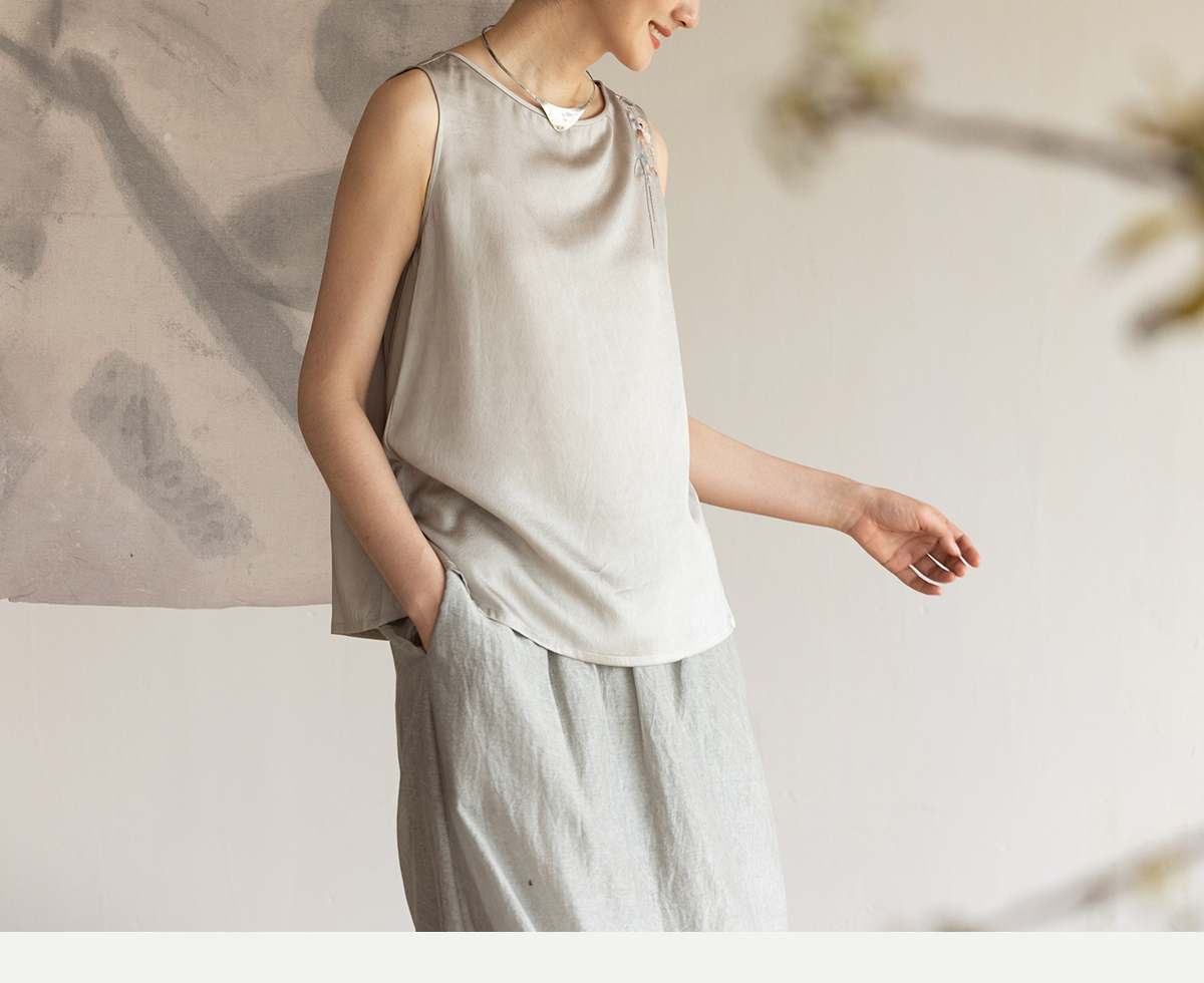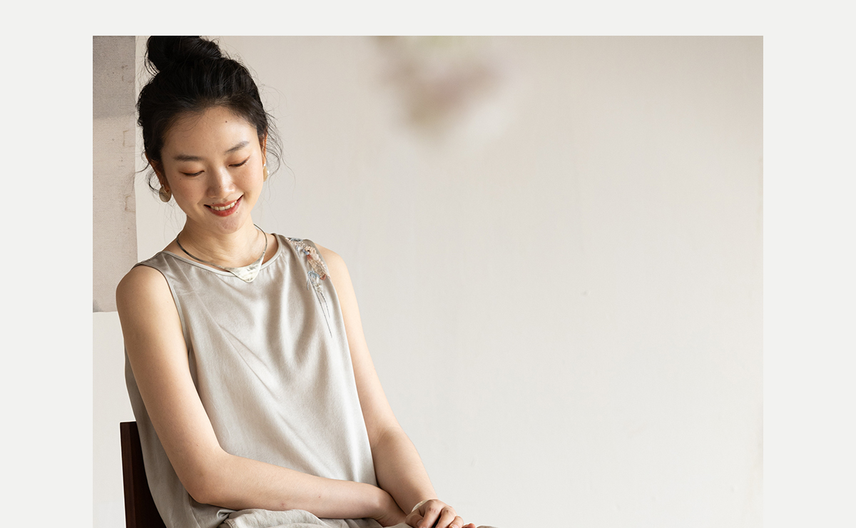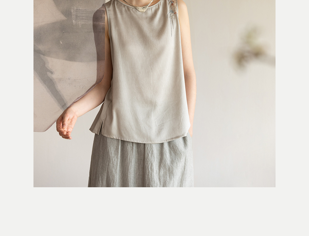 牧衣游原创 22姆米双宫绸刺绣炒色桑蚕丝马夹古朴质真丝上衣 泽兰