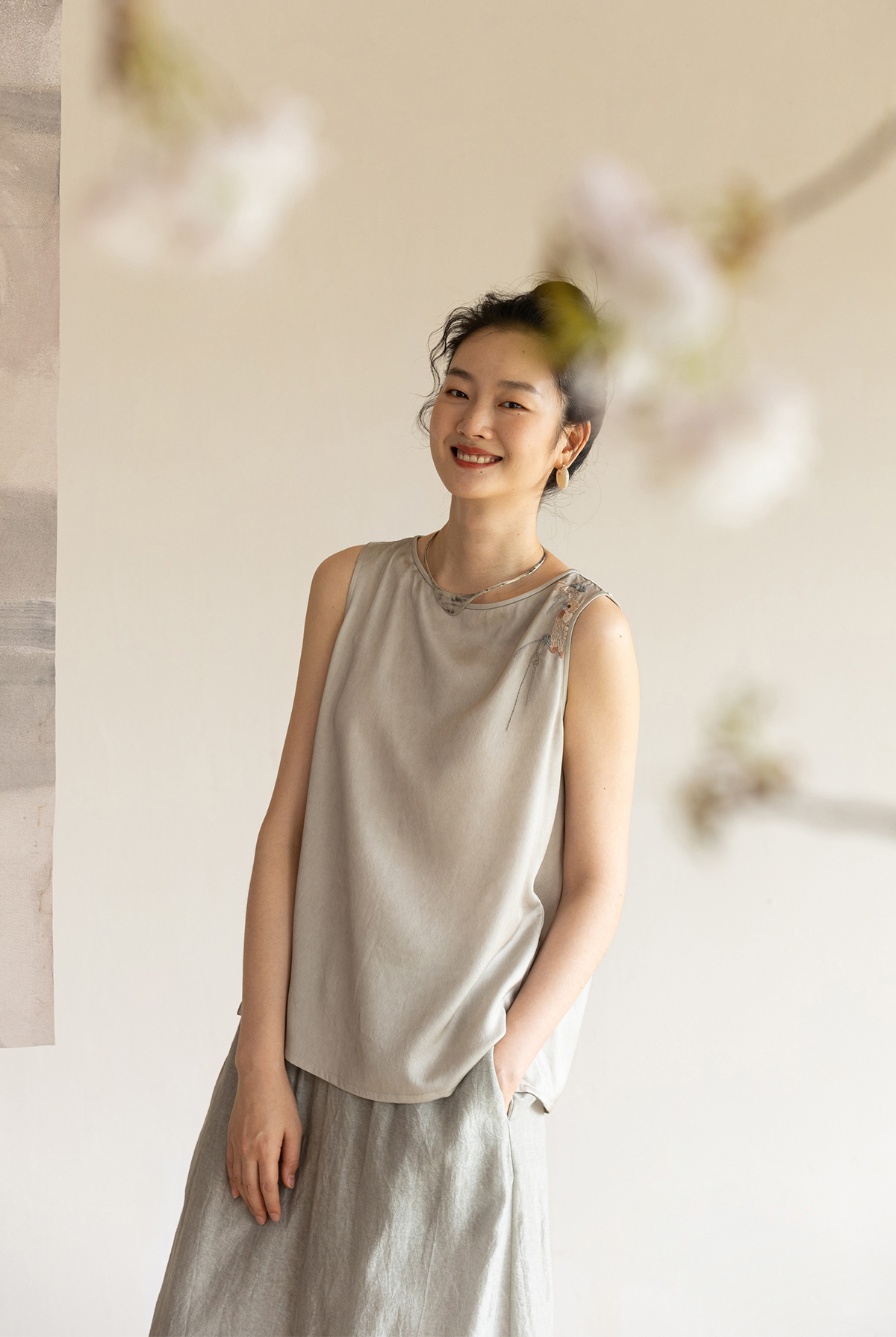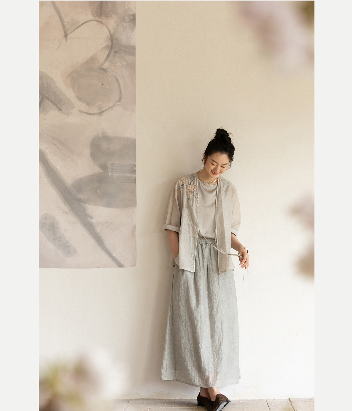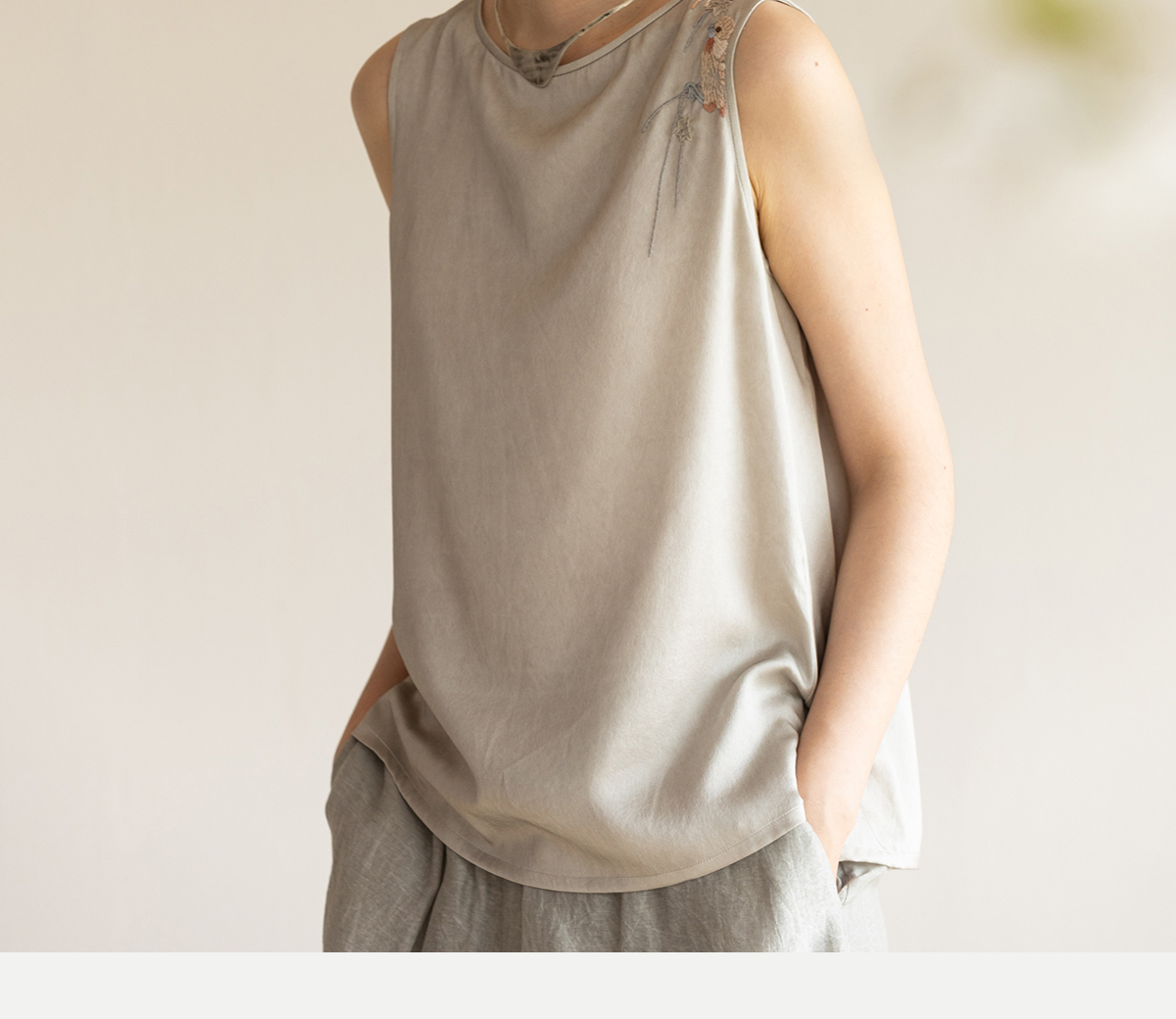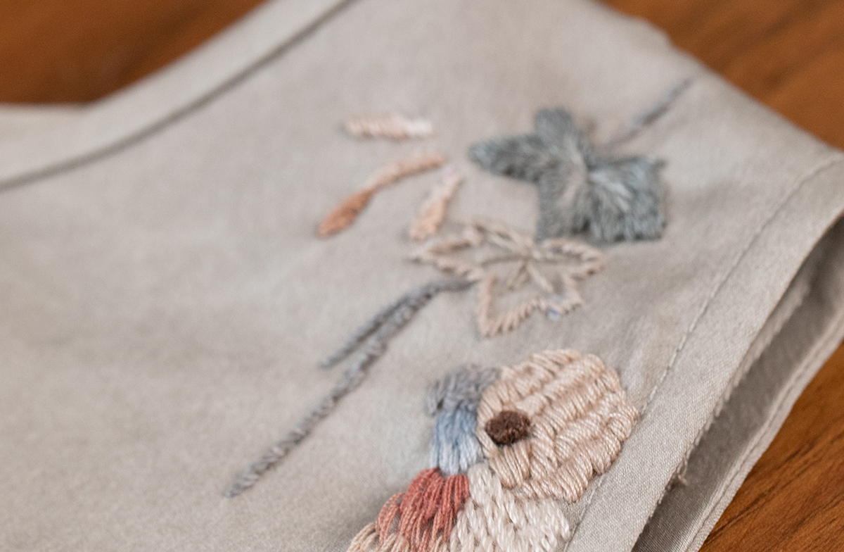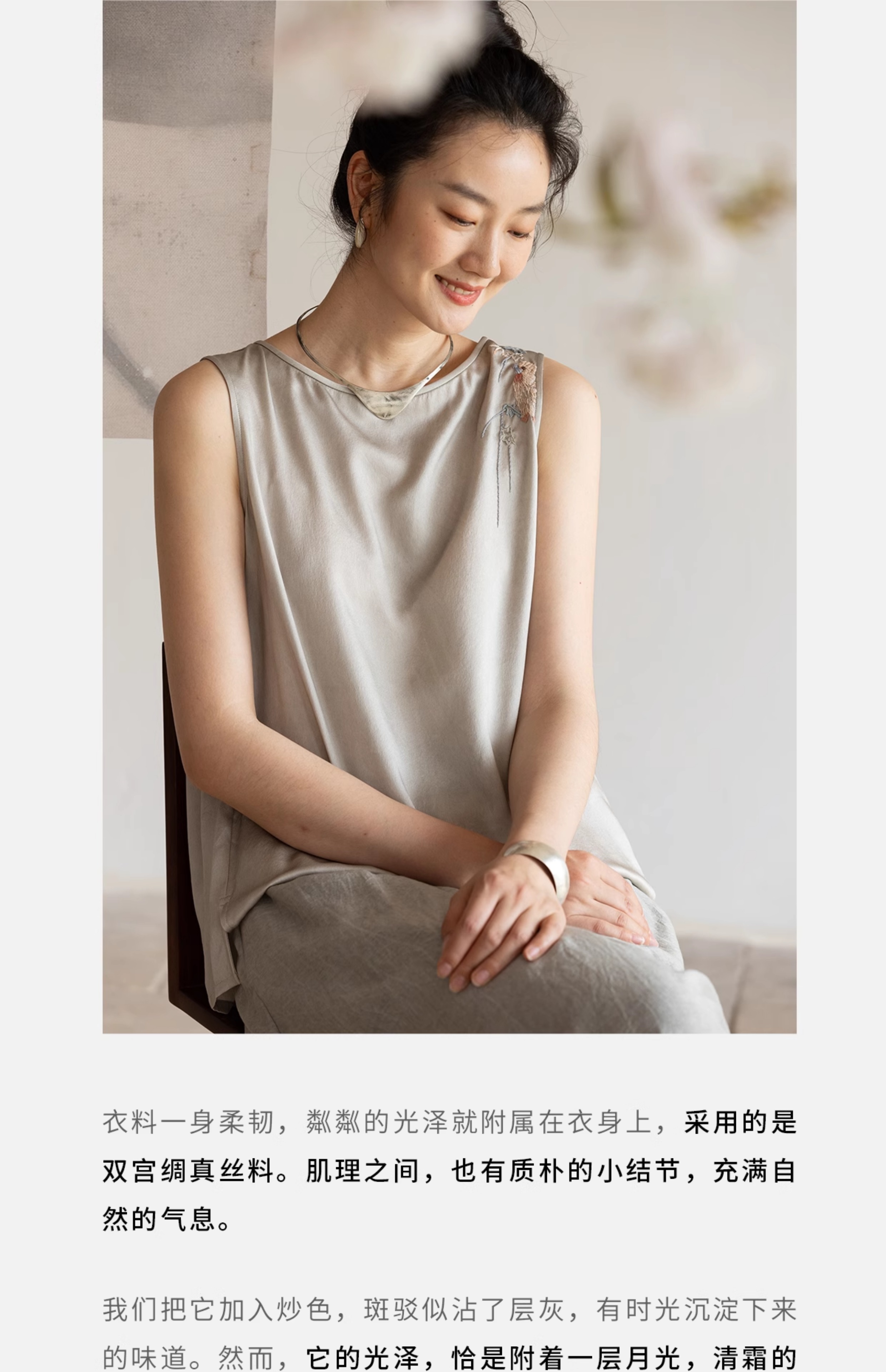 牧衣游原创 22姆米双宫绸刺绣炒色桑蚕丝马夹古朴质真丝上衣 泽兰
