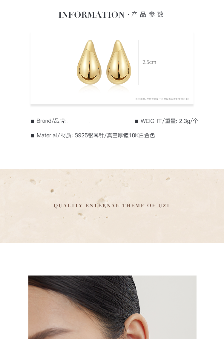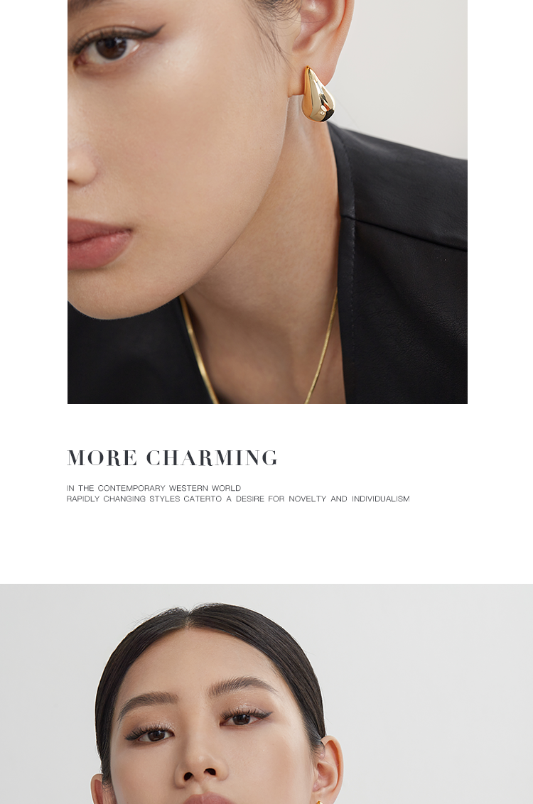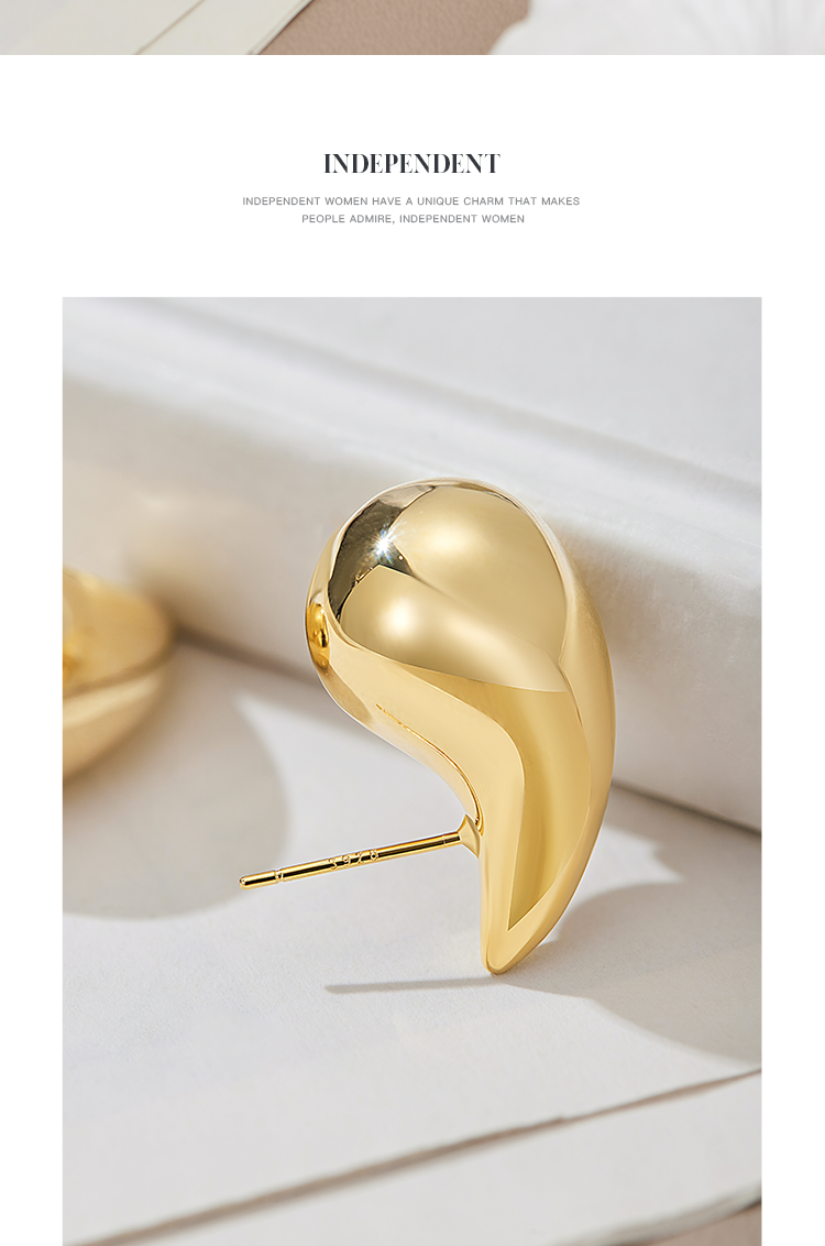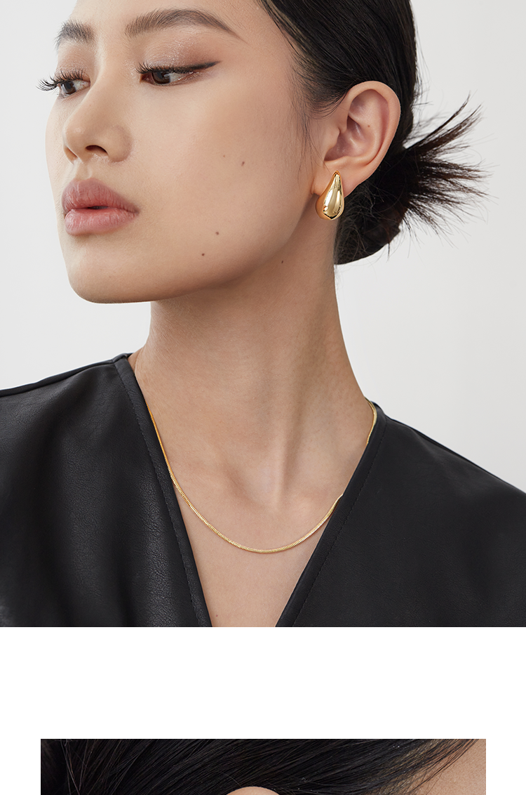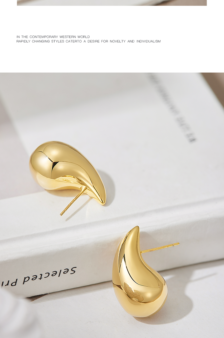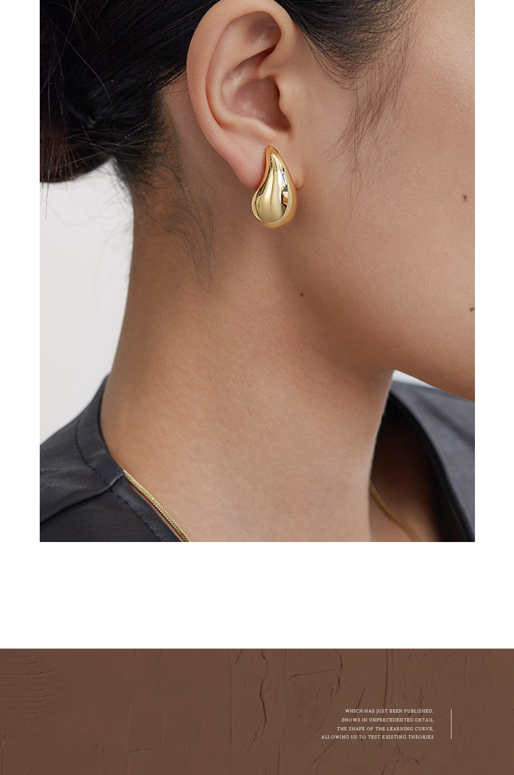 Oflye潮流饰品 水滴金色耳环女小众设计感气质耳钉法式复古耳饰新款秋冬