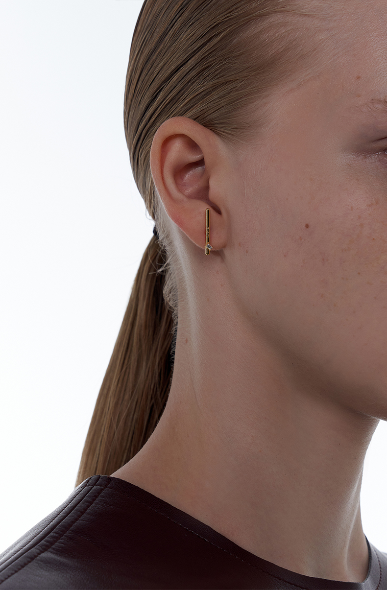 KVK镶钻耳环2021年新款潮线形防过敏耳钉女时尚网红耳针原创耳饰