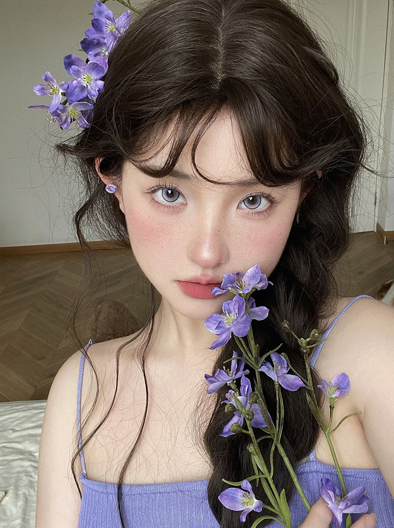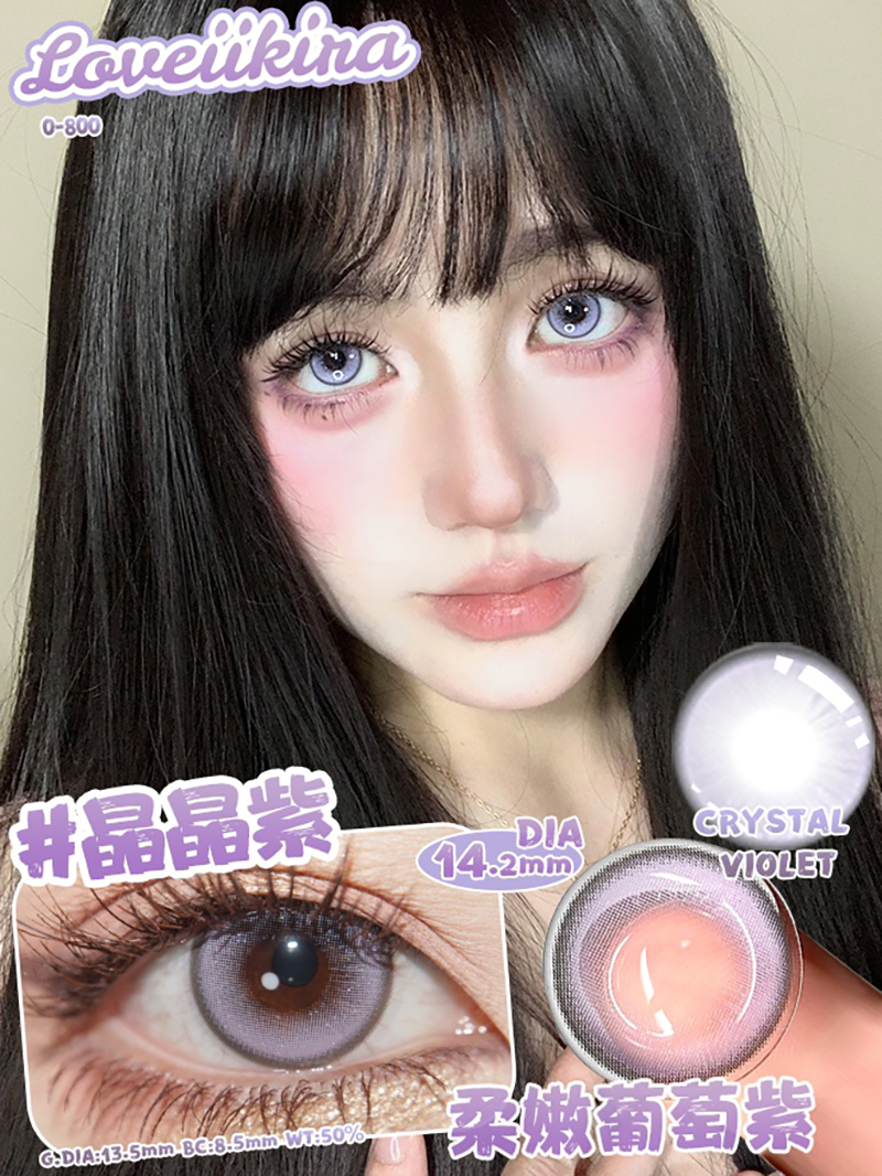 艾吉拉Loveiikira 晶晶紫 日抛 十片 14.2mm 参考着色13.5mm 基弧8.5 含水50% 新锐国货