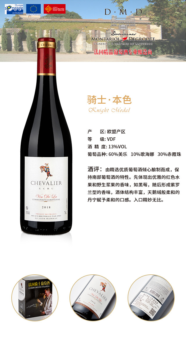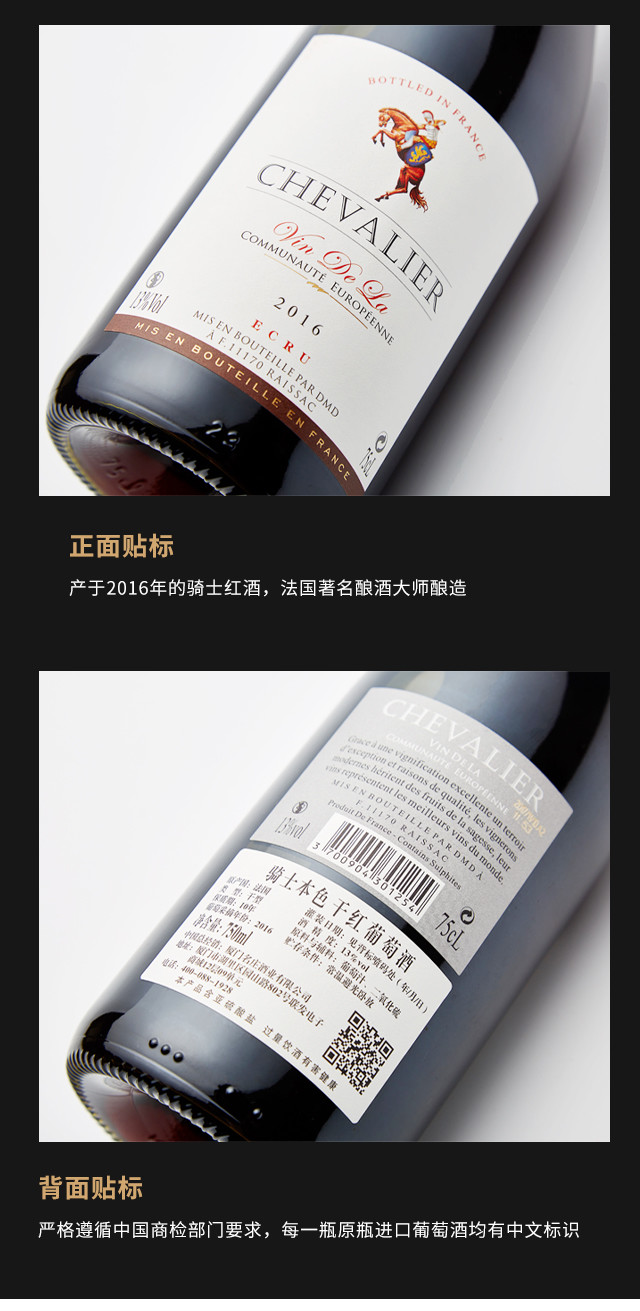 法国骑士本色干红葡萄酒 整箱6瓶*750ml包邮