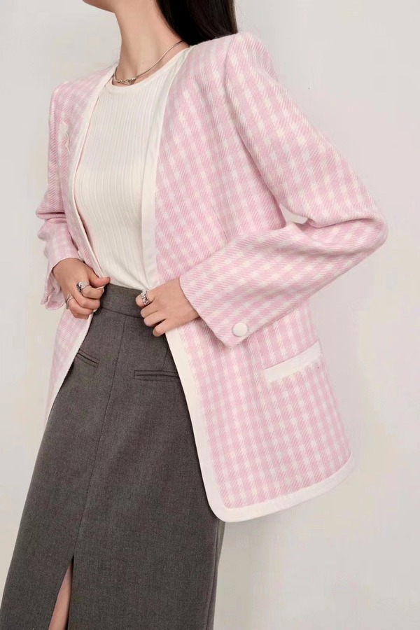 Stay2Weeks 粉色格纹气质小香风外套 17791