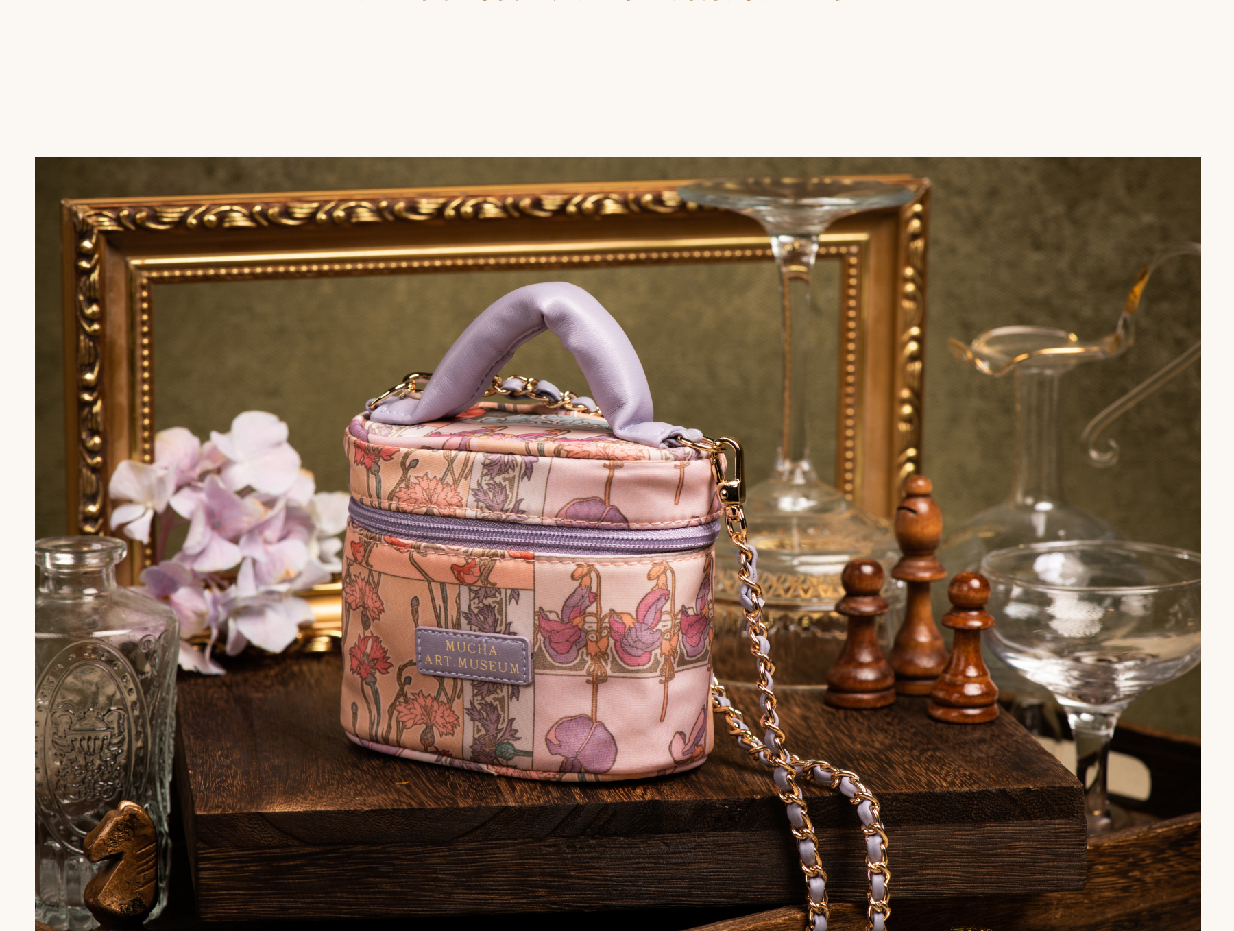 穆夏繁花文创手提盒子包女迷你小香风单肩斜挎包链条小包生日礼物