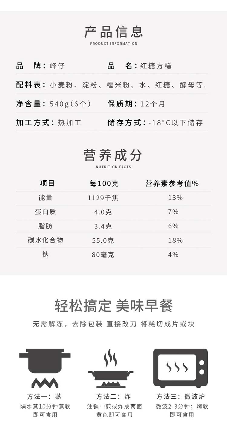 25B峰仔方糕(白糖/玉米/红糖) 540g/袋(6个) 15袋/件