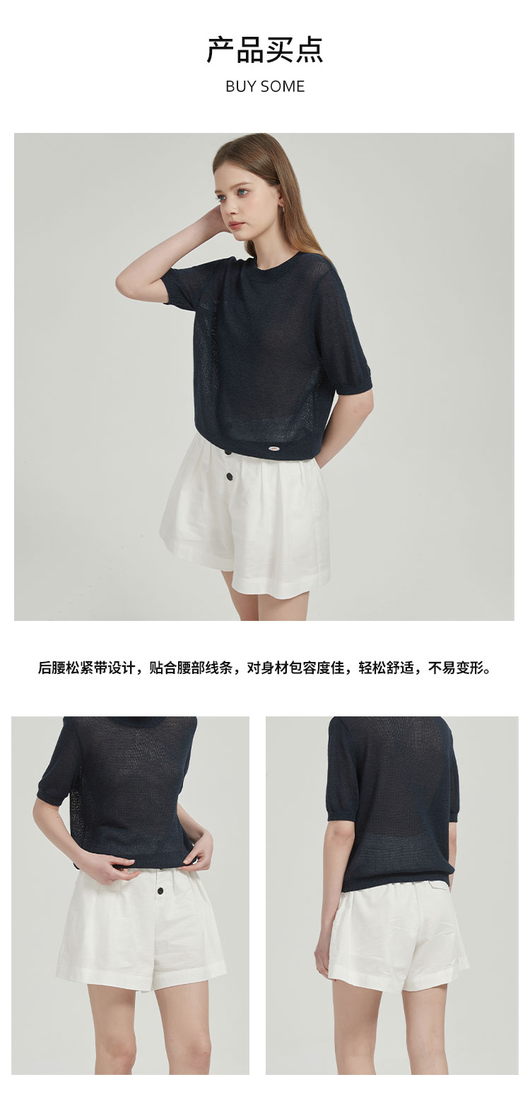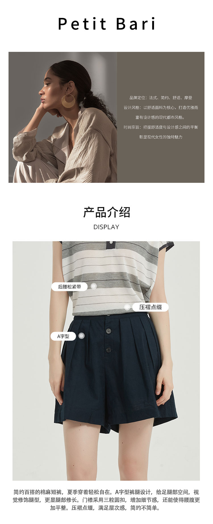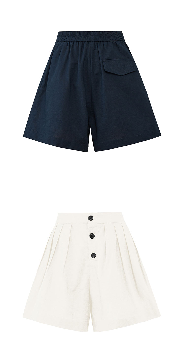 【2件9折】【Petit Bari】(多色)简约三粒扣棉麻A字裙裤短裤