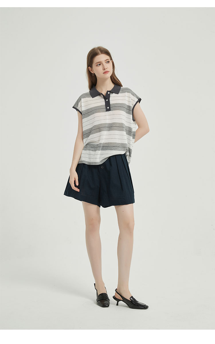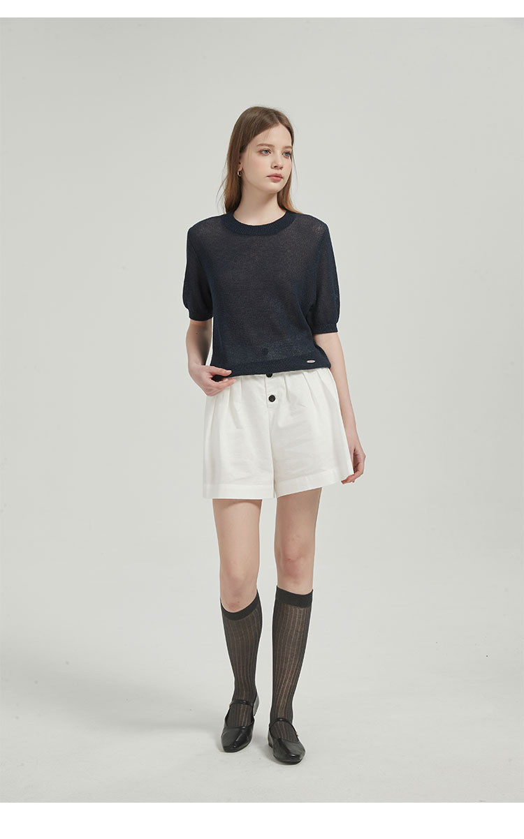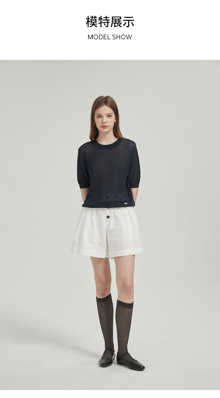 【2件9折】【Petit Bari】(多色)简约三粒扣棉麻A字裙裤短裤