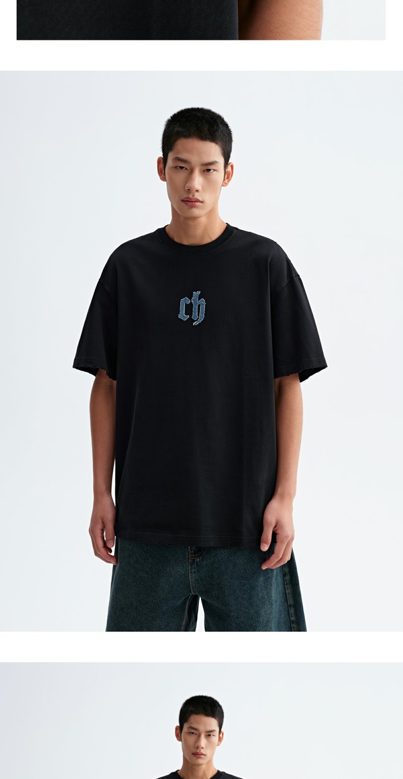 【贴布绣logo】CHINISM赤尘 黑色短袖T恤男夏季宽松半袖男士上衣