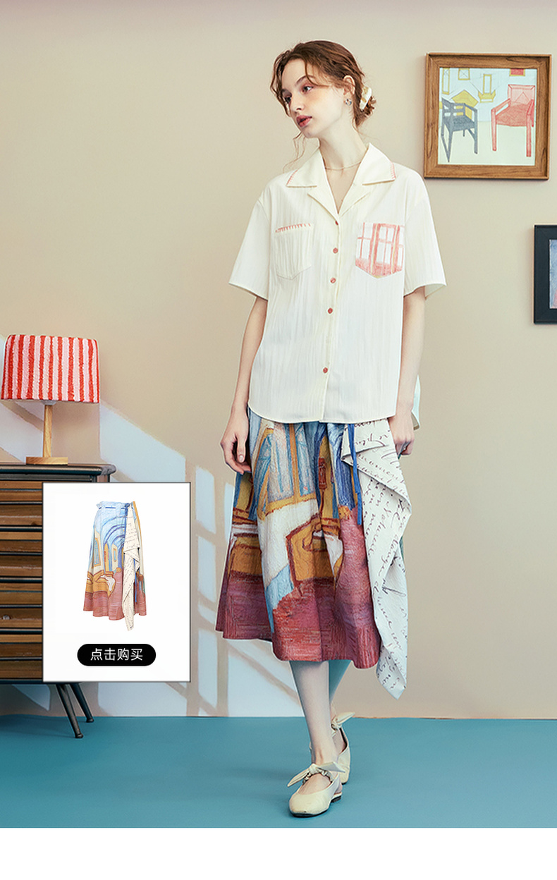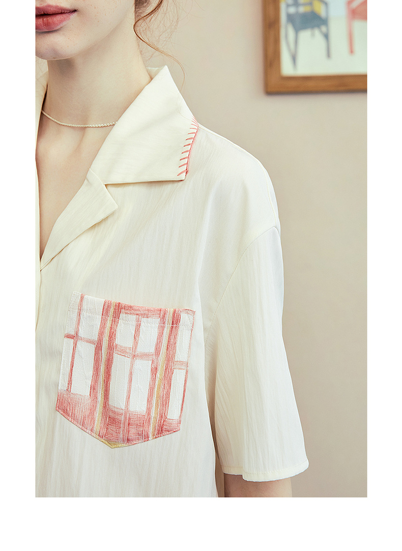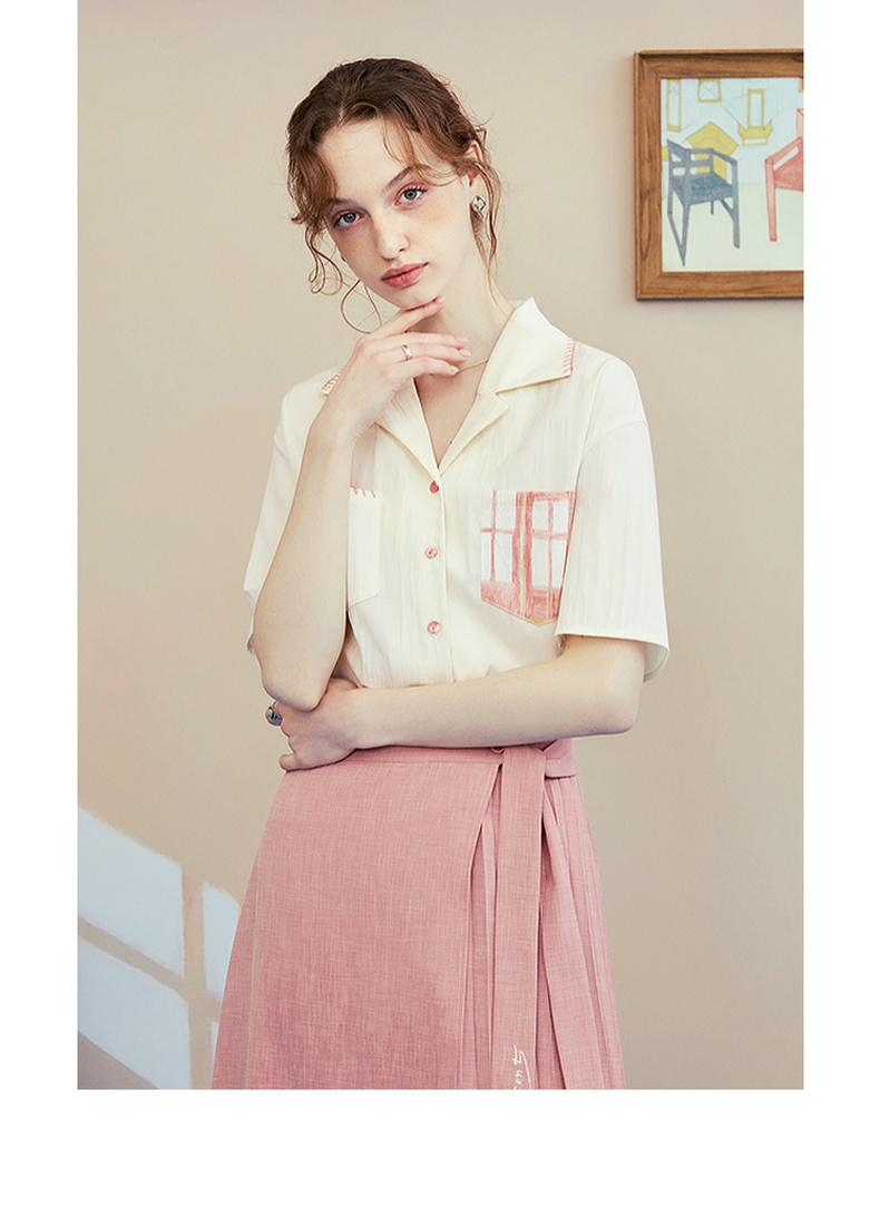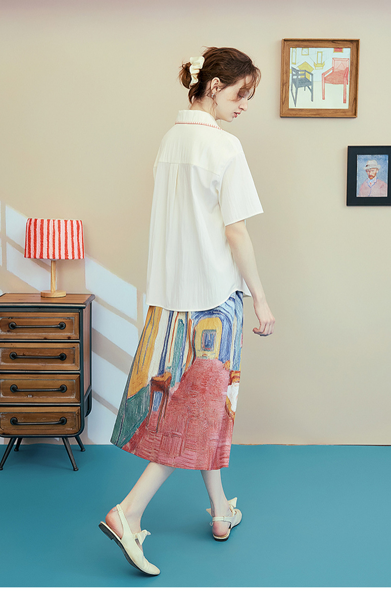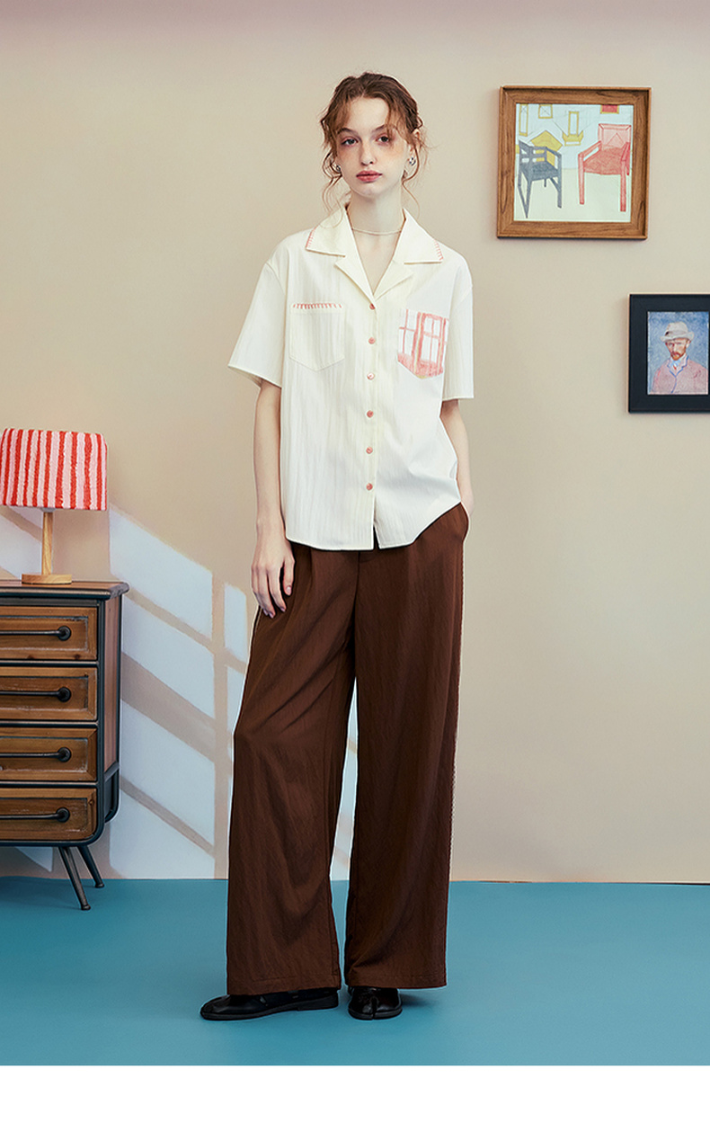 两三事梵高文艺 窗外来物 2025夏季新款复古印花口袋翻领衬衫女