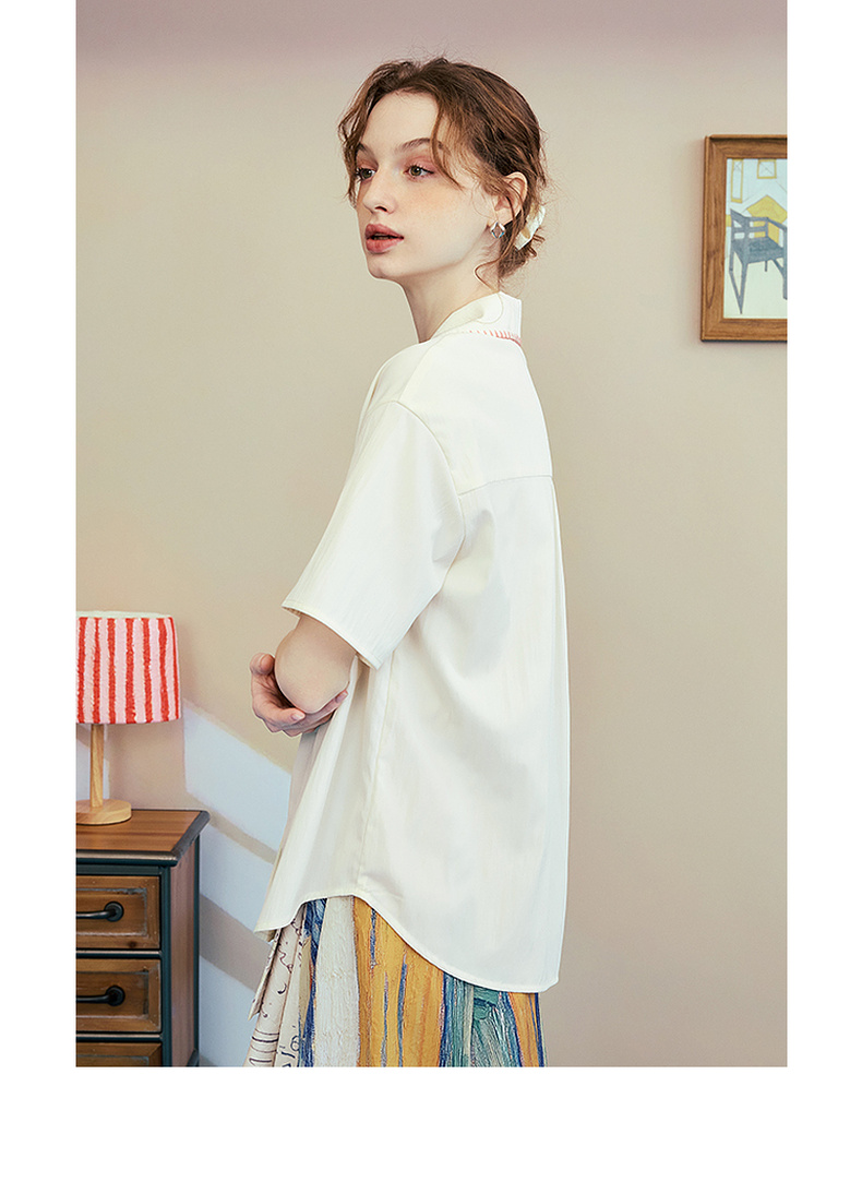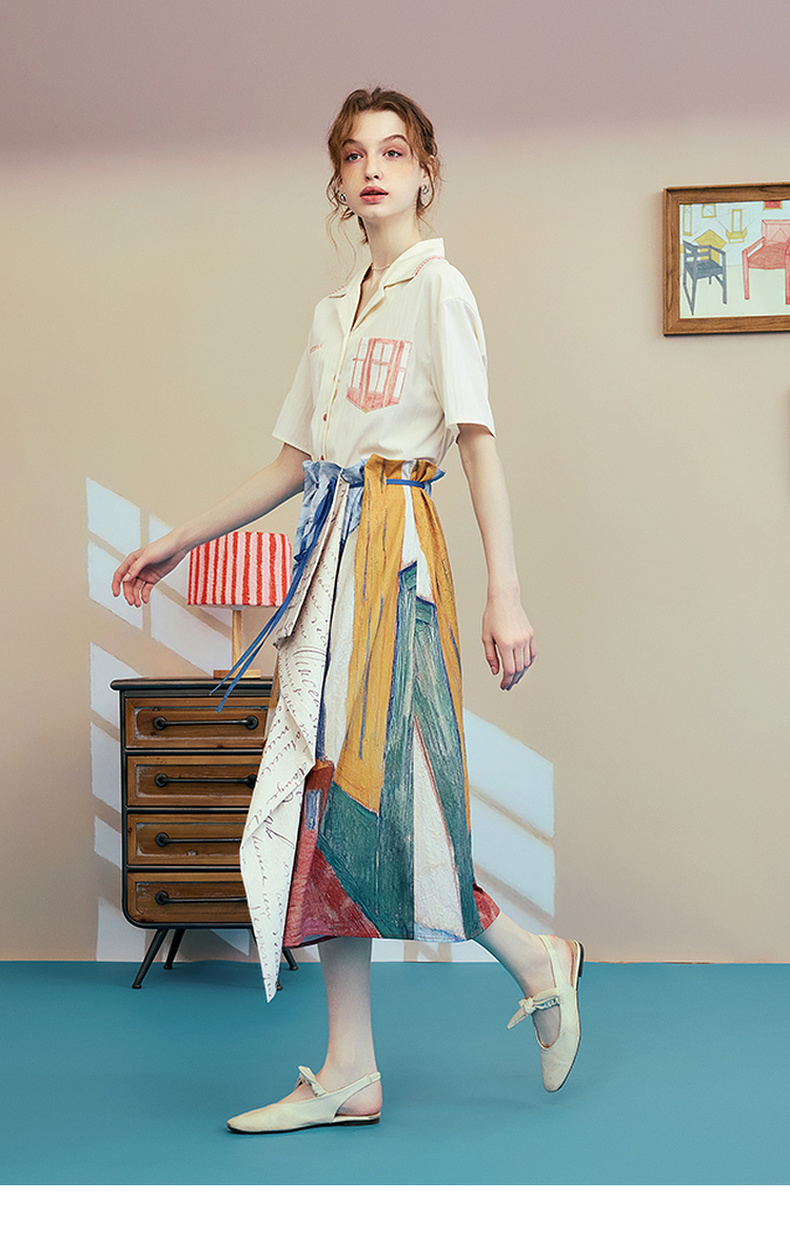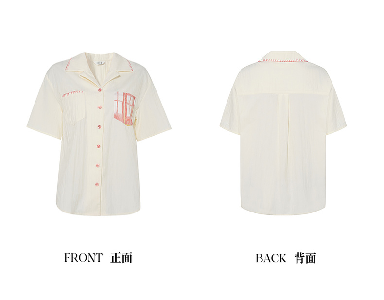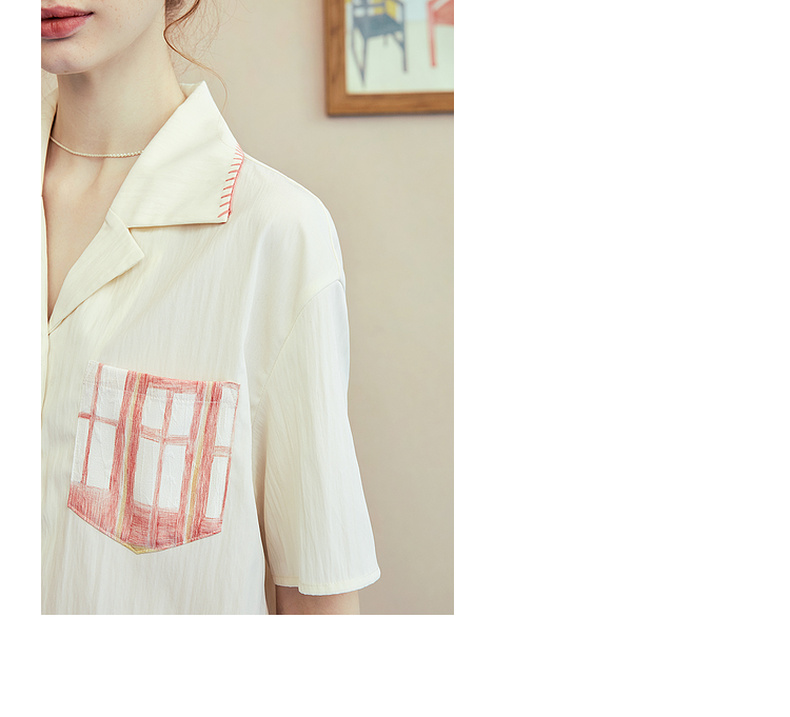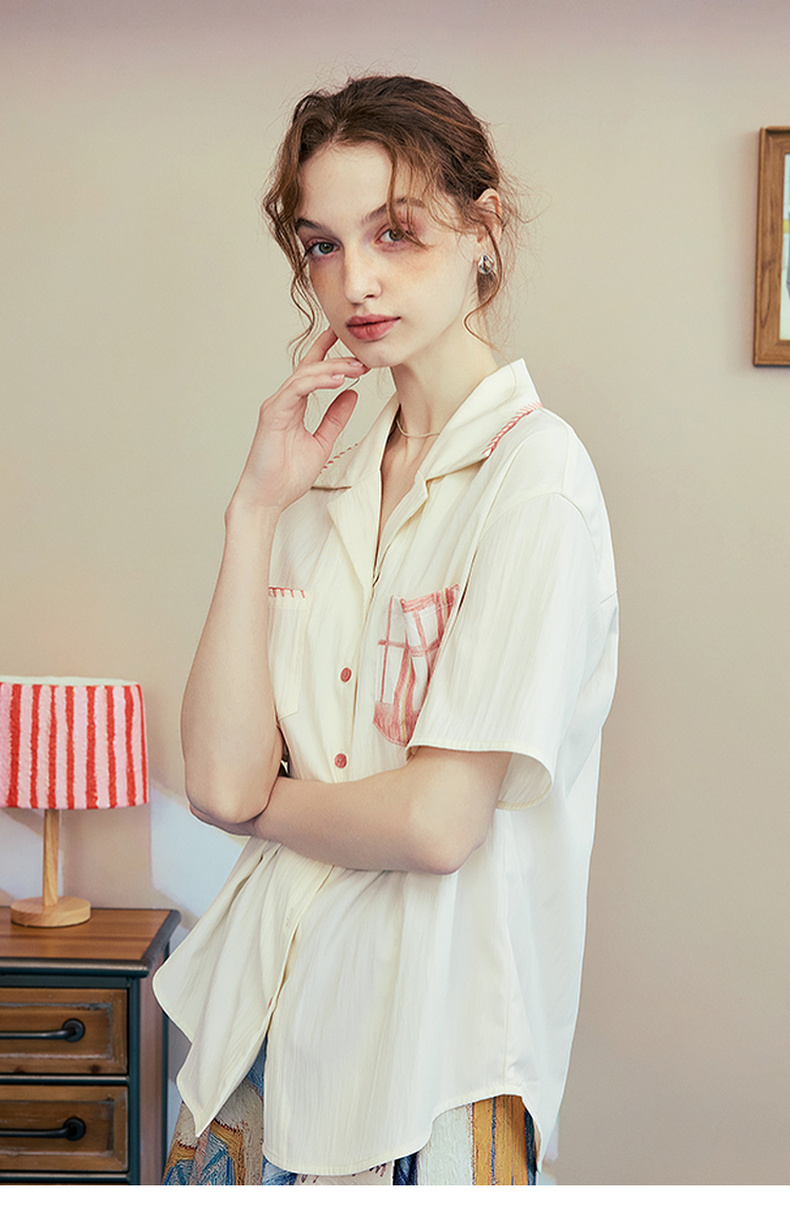 两三事梵高文艺 窗外来物 2025夏季新款复古印花口袋翻领衬衫女