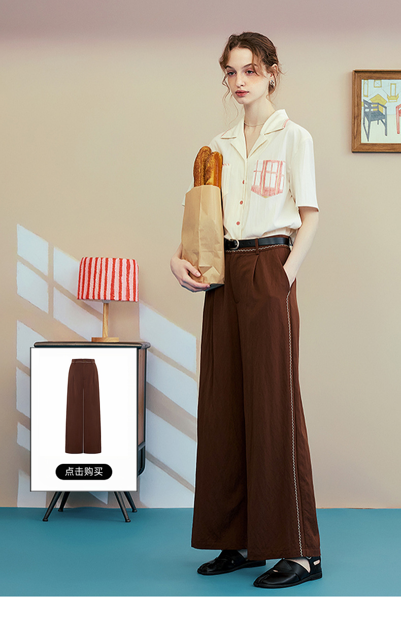 两三事梵高文艺 赭谣漫信 2025秋季新款刺绣纽扣装饰阔腿休闲裤女