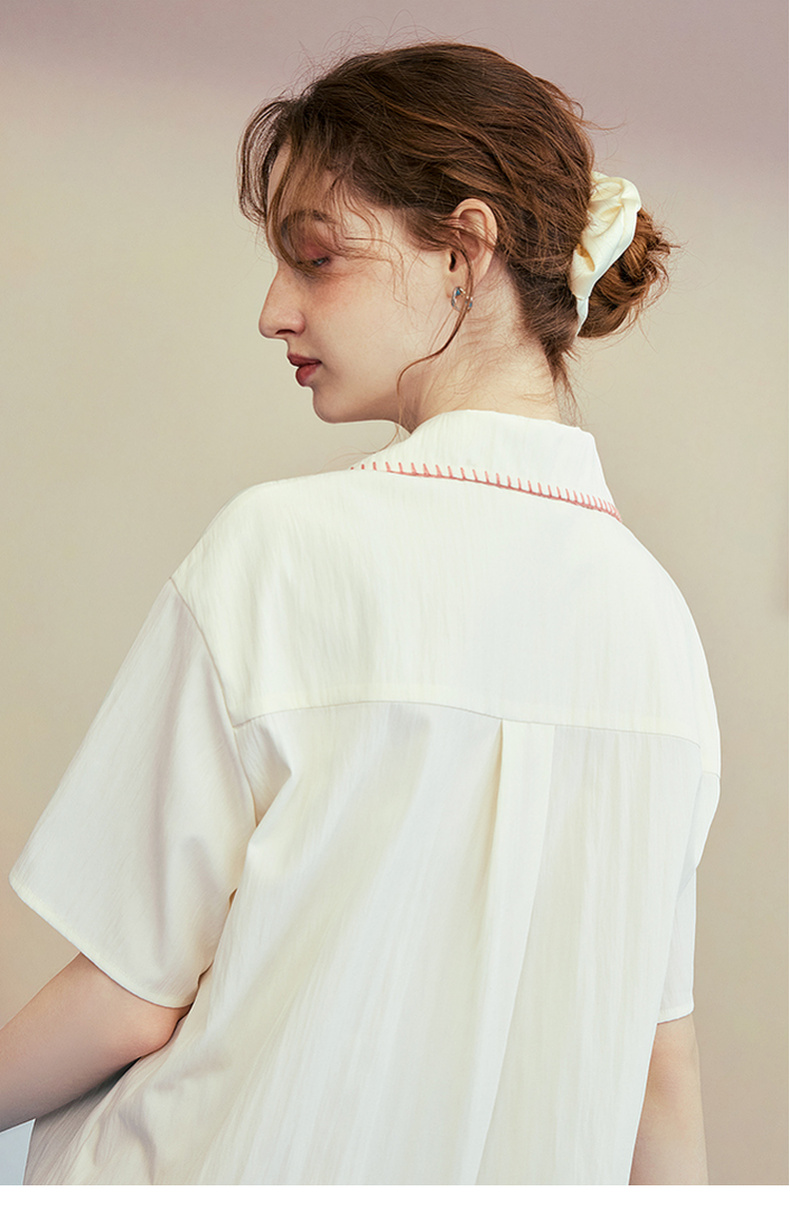 两三事行云如水国潮系列春季设计感小众气质衬衫复古印花宽松衬衣