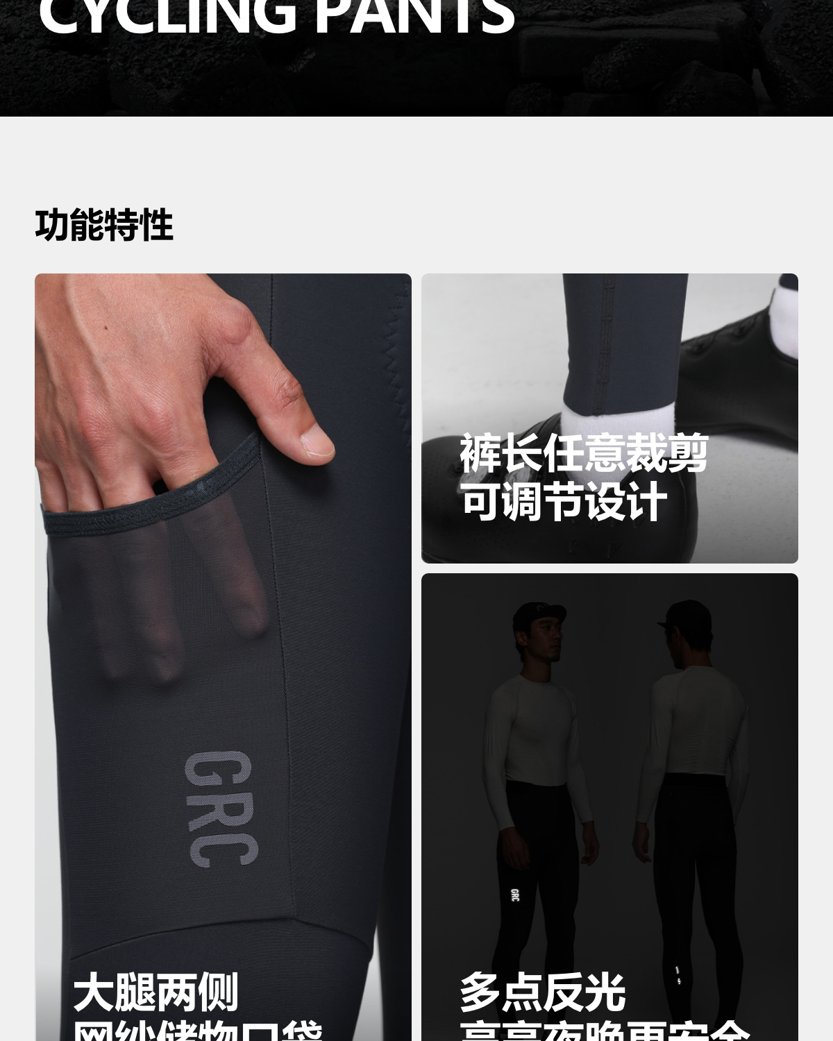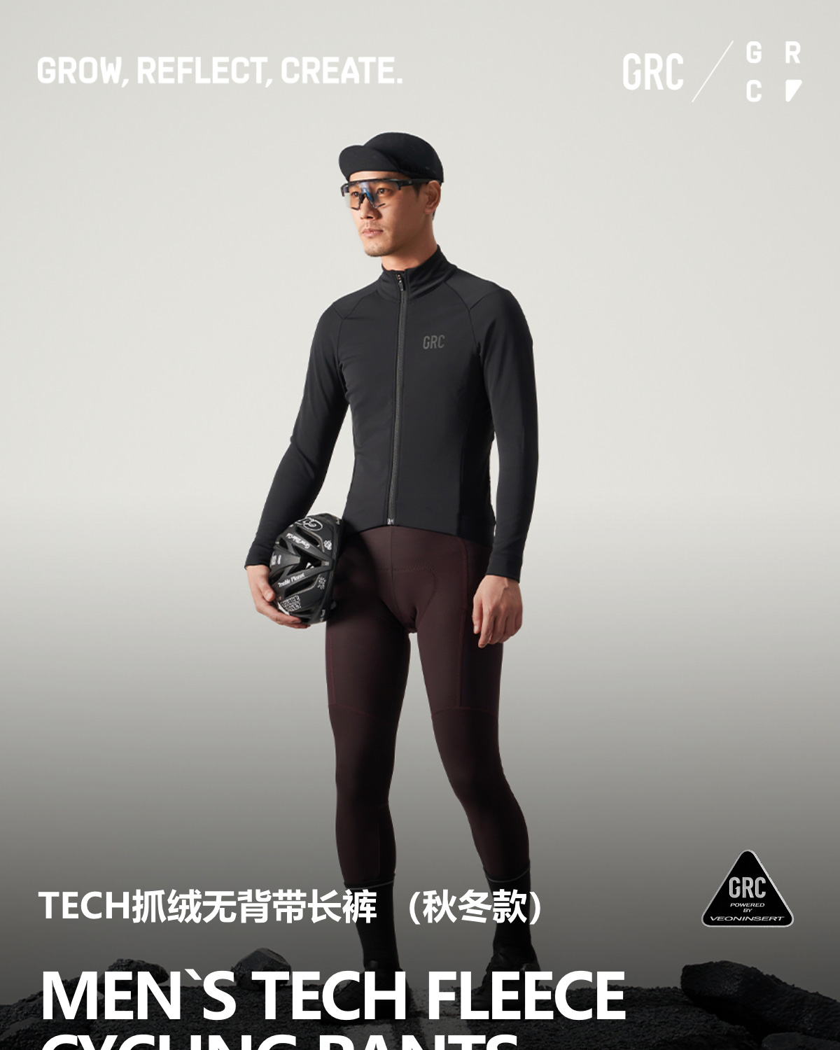 GRC桀骜无尽男士秋冬新款TECH系列抓绒保暖反光骑行无背带长裤