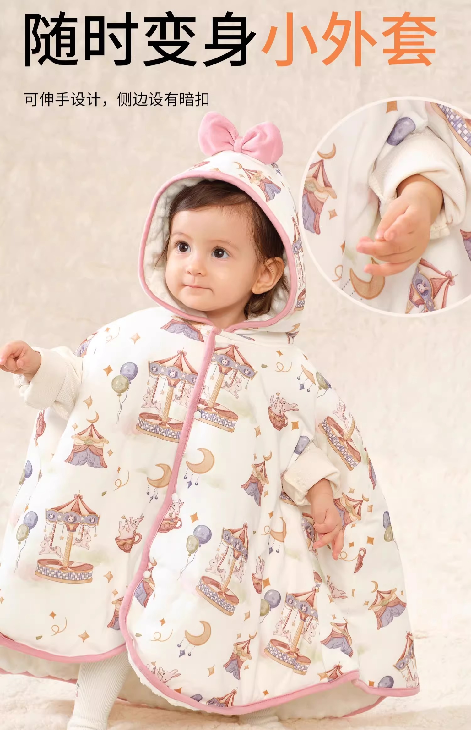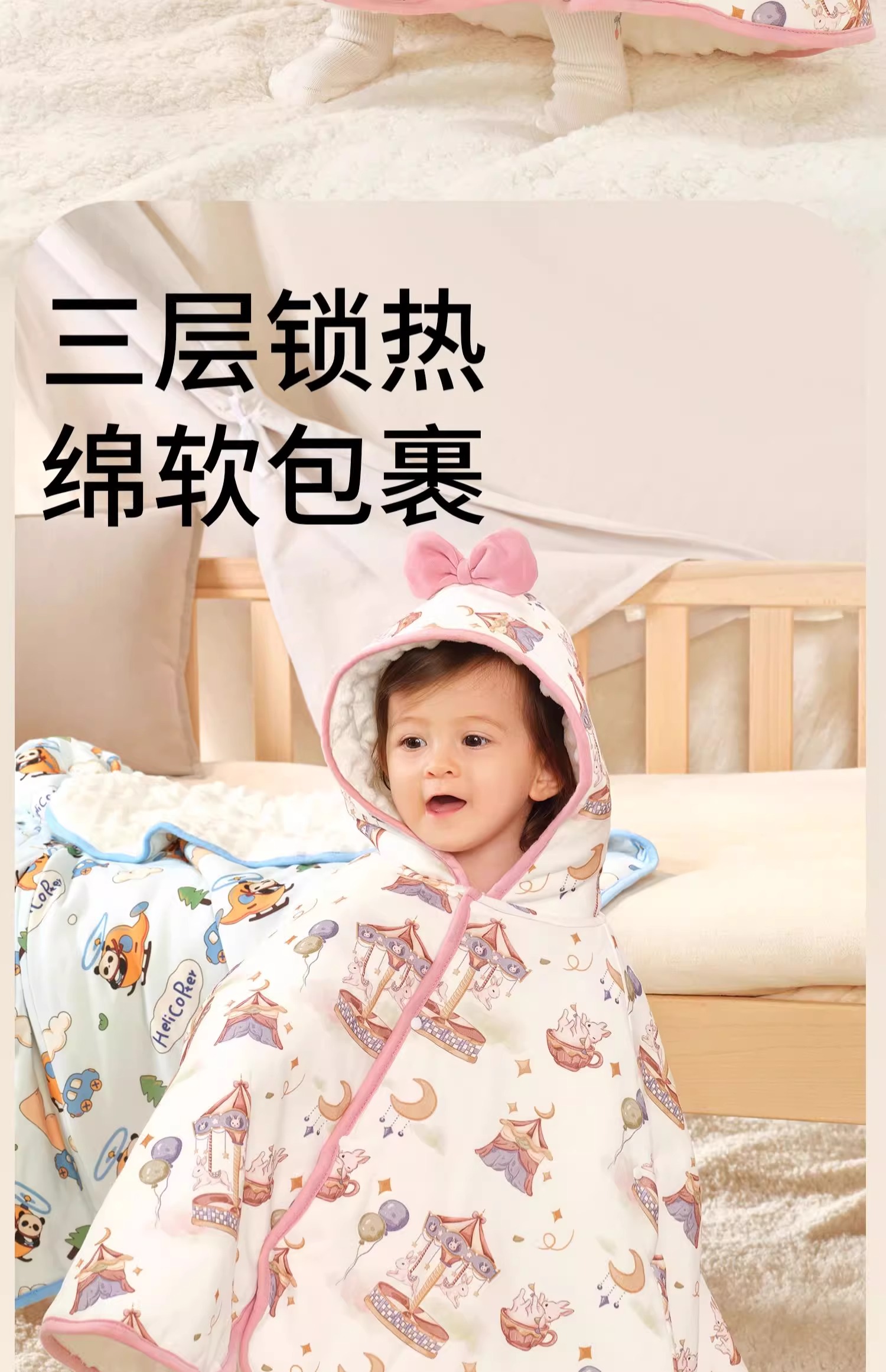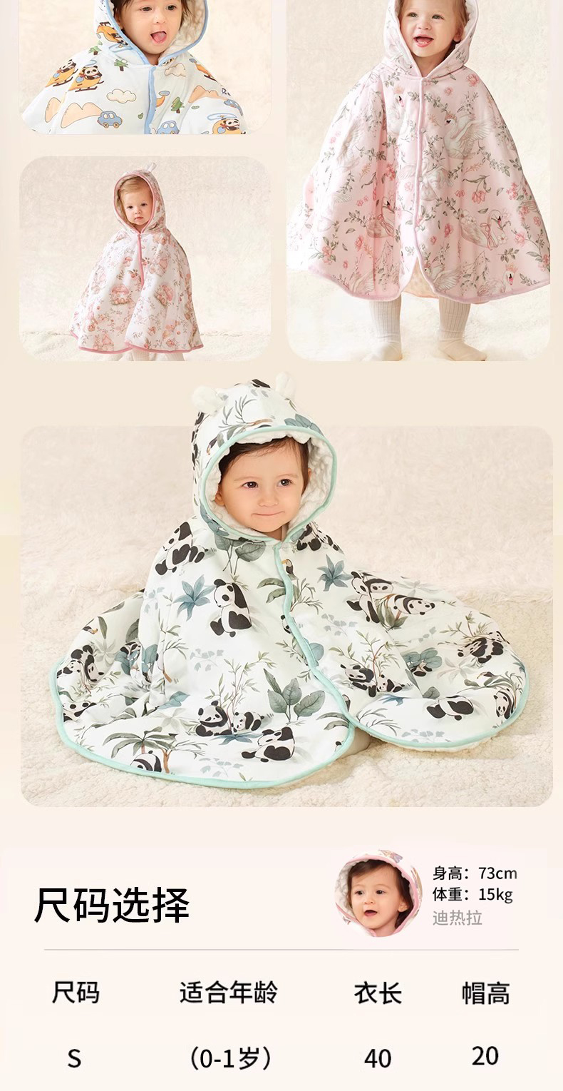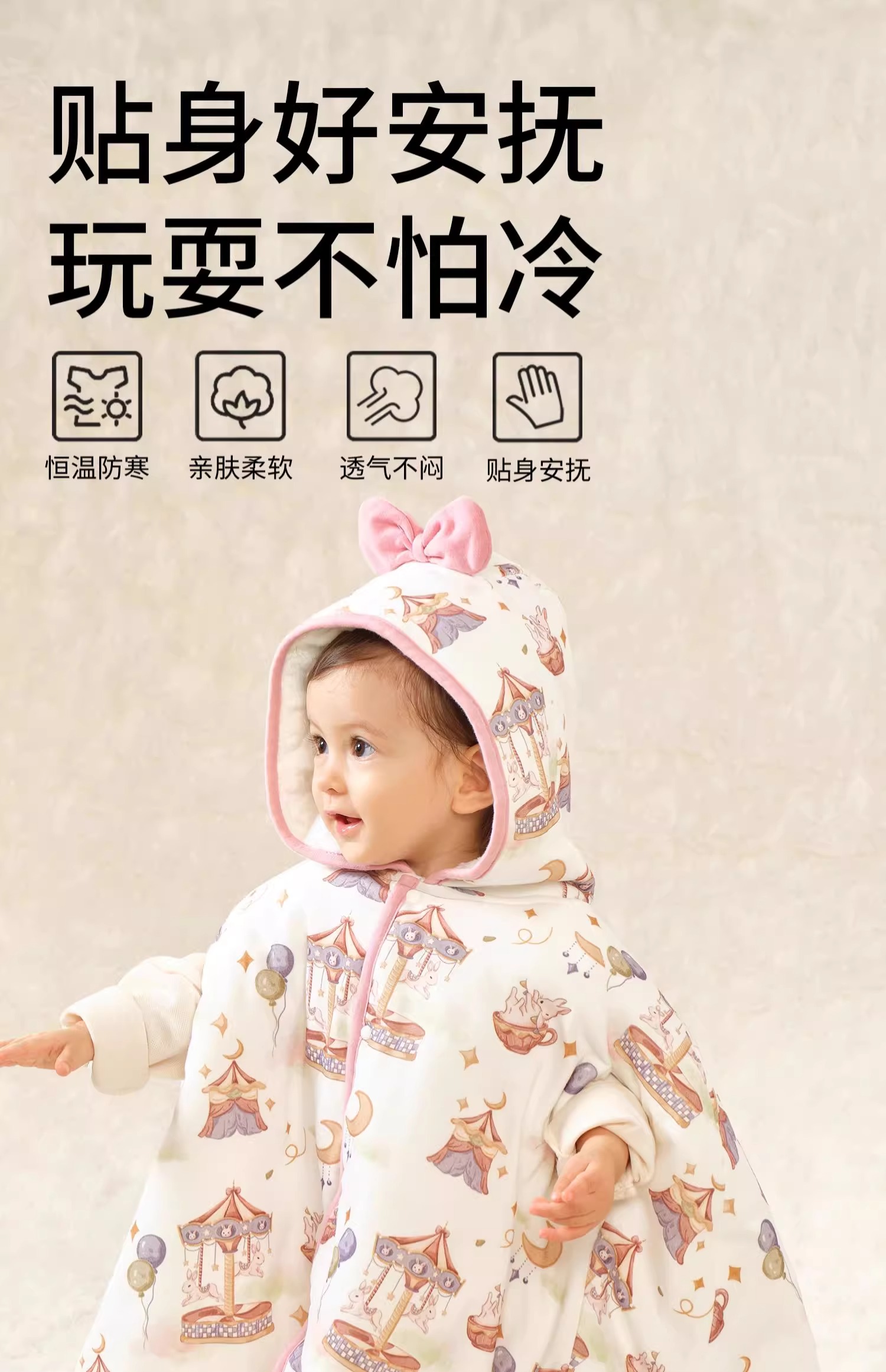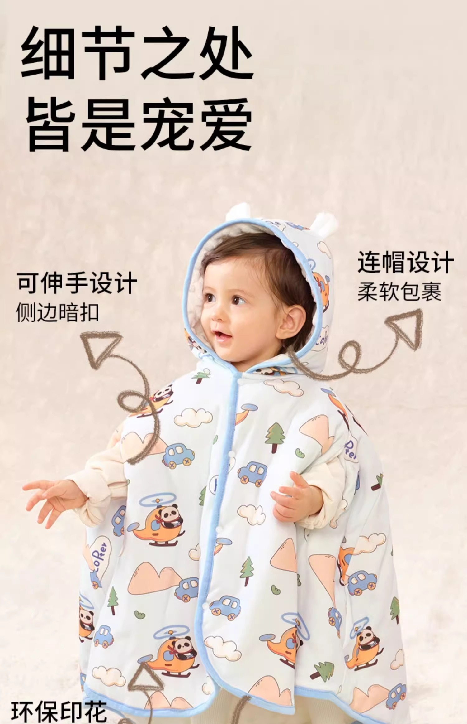 科巢婴儿斗篷披风春秋外出挡风披肩加厚男孩女童宝宝冬天防风保暖外套
