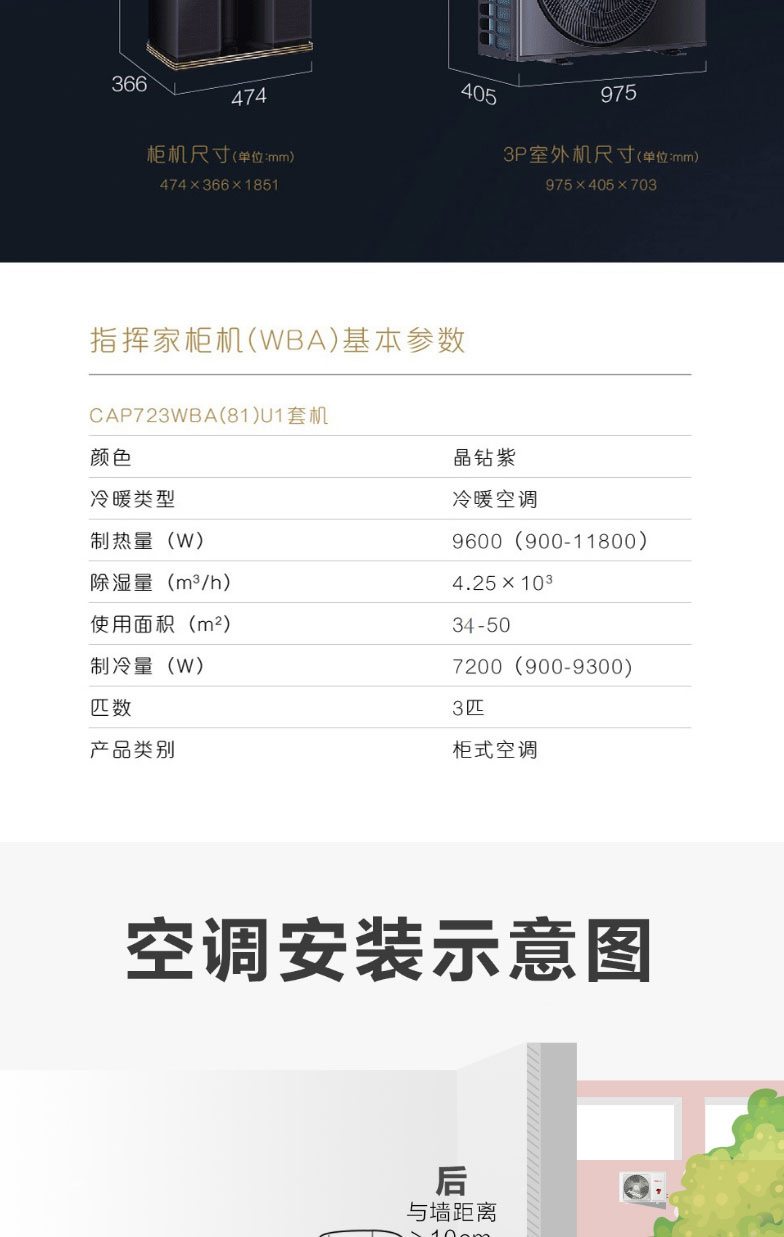 卡萨帝3匹 指挥家 变频 一级能效 AI人工智能 立式空调柜机CAP723WBA(81)U1
