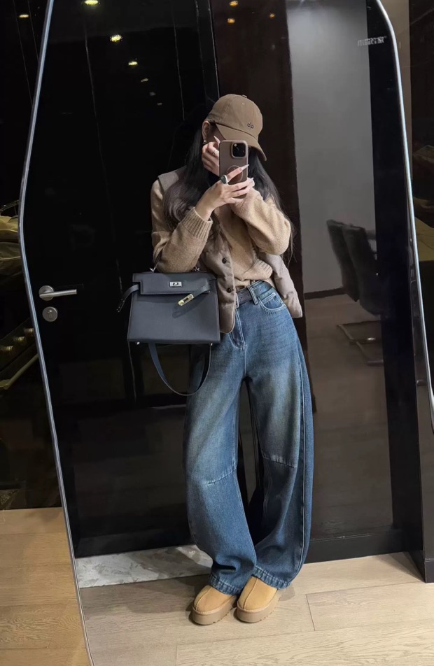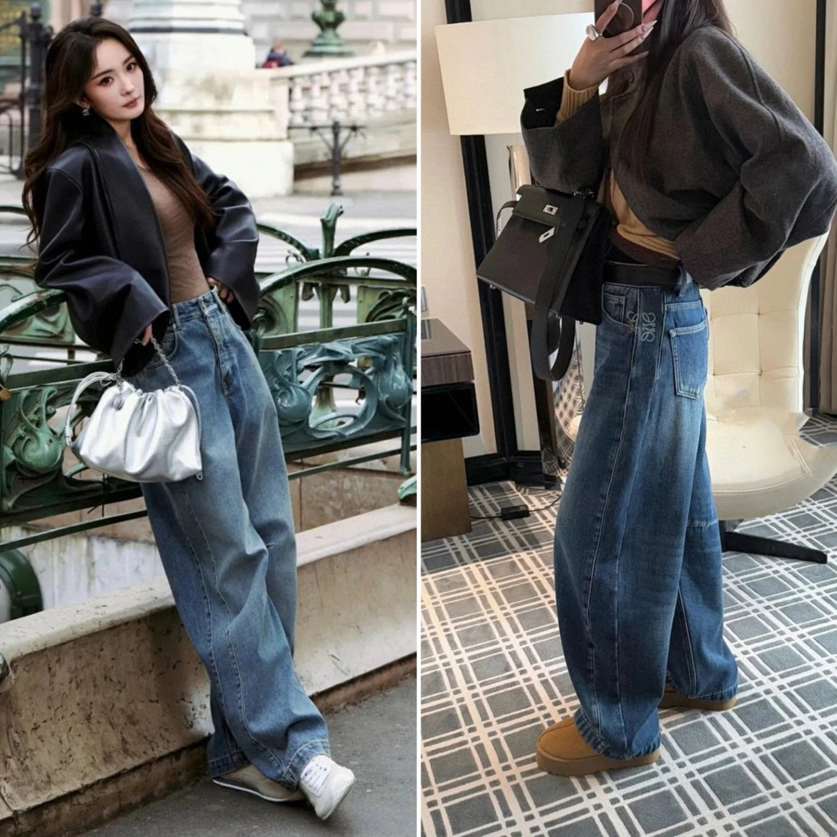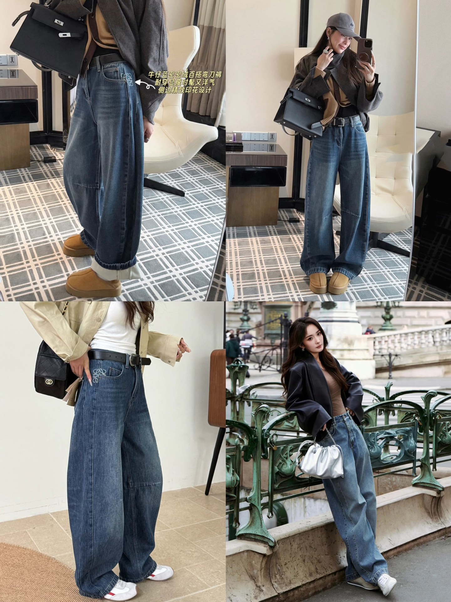 💰139元包邮, 【68217 】杨幂同款 加绒加厚 高腰弯刀阔腿裤 微阔剪裁 做旧水洗处理 加绒内里更是把温暖与时髦焊在了一起