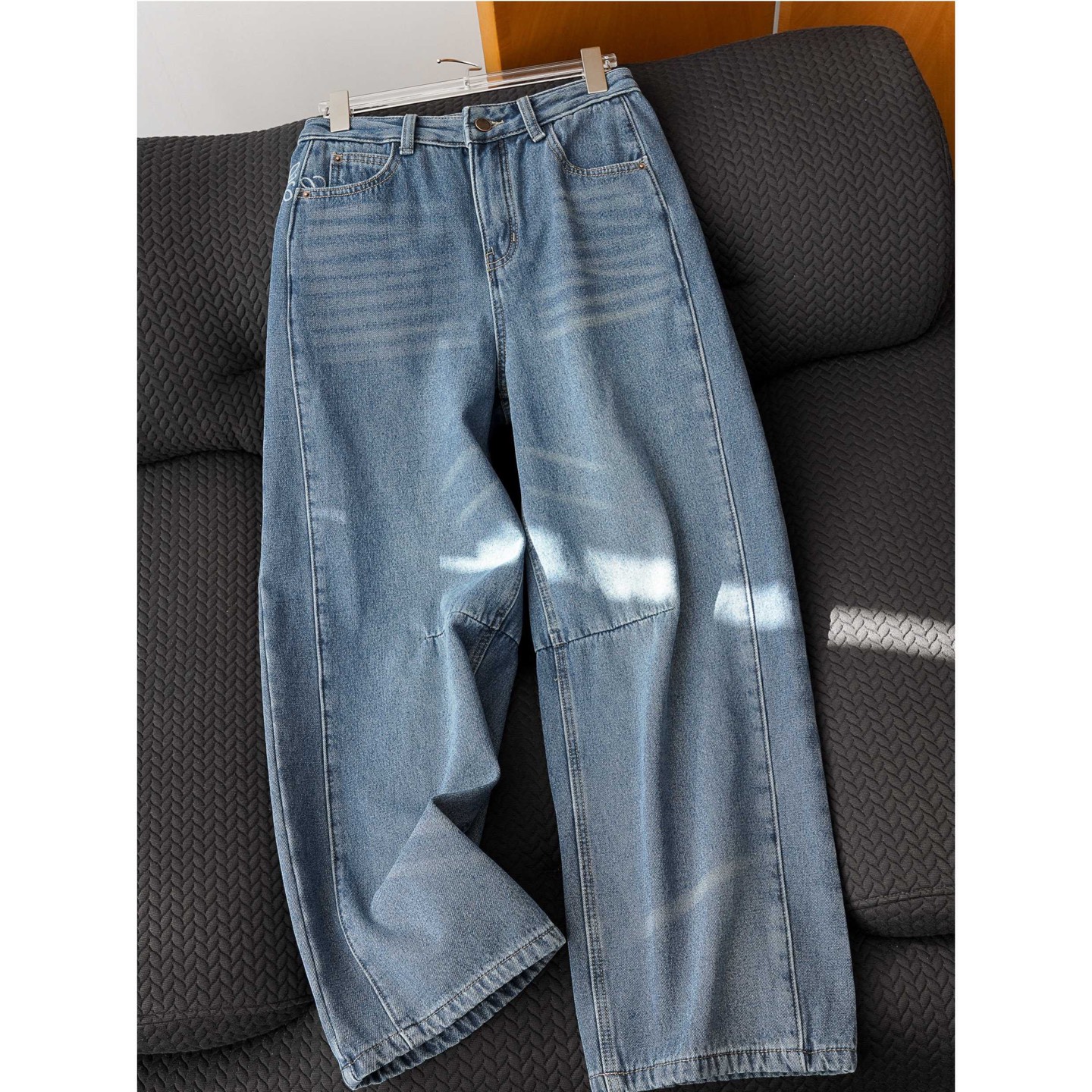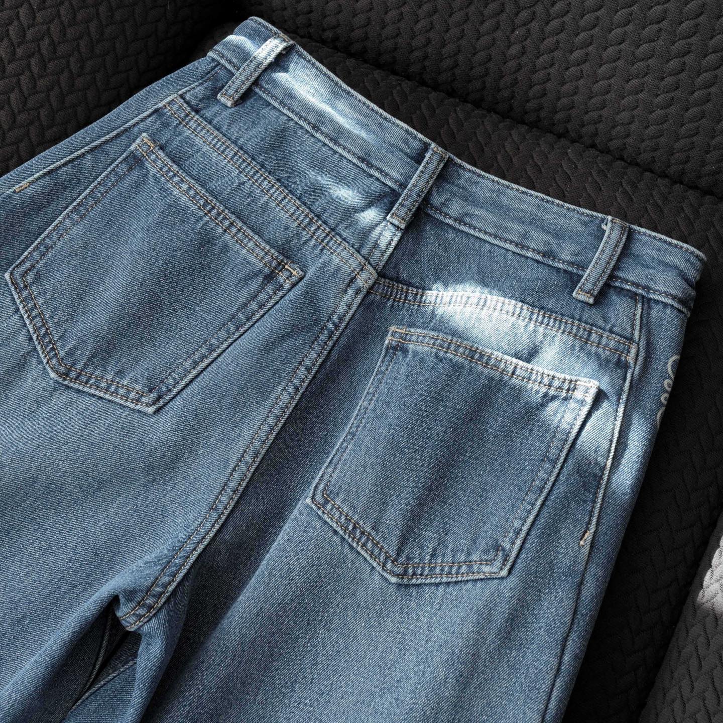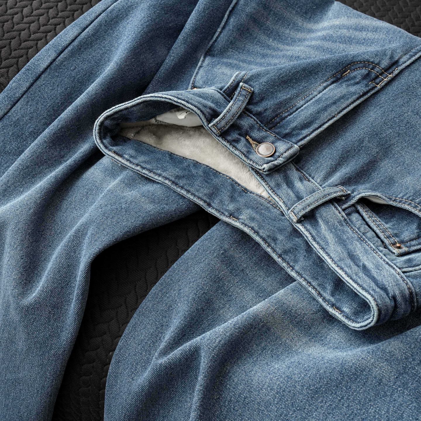💰139元包邮, 【68217 】杨幂同款 加绒加厚 高腰弯刀阔腿裤 微阔剪裁 做旧水洗处理 加绒内里更是把温暖与时髦焊在了一起