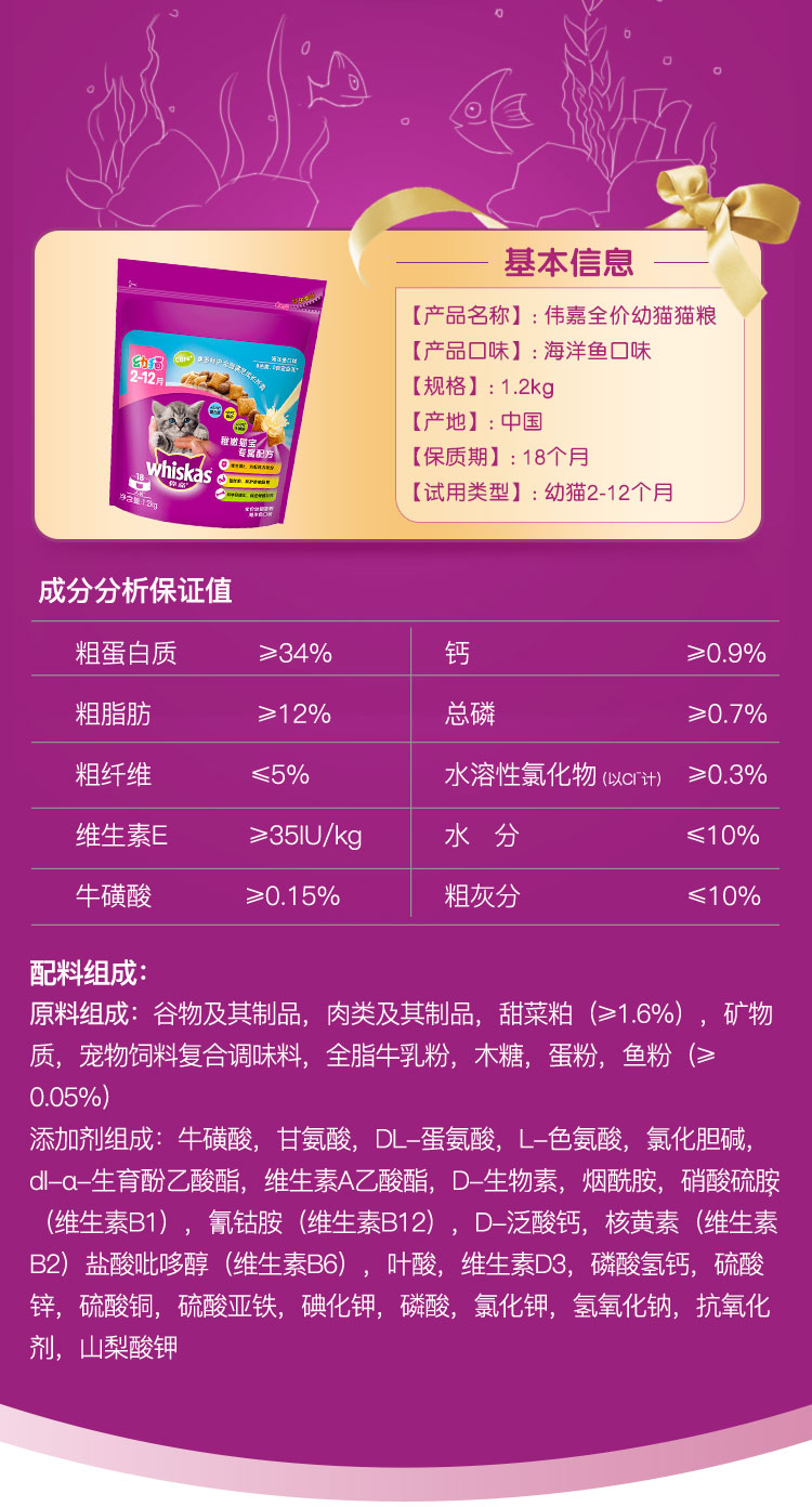 伟嘉幼猫粮海洋鱼味1.2kg