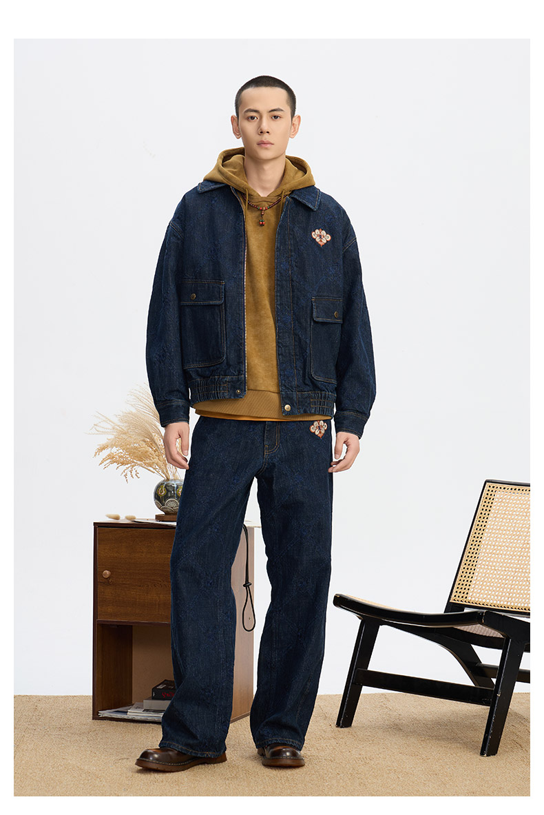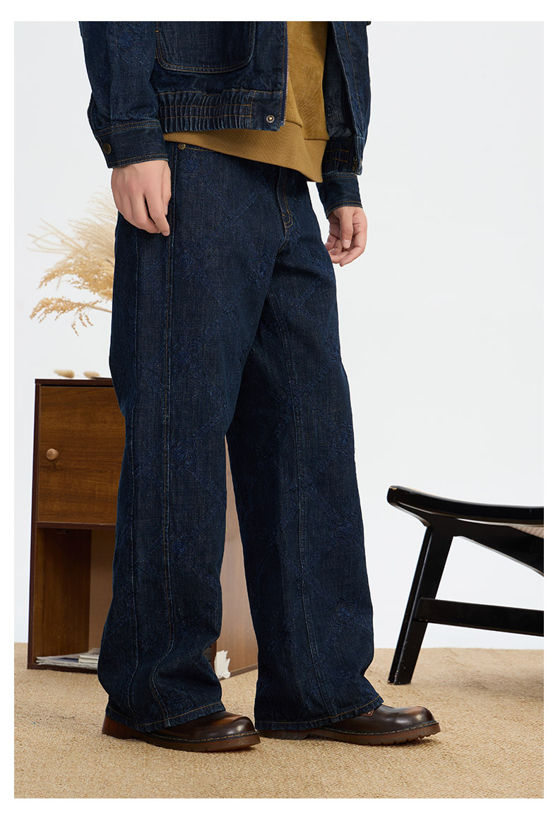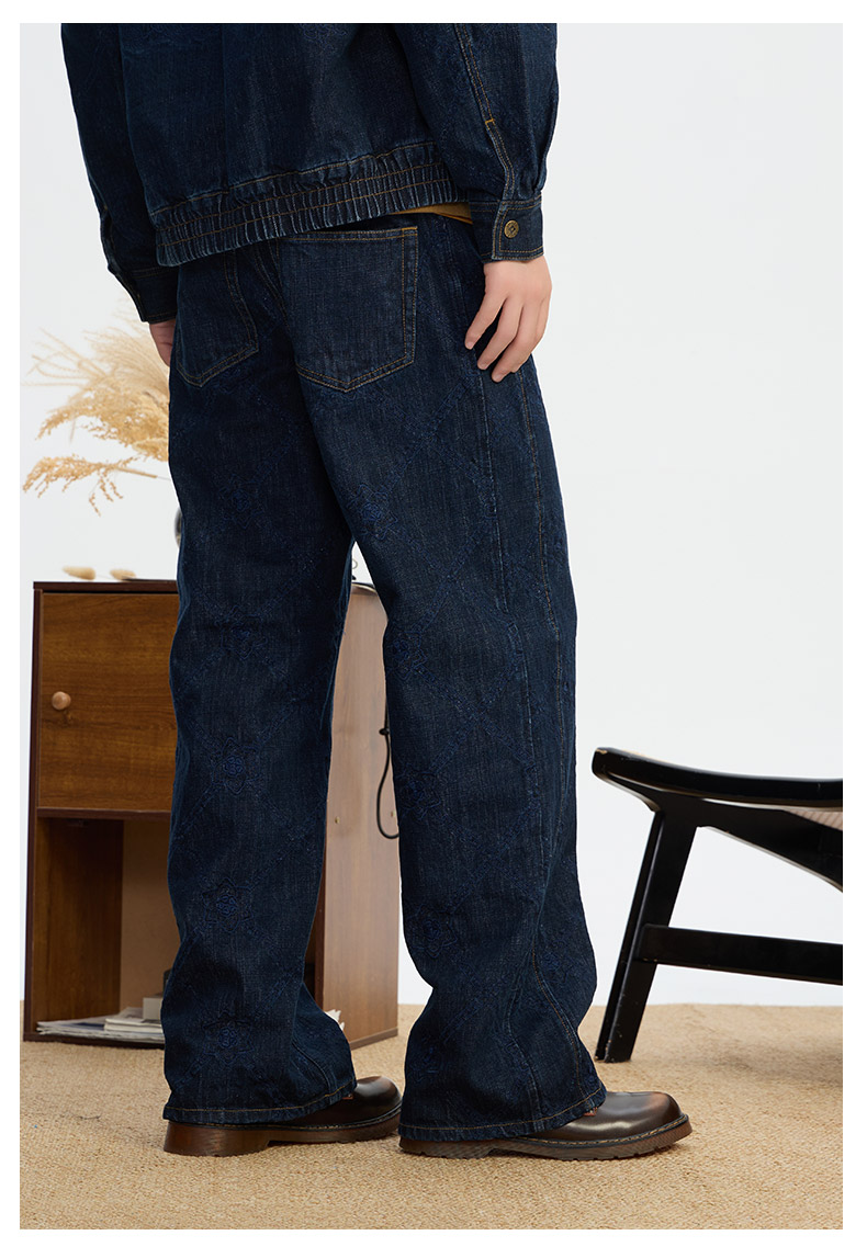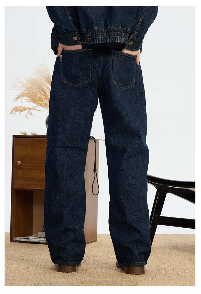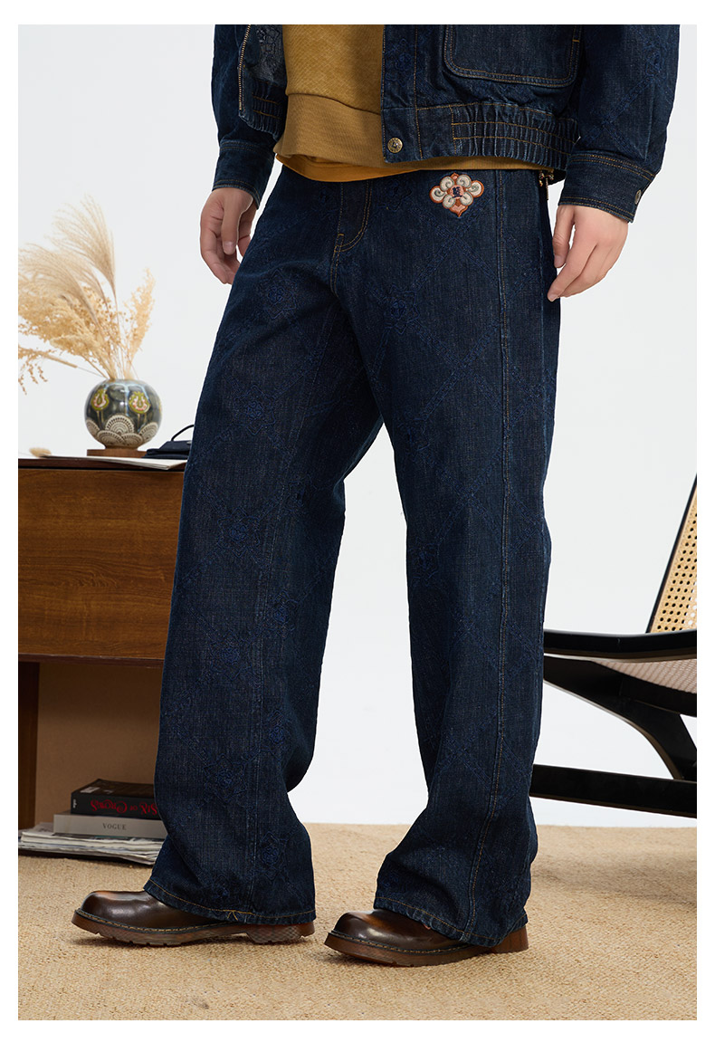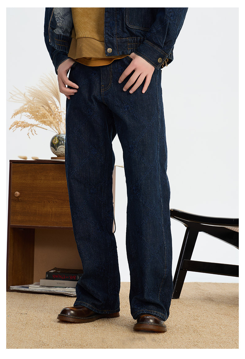 ONIARAI/鬼洗25秋冬泥棒蓝敦煌满绣复古宽松牛仔裤男式 25N4410