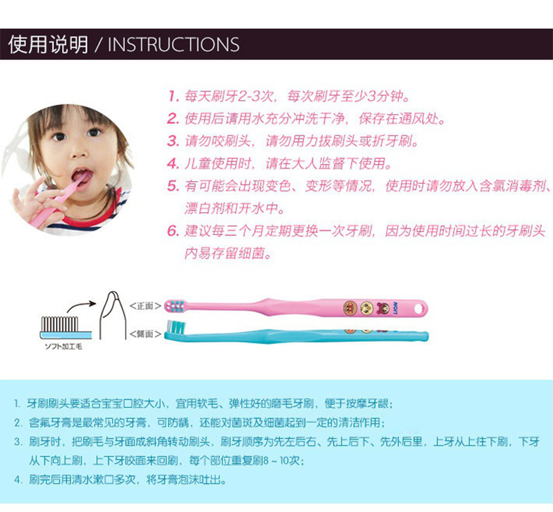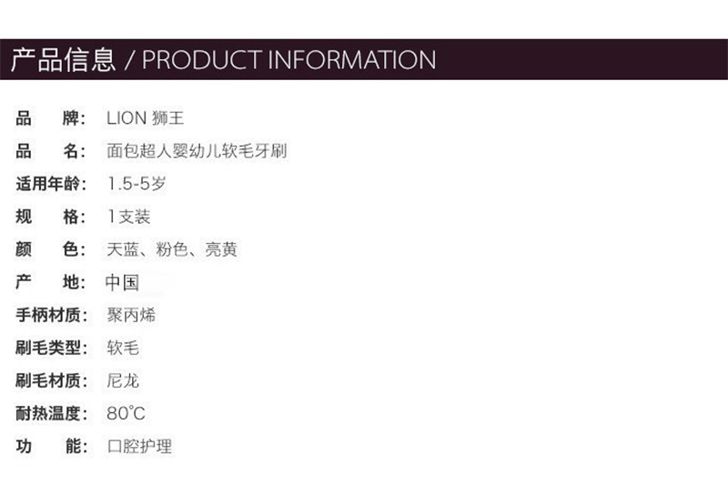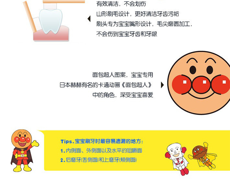 日本狮王Lion 面包超人儿童牙刷1.5-5岁