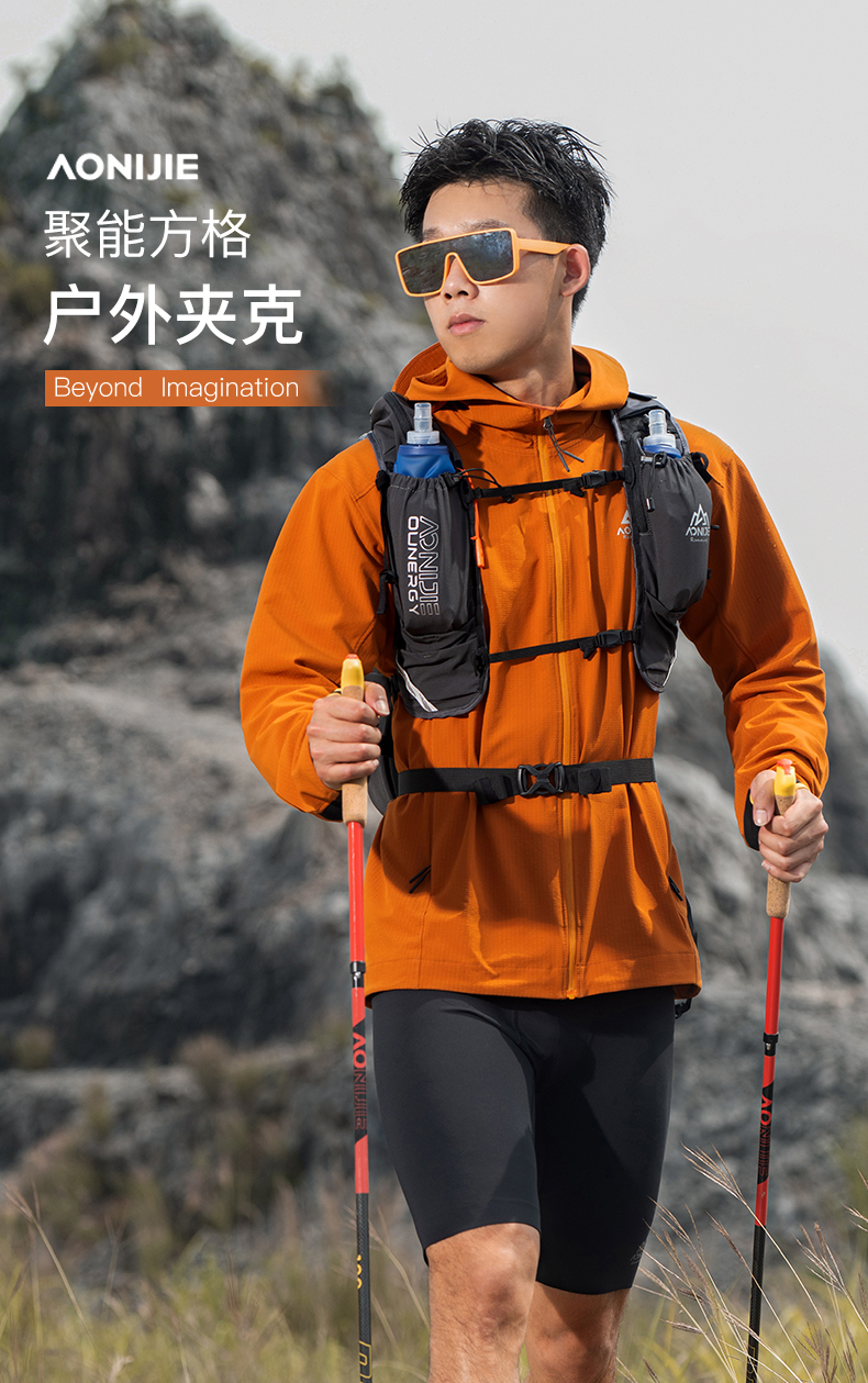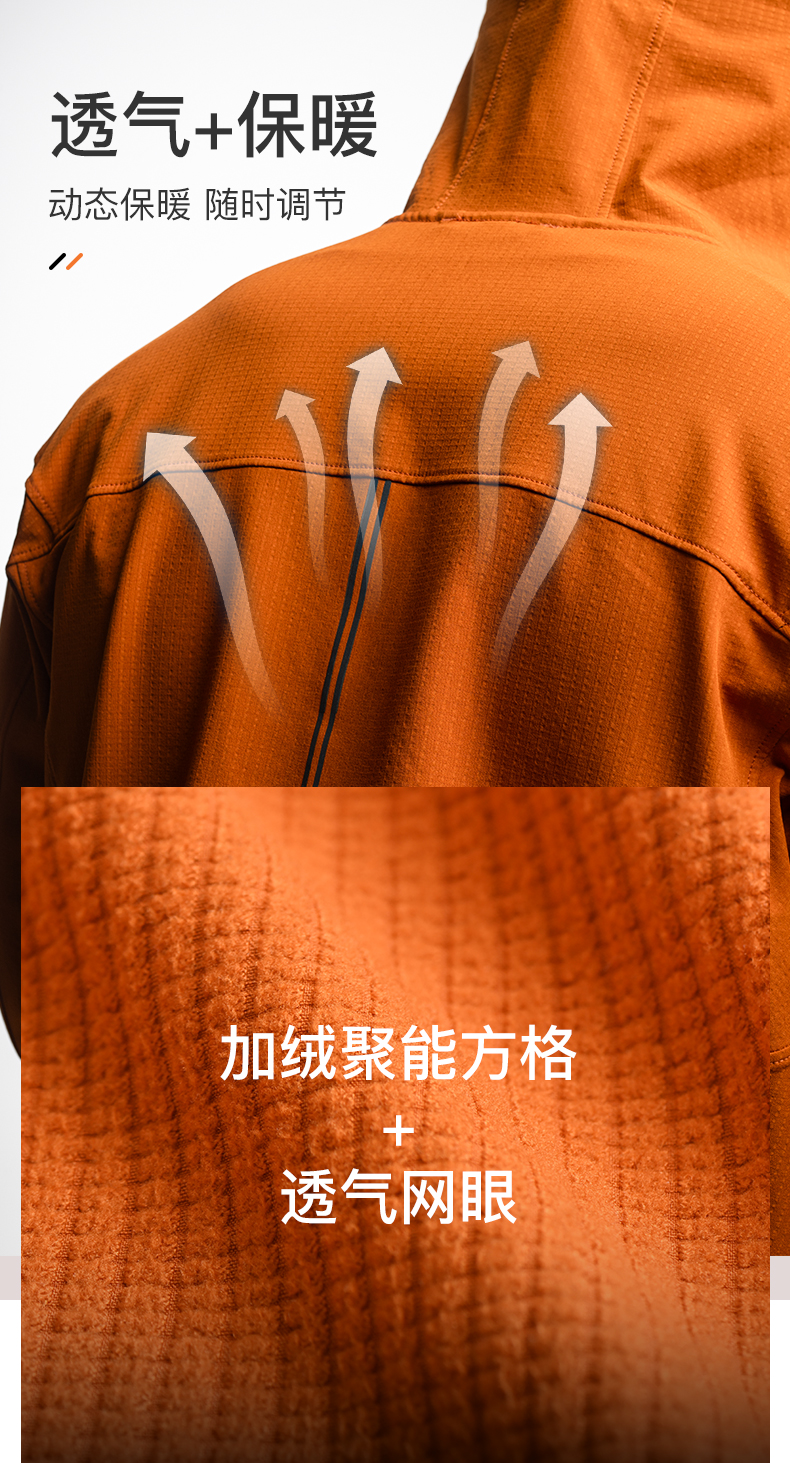 奥尼捷聚能方格户外夹克轻盈透气舒适运动加绒动态保暖男款连帽夹克防风防泼水/FM5207