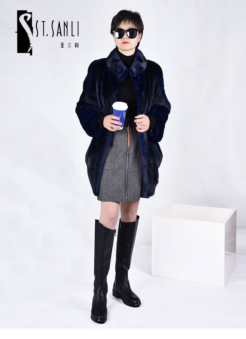 圣三利女装经典款水貂毛皮皮草SL154D002