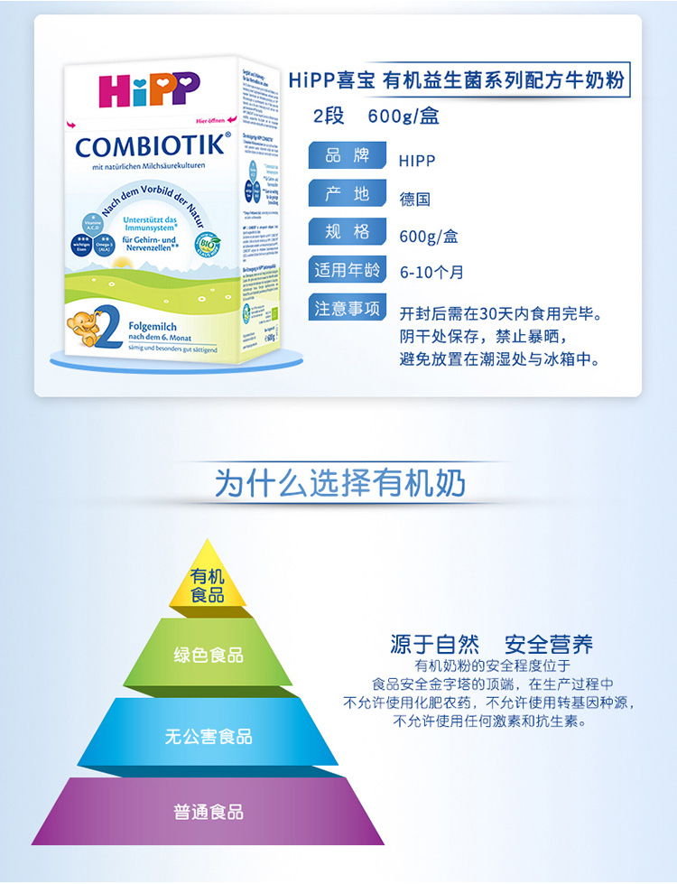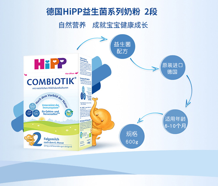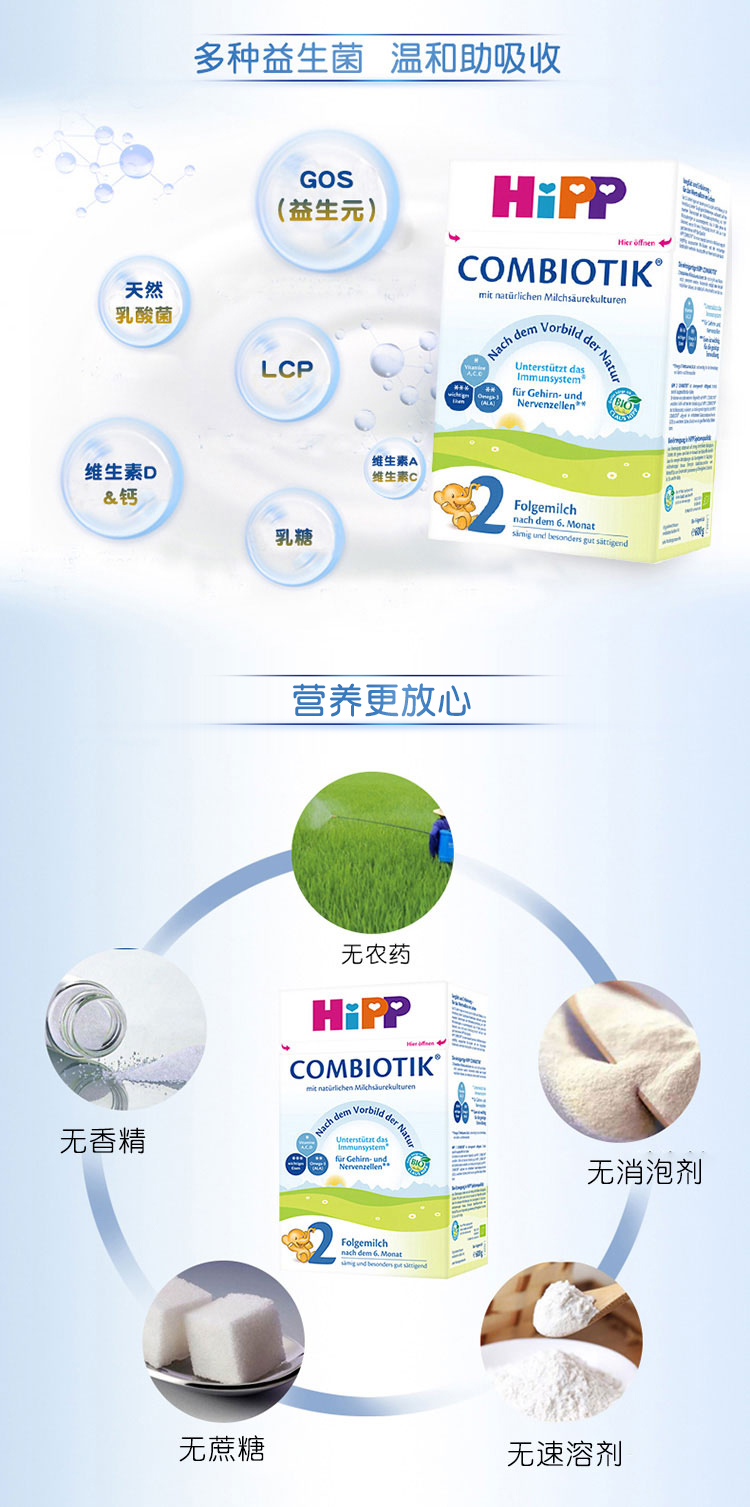 德国Hipp喜宝益生元益生菌婴幼儿奶粉2段600g7-10月