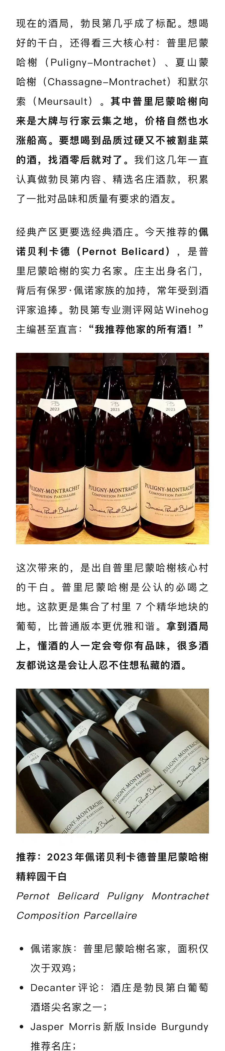 【双鸡第一它第二】法国勃艮第2023年佩诺贝利卡德普里尼蒙哈榭精粹园霞多丽干白