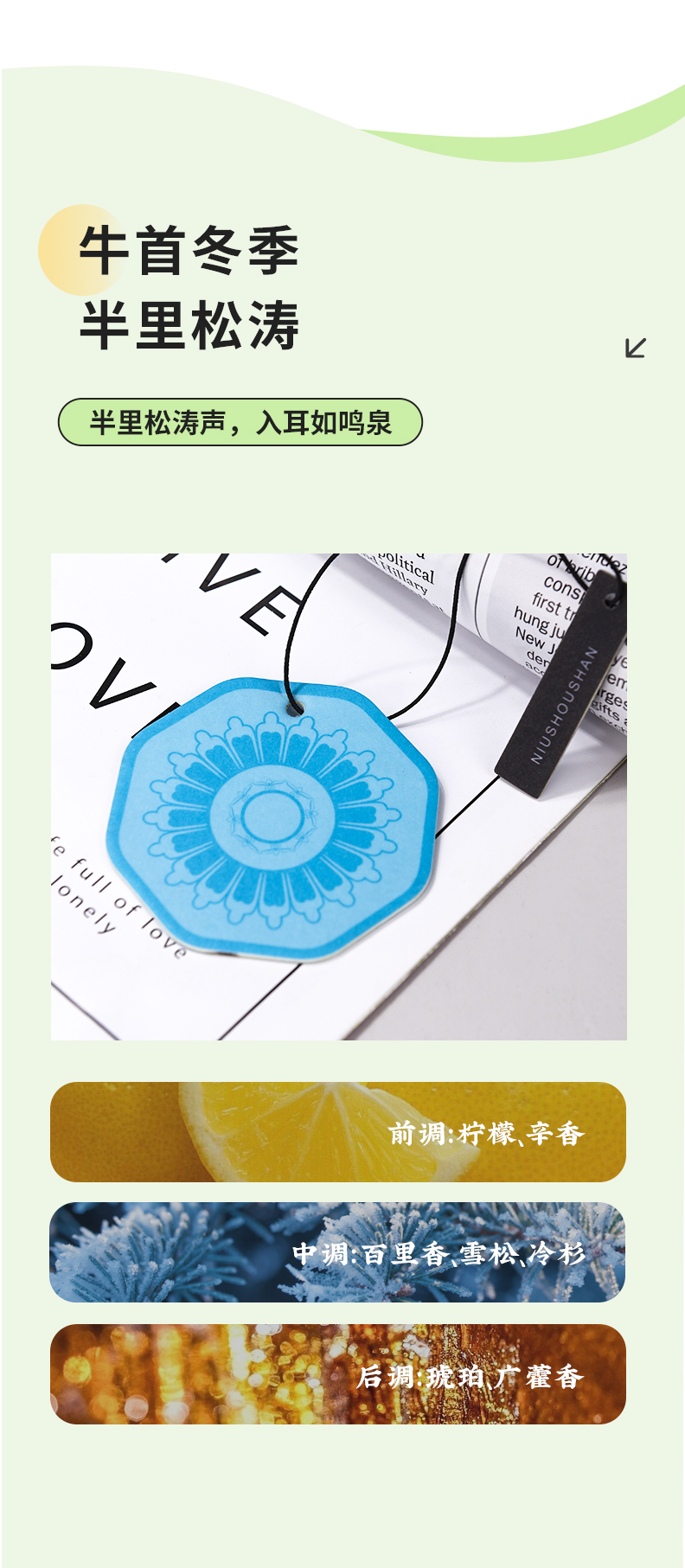 牛首山文创四季香卡车载香味配饰挂件家用卧室悬挂式香片持久留香