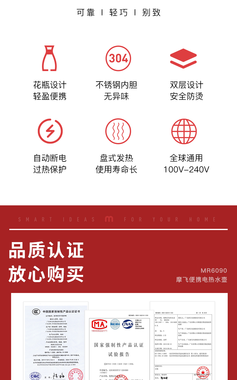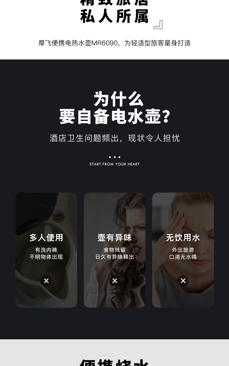 0.4L摩飞便携电水壶(灰)MR6090