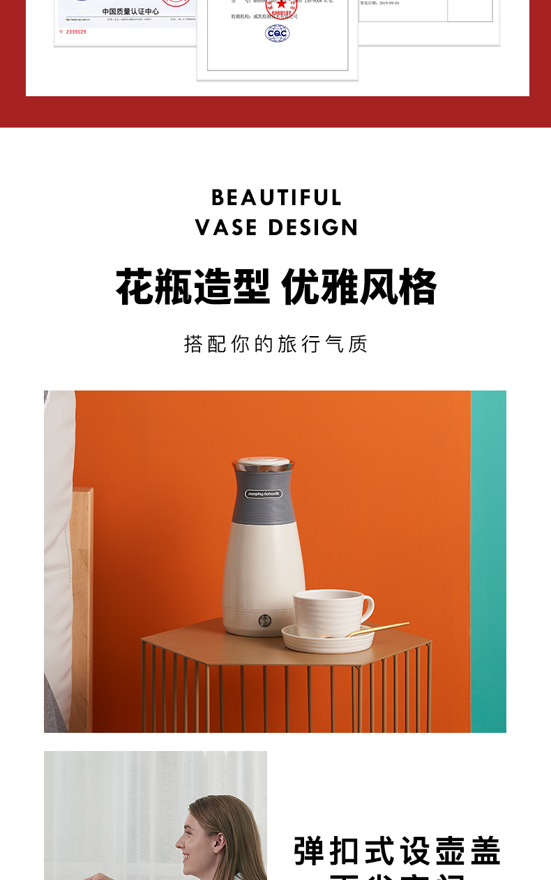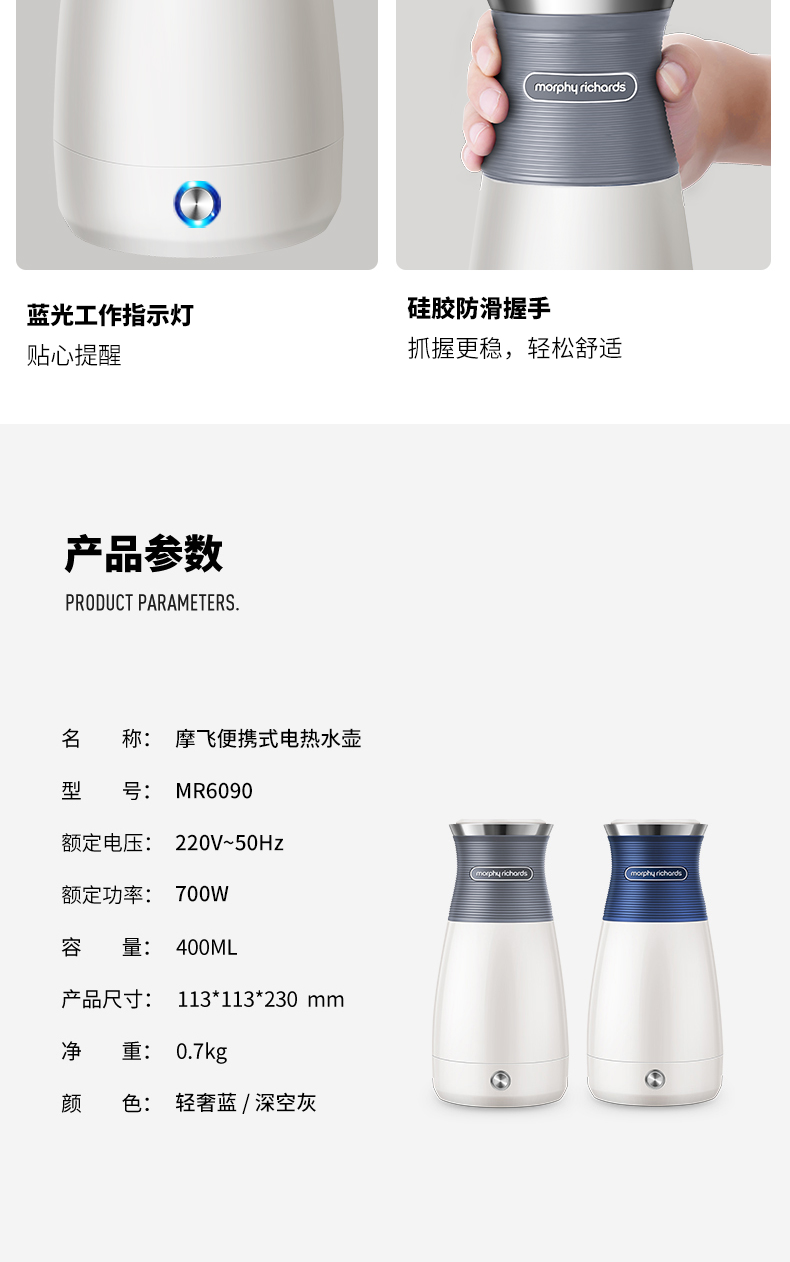 0.4L摩飞便携电水壶(灰)MR6090(次日起提配)