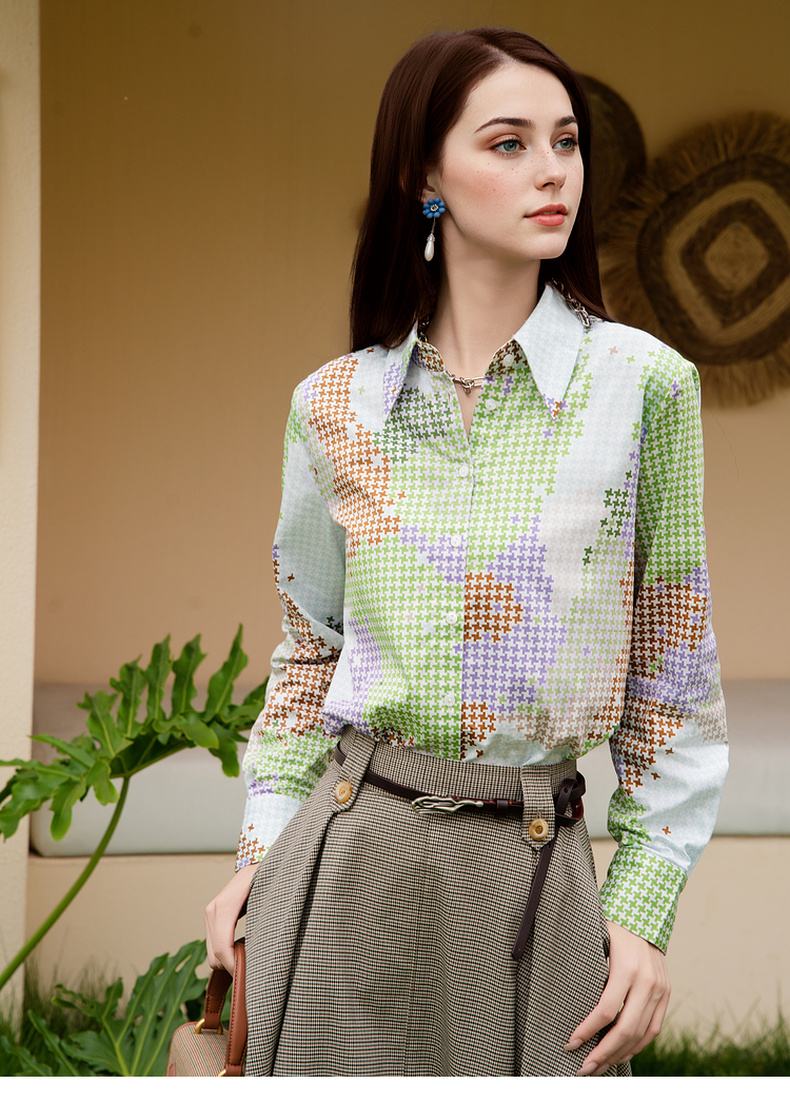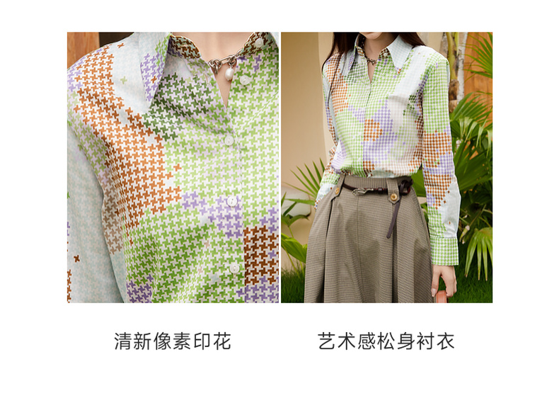谜底100%棉花衬衫长袖女2025秋新款复古风印花宽松衬衣257MC7791