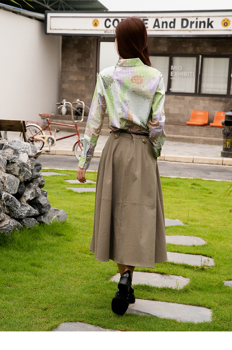 谜底印花半裙2025冬新品复古拼接撞色抽绳腰头中长裙女254MB1675