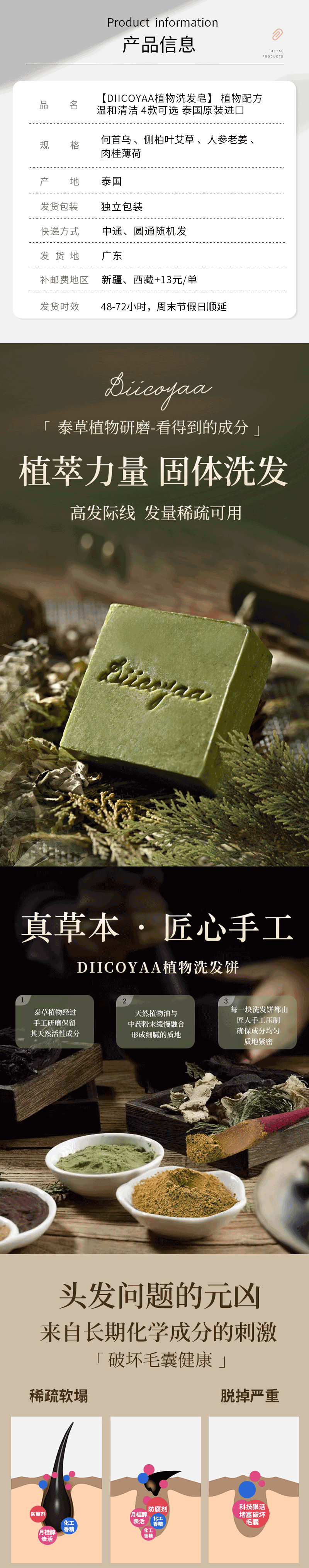 【DIICOYAA植物洗发皂】 植物配方 温和清洁 4款可选 泰国原装进口 (2.15-2.23停发)