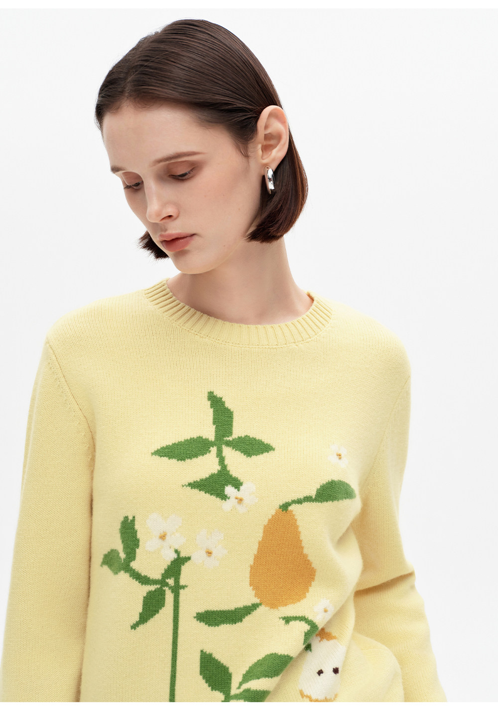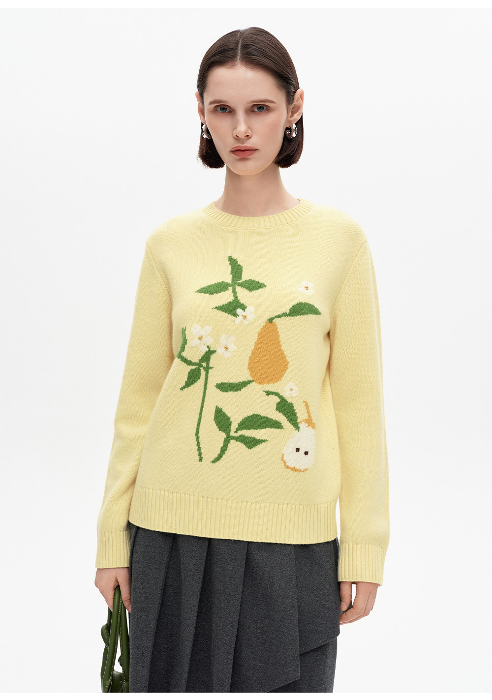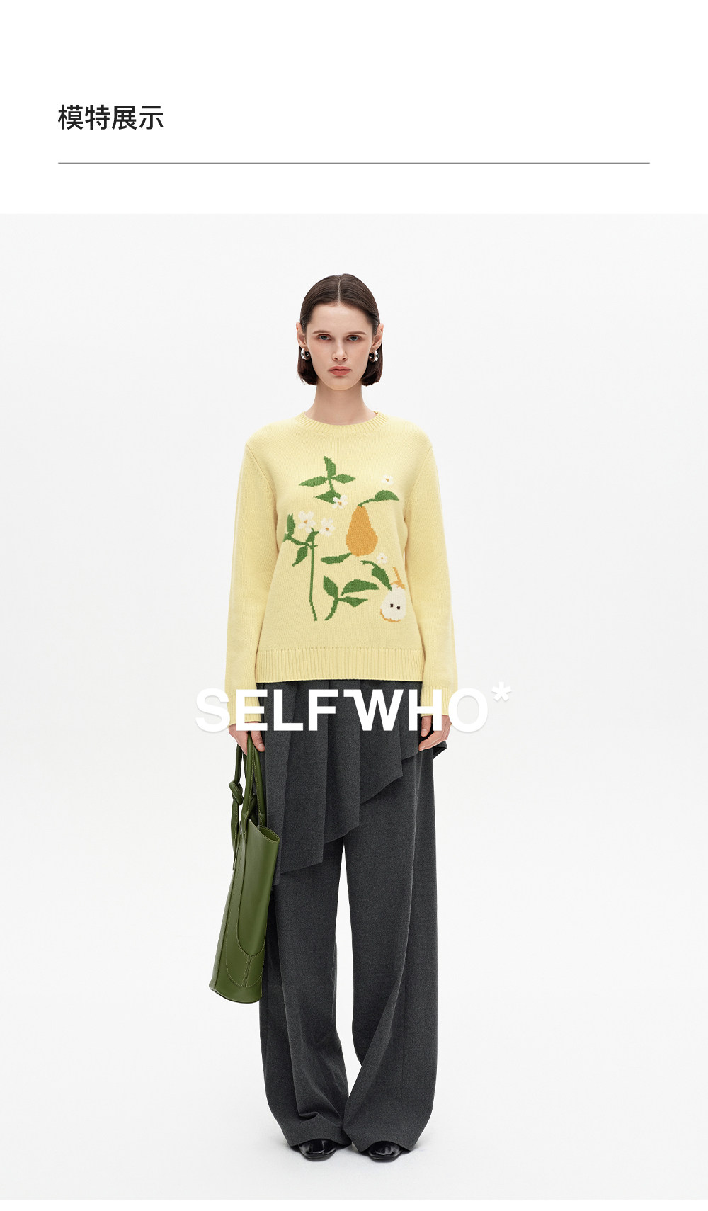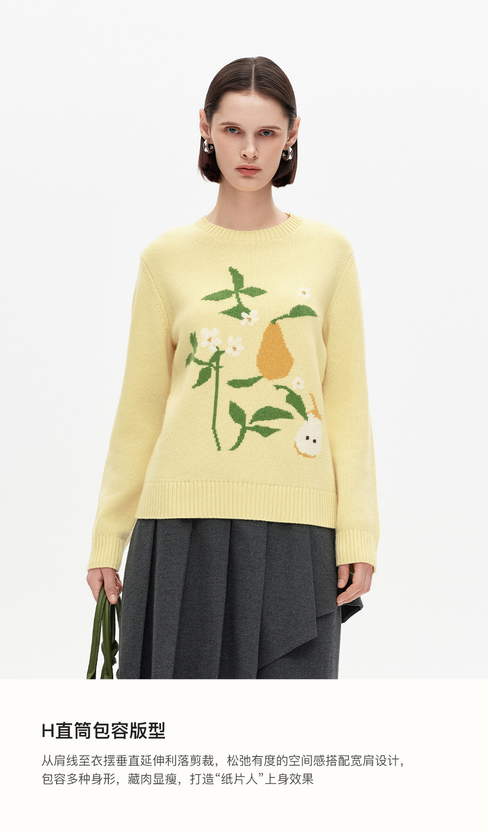 SELFWHO100%绵羊毛梨子花型毛衣女2026春季新款直筒H型保暖针织衫