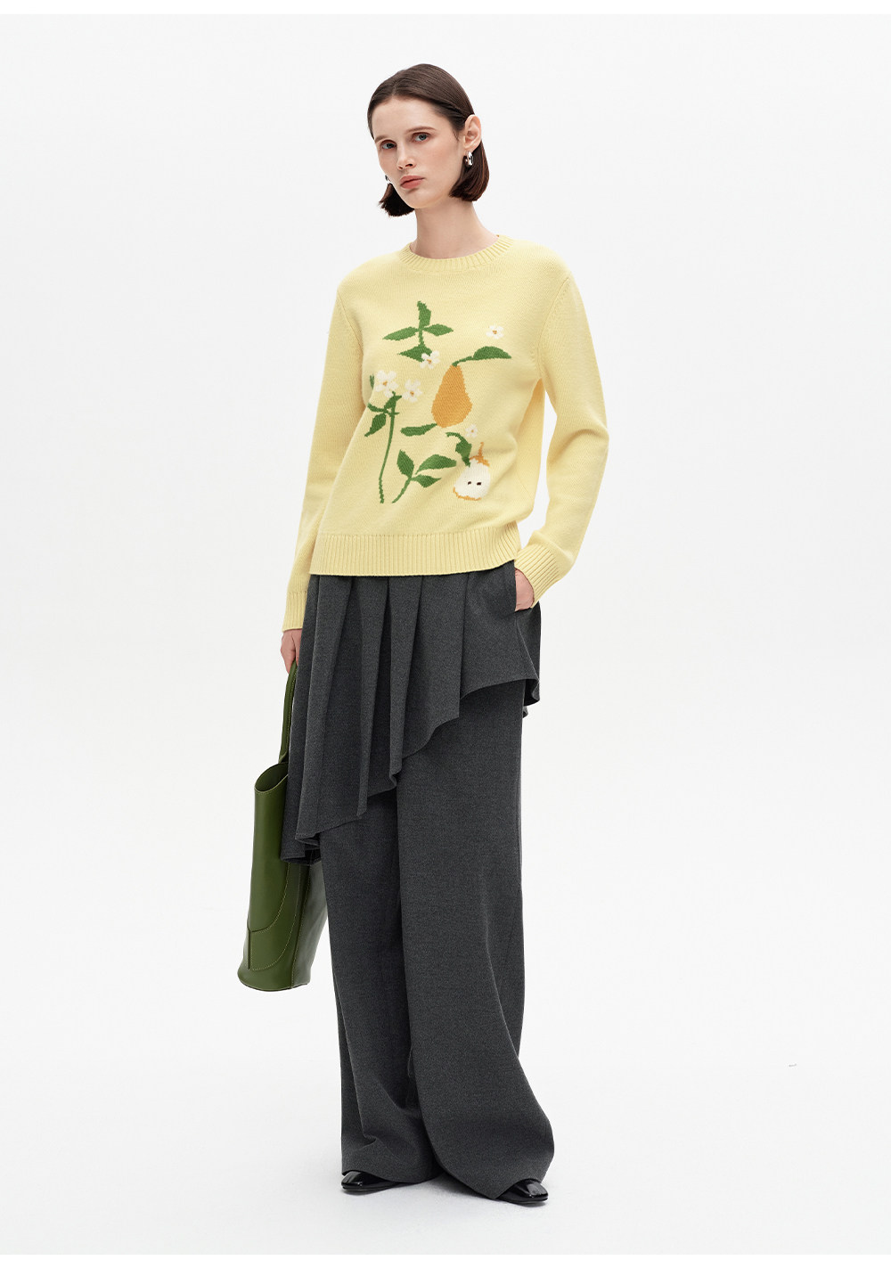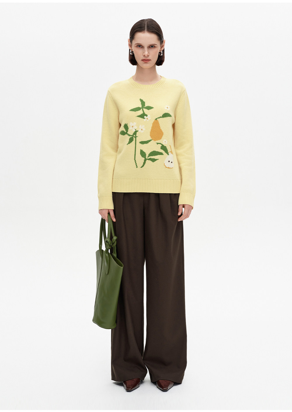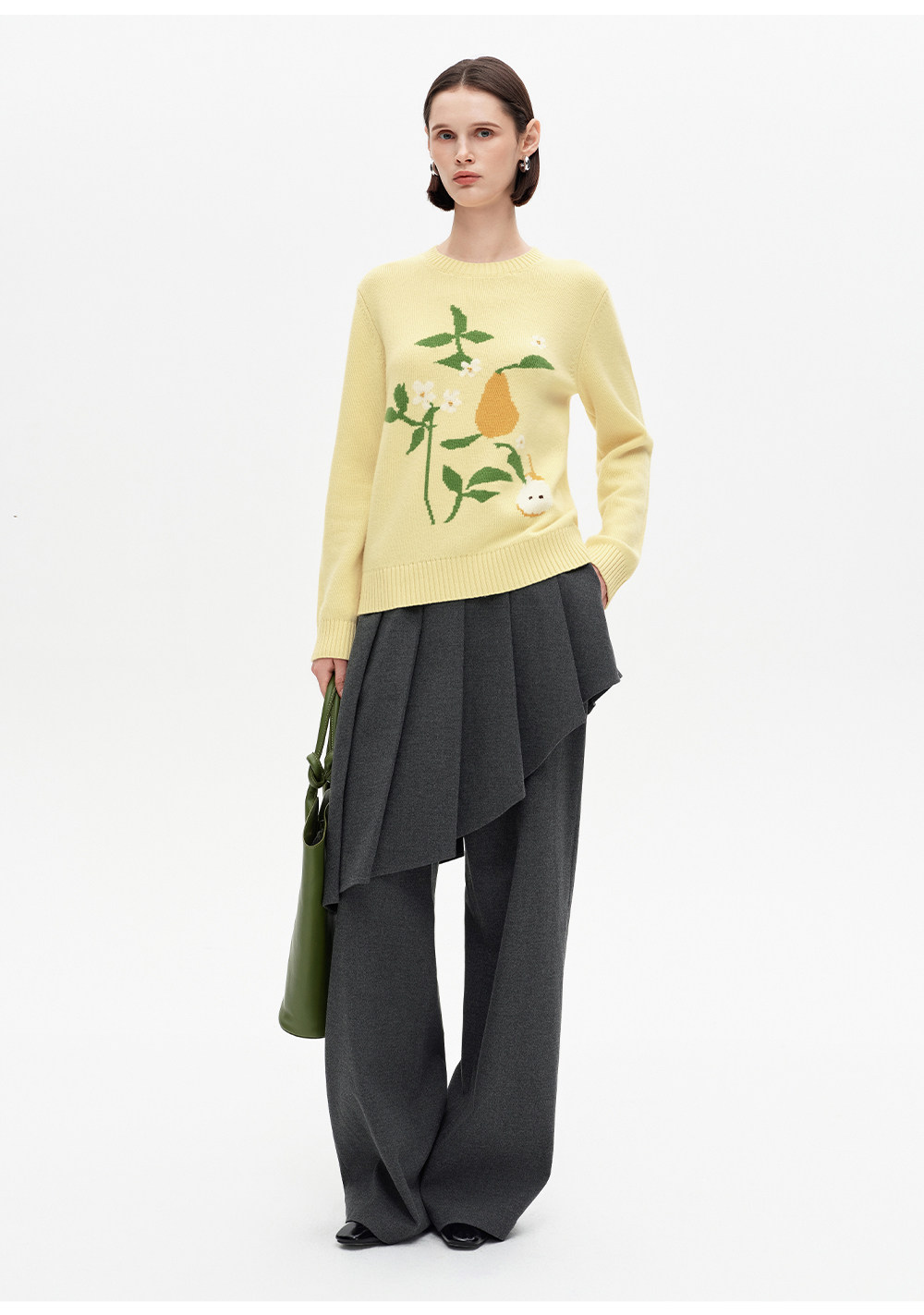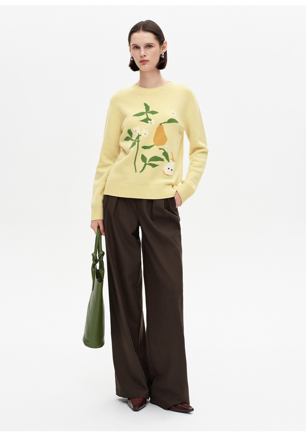 SELFWHO100%绵羊毛梨子花型毛衣女2026春季新款直筒H型保暖针织衫