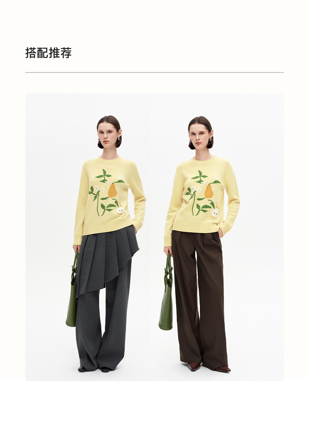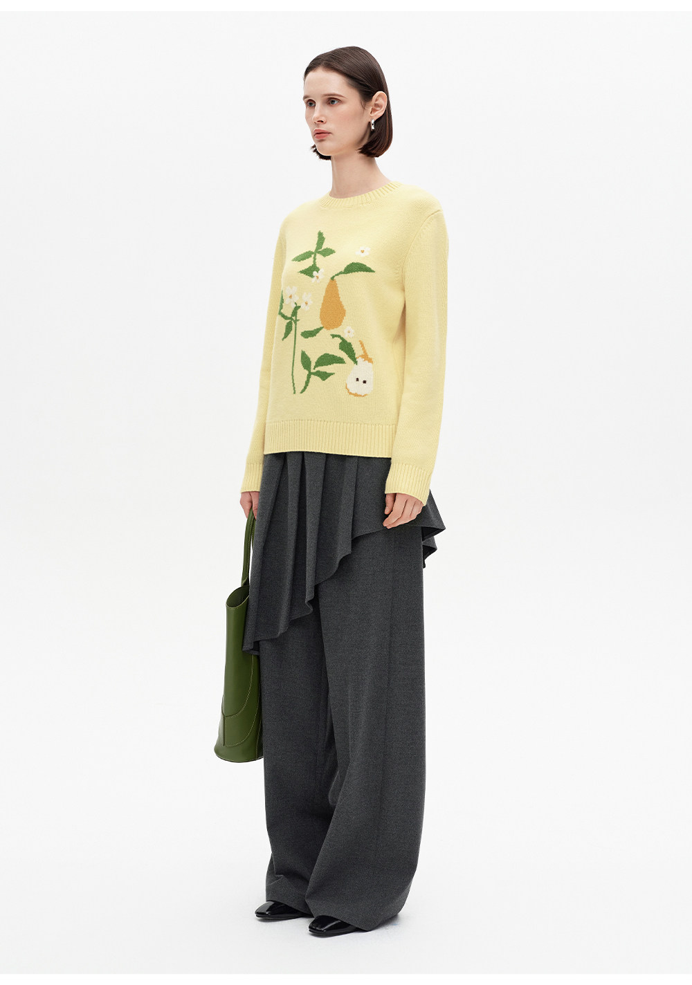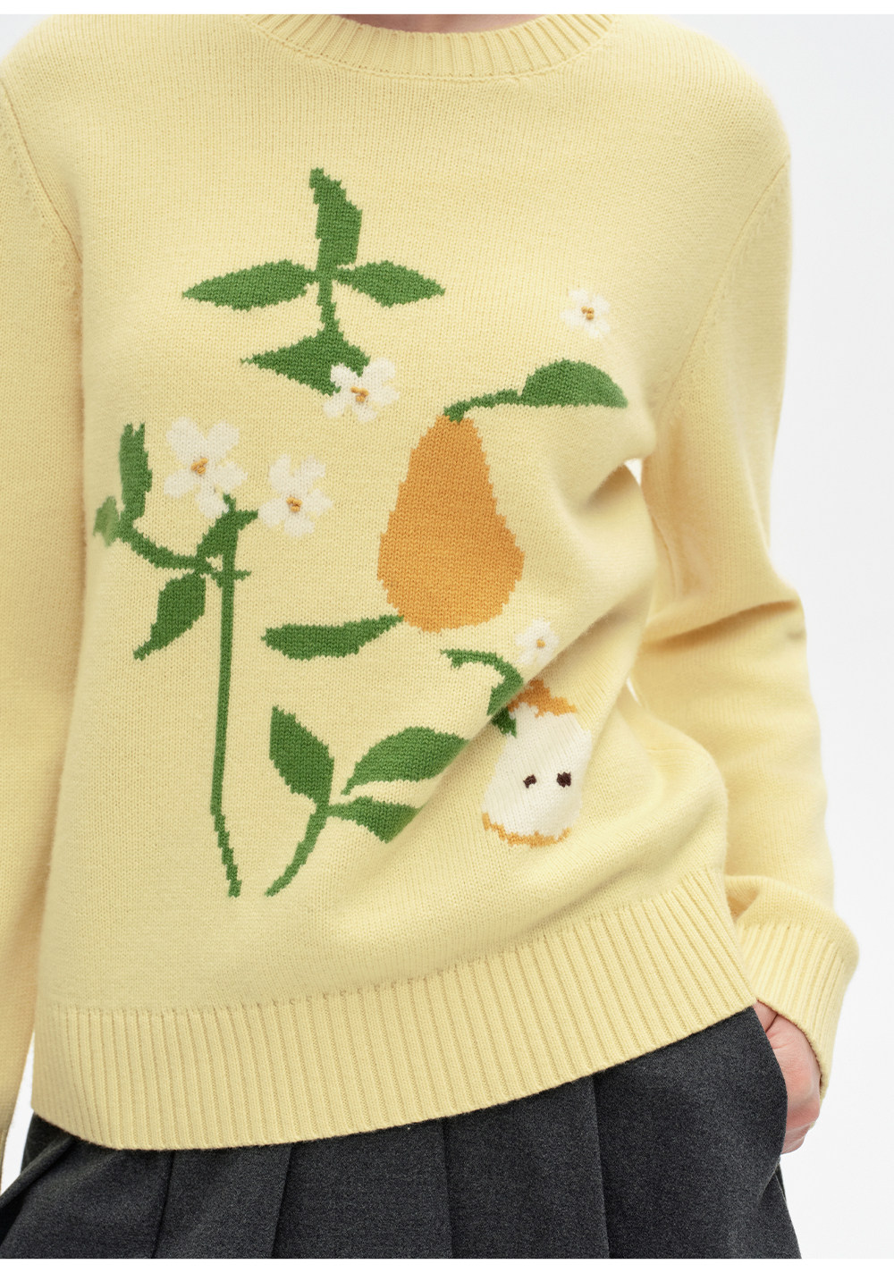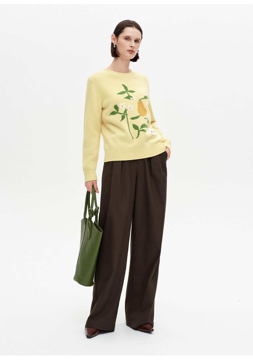 SELFWHO100%绵羊毛梨子花型毛衣女2026春季新款直筒H型保暖针织衫