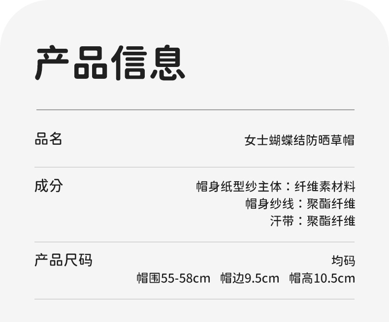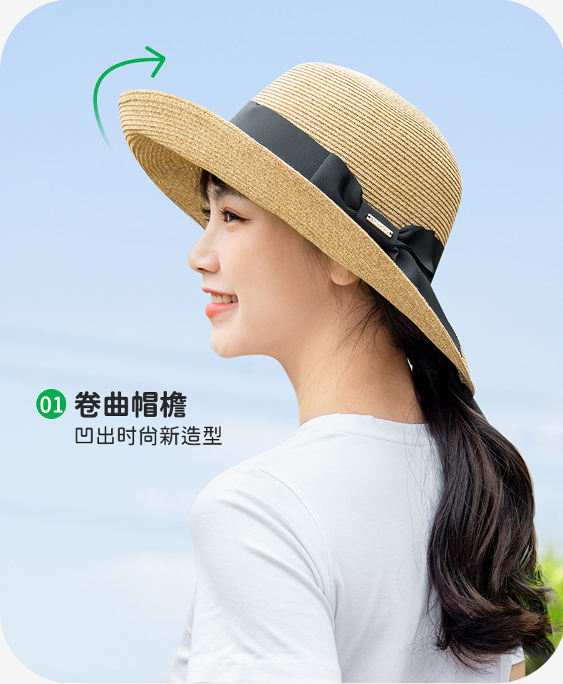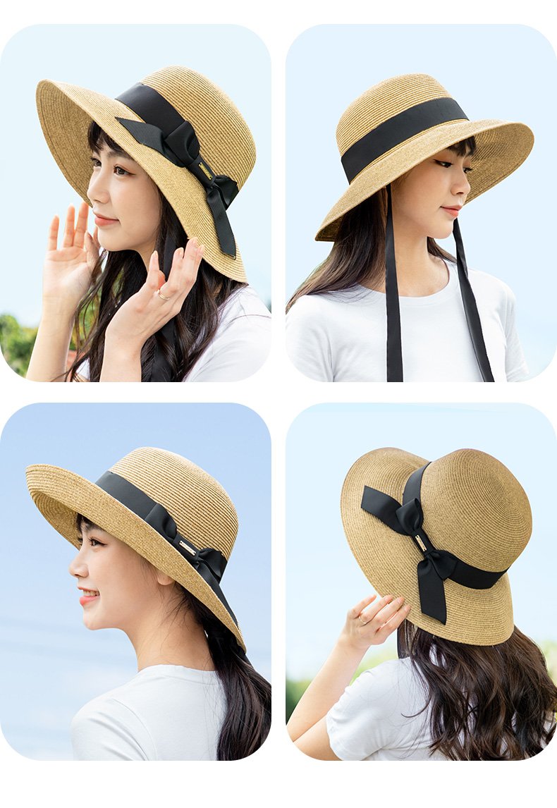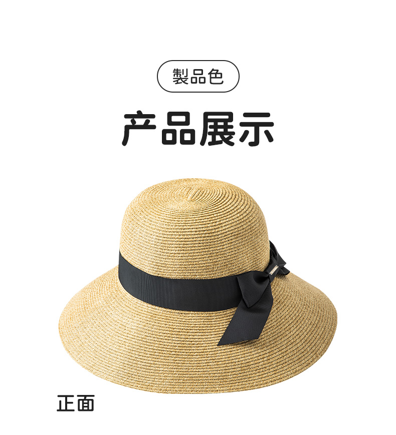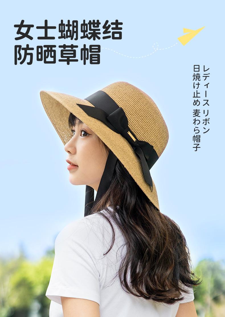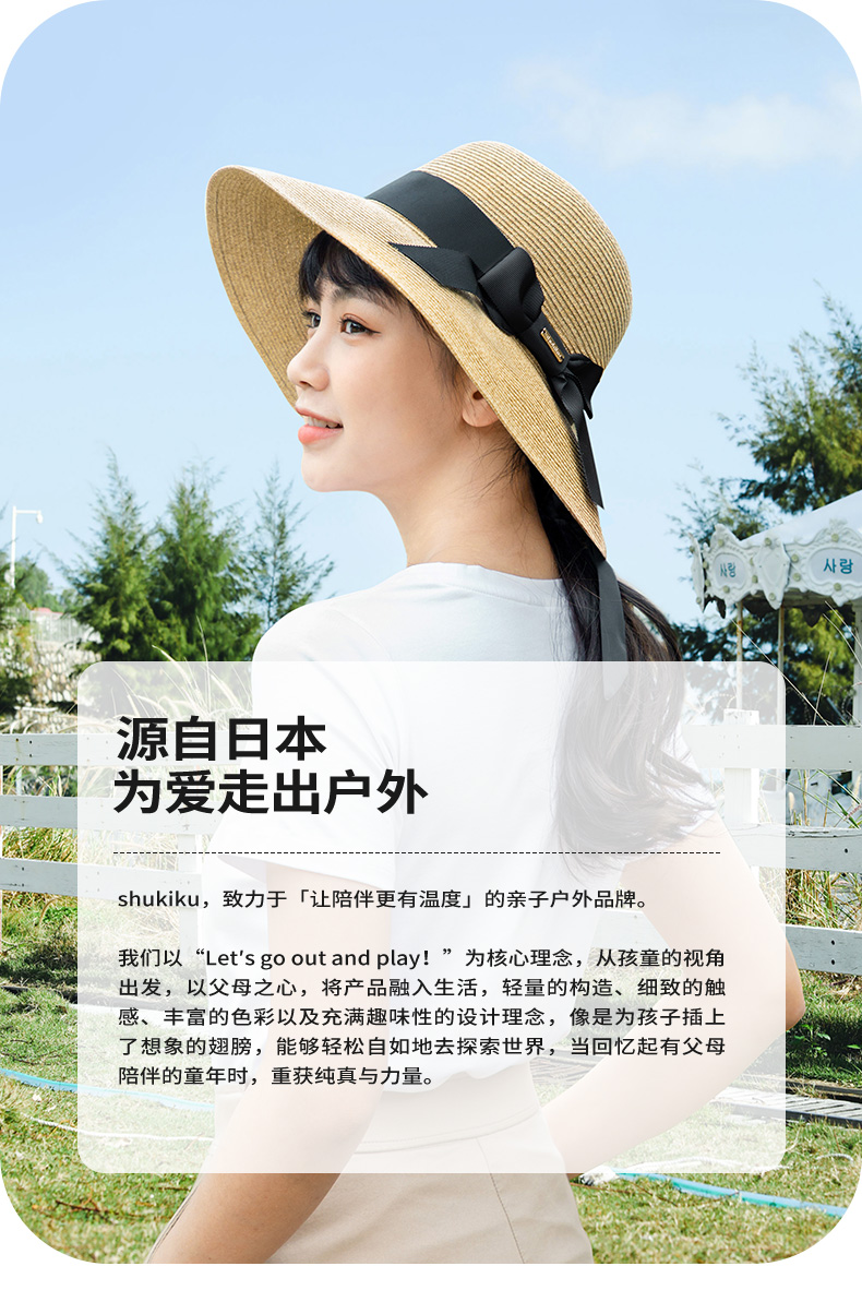 shukiku 女士蝴蝶结防晒草帽 卡其色