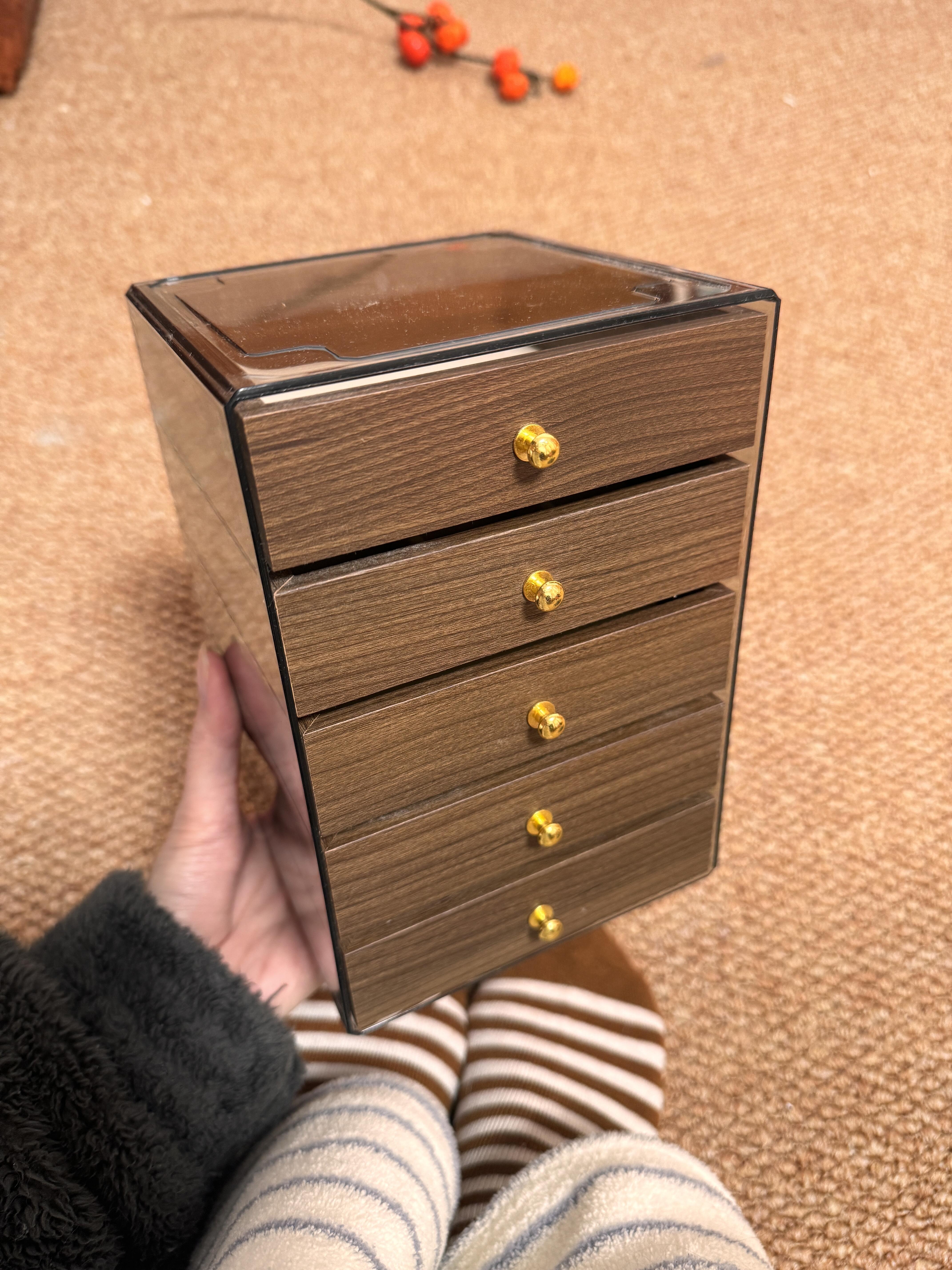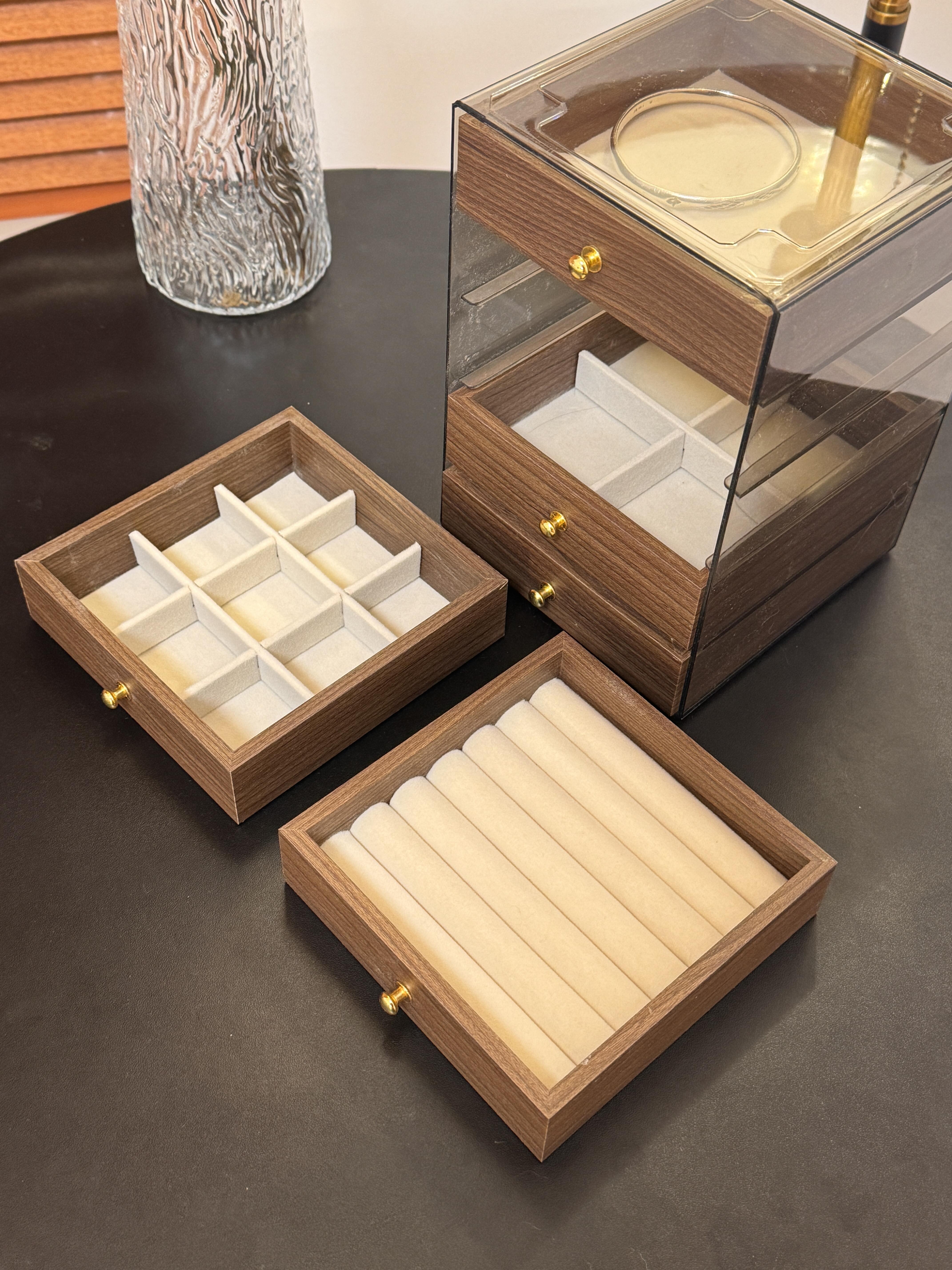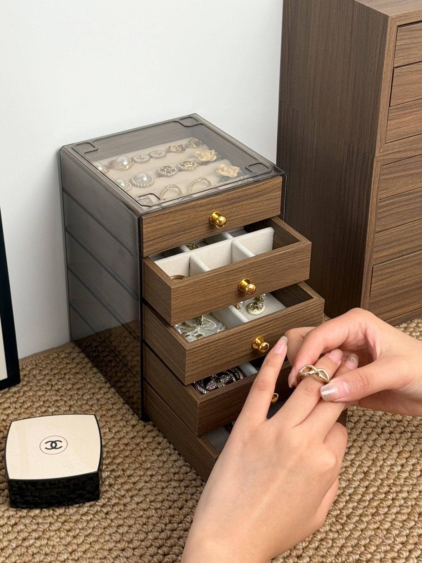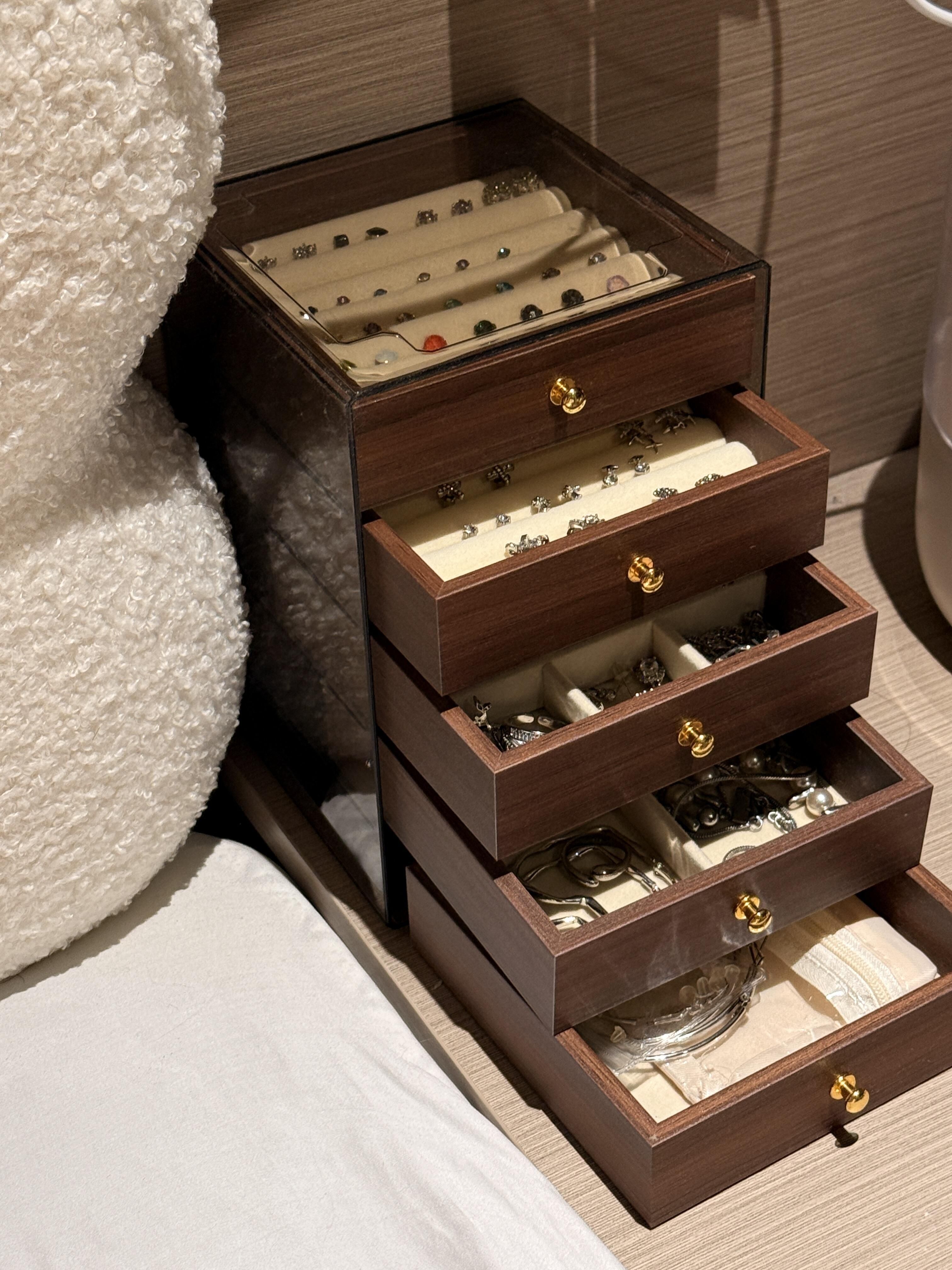 仅售💰39!出口韩国订单❗️【MuseMate胡桃木纹五层首饰收纳盒】 ✅小巧不占地方,足足5层大容量💎项链、手链、耳钉、耳环、戒指..通通帮你收纳整齐